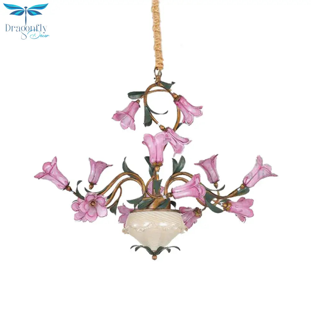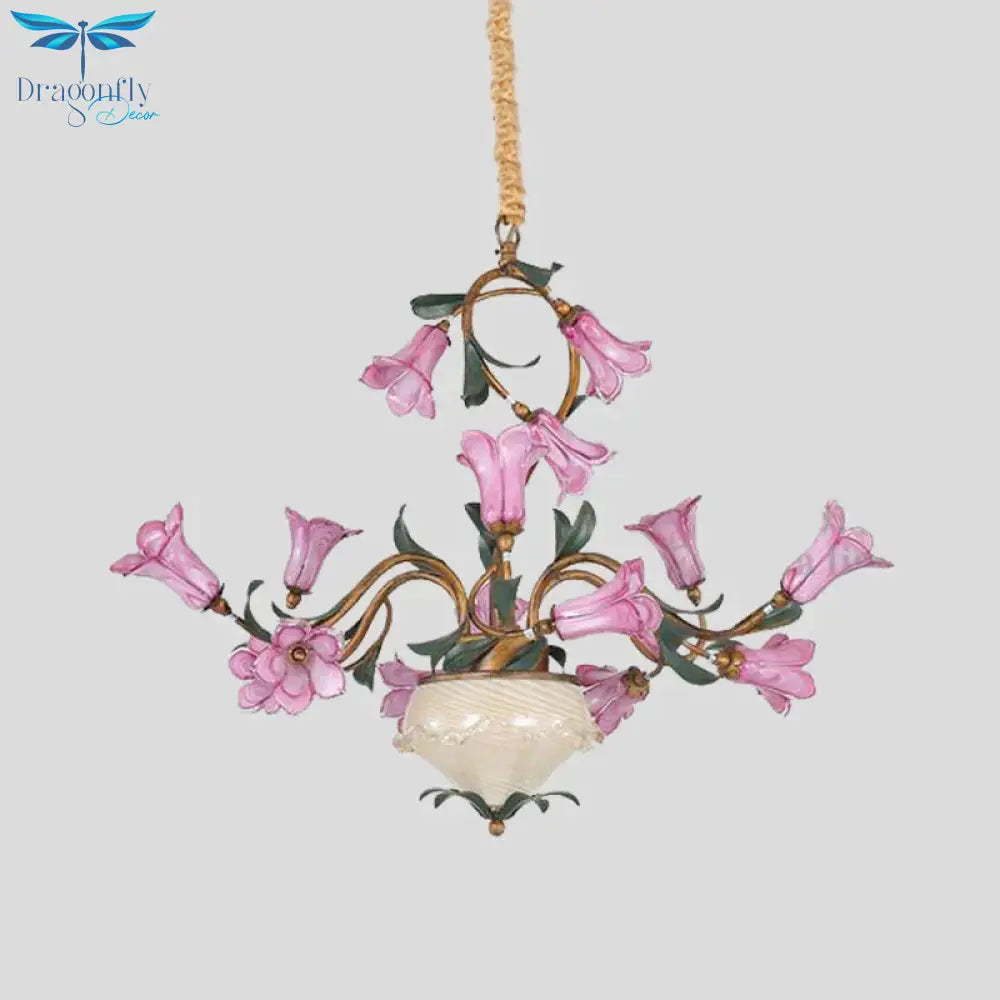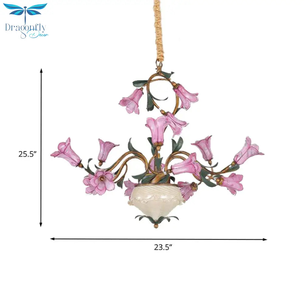 American Garden Lily 15 Heads Metal LED Pendant Ceiling Light in Brass