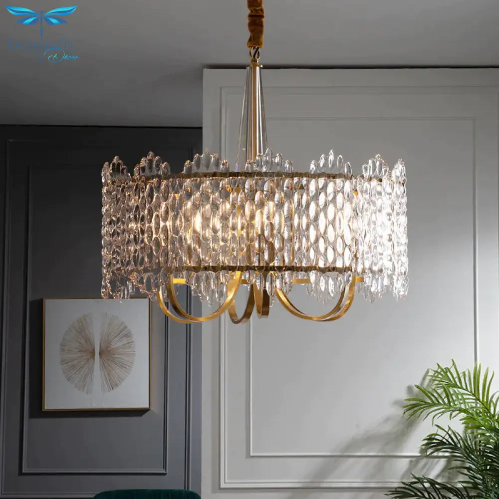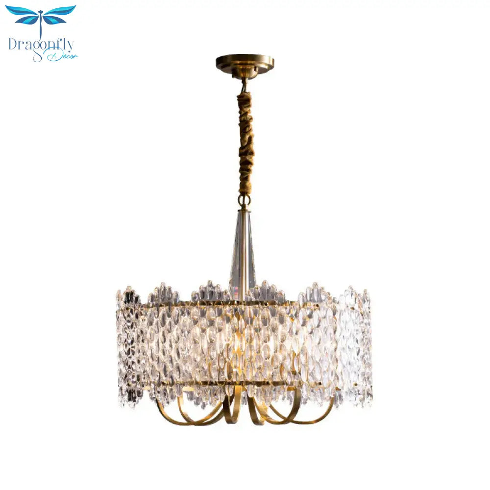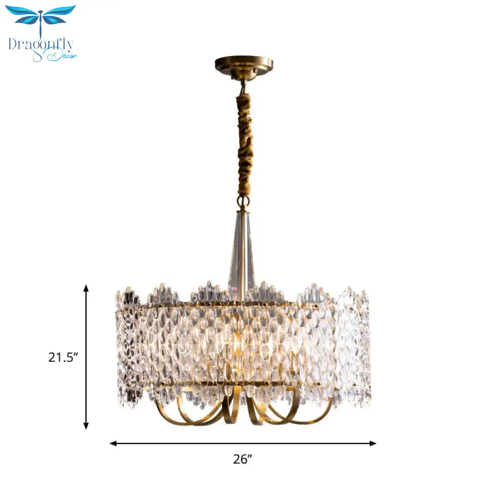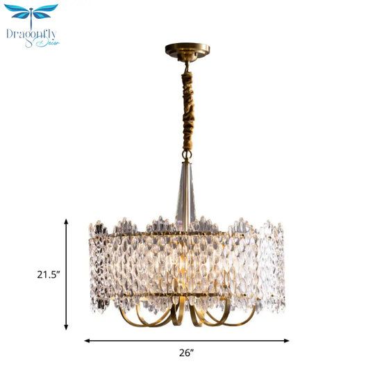Antique Drum Suspension Lighting 6-Bulb Clear K9 Crystal Chandelier Pendant Light in Gold
