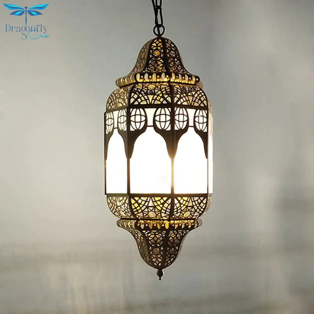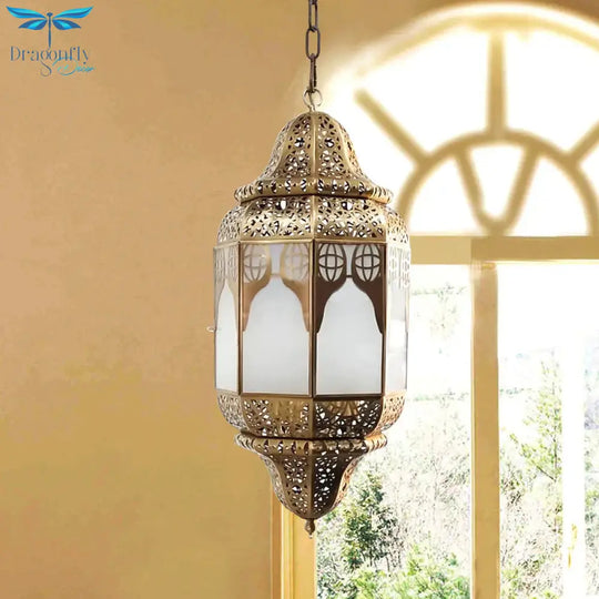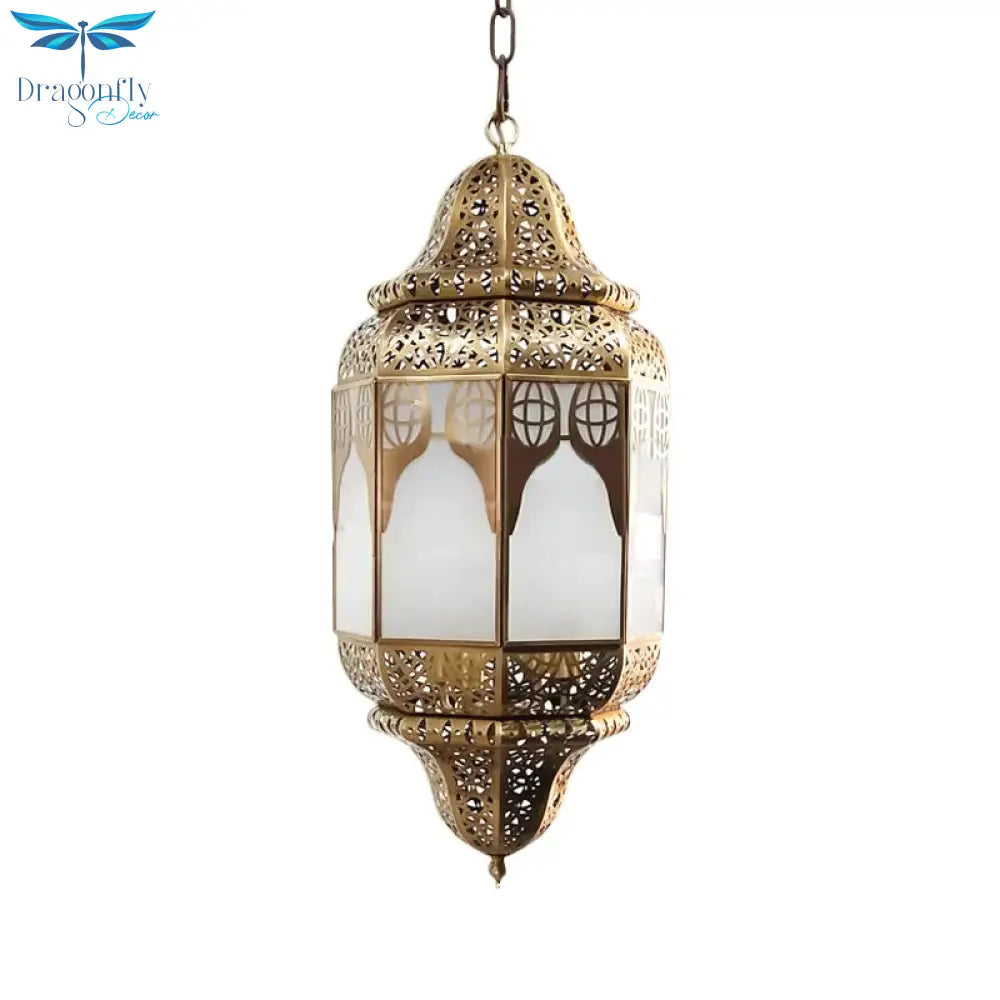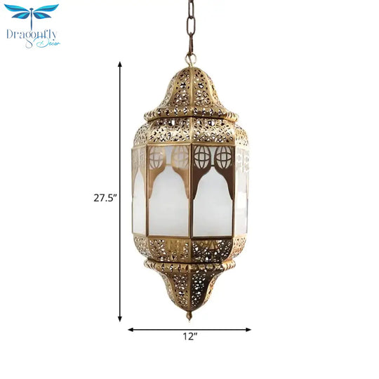 Antique Lantern Hanging Lamp 4 Bulbs Frosted Glass Ceiling Chandelier in Brass for Restaurant