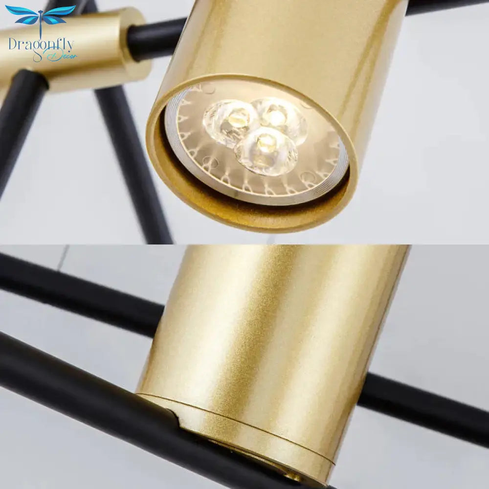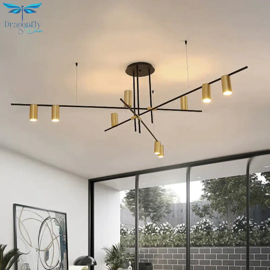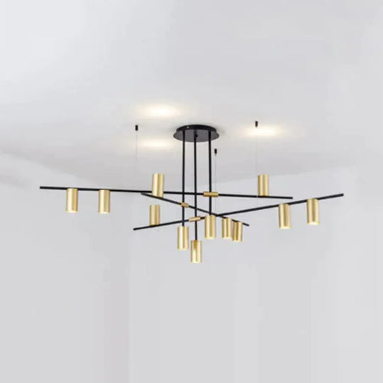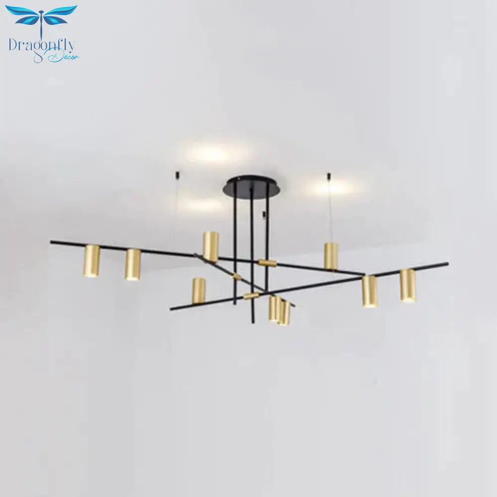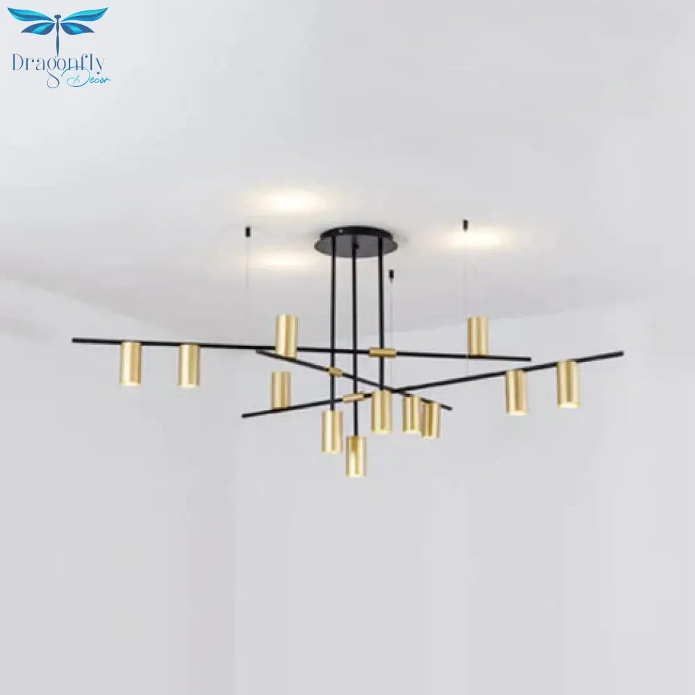 Asymmetrical Cylinder Chandelier Lighting Fixture Modern Metal 3/4/9 Heads Gold Ceiling Lamp For