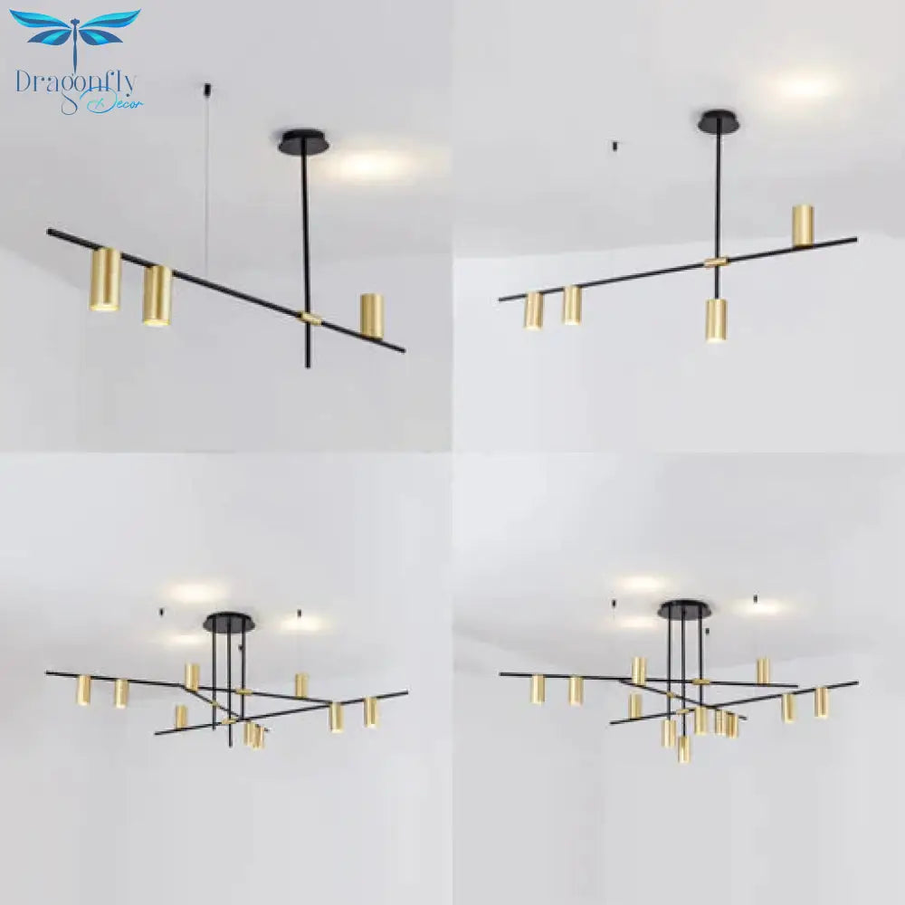 Asymmetrical Cylinder Chandelier Lighting Fixture Modern Metal 3/4/9 Heads Gold Ceiling Lamp for Dining Room in Warm/White