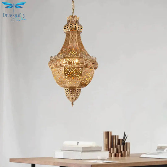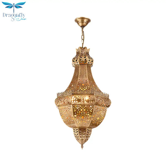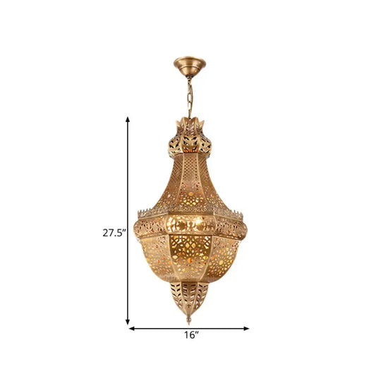 Basket Metal Chandelier Light Arab 4 Heads Restaurant Pendant Lighting Fixture in Brass