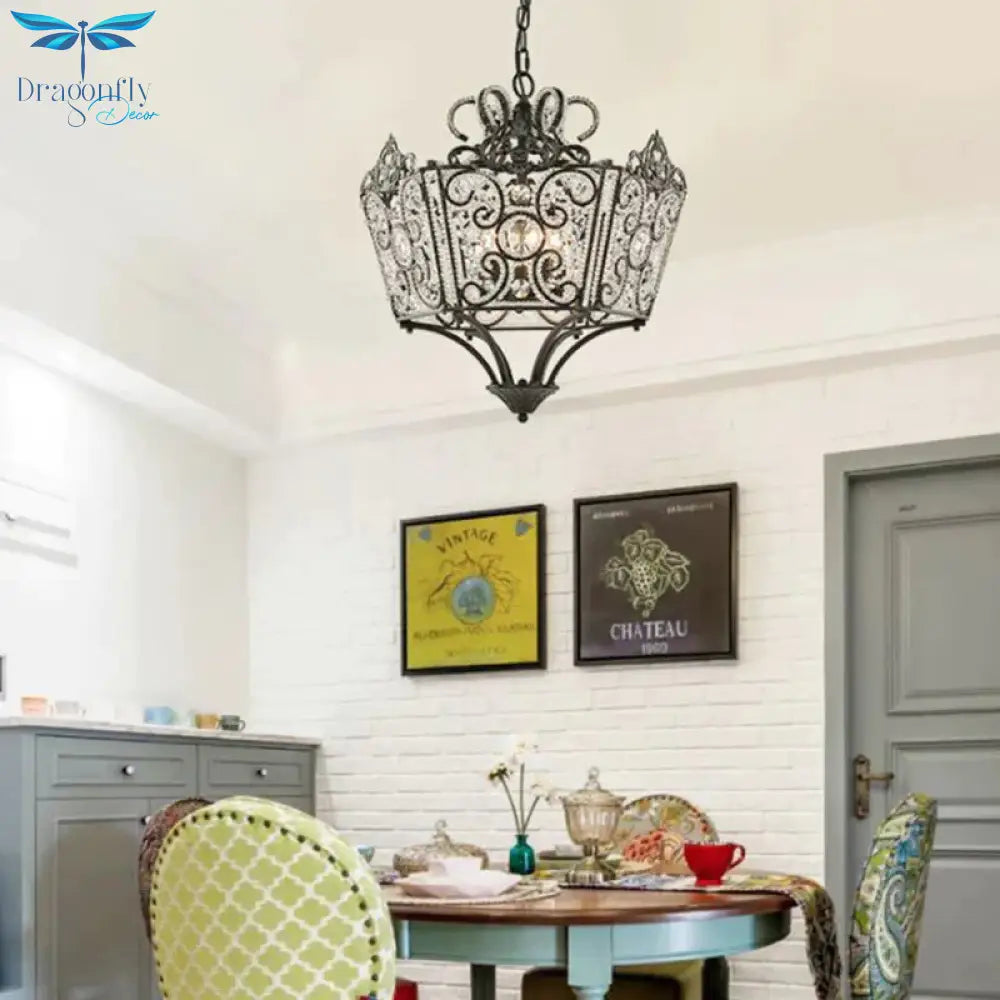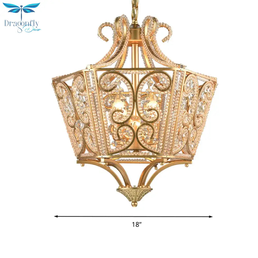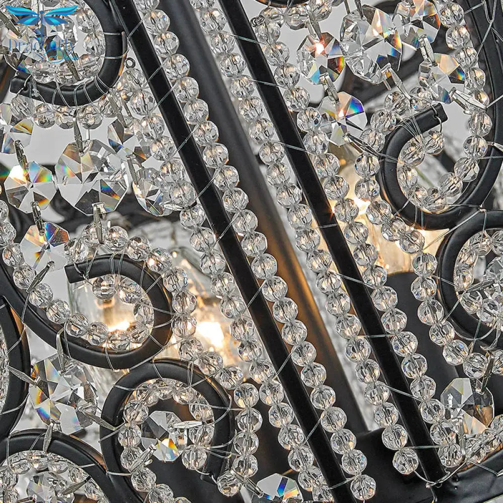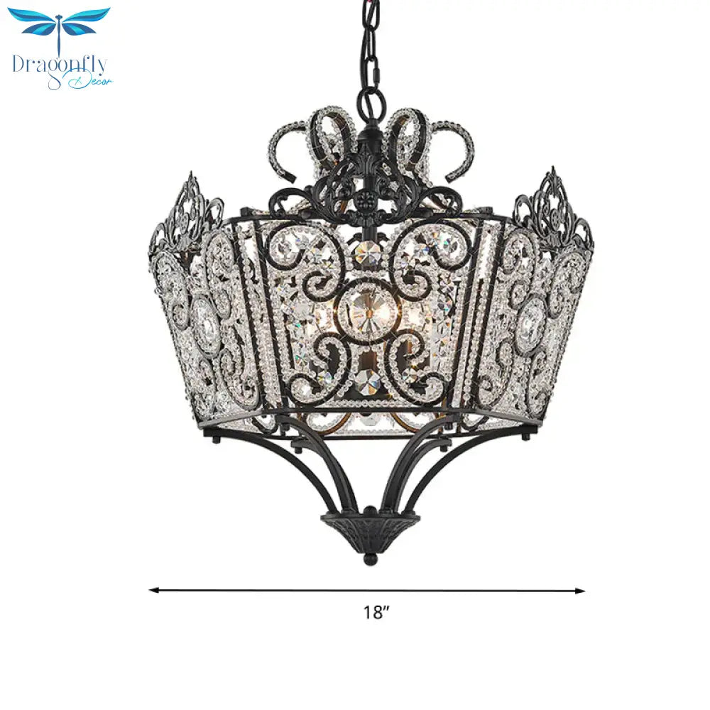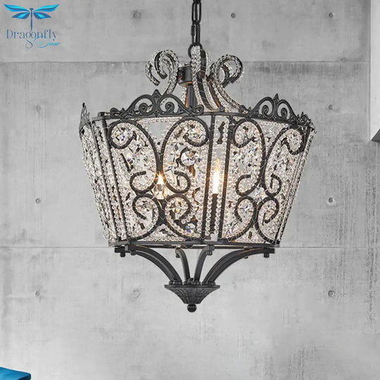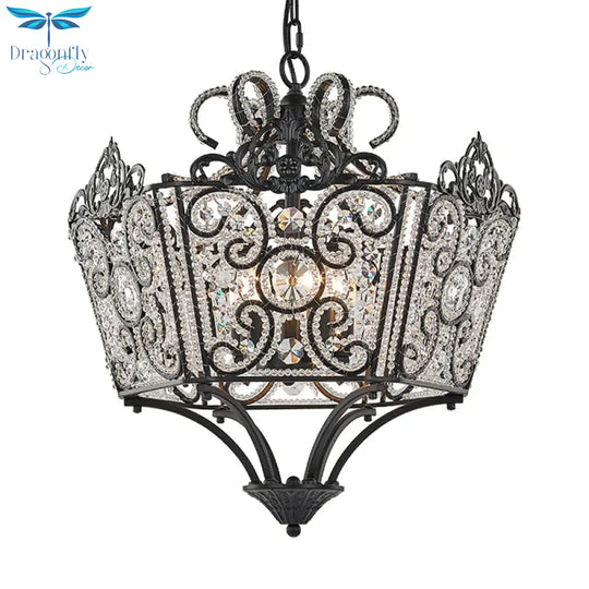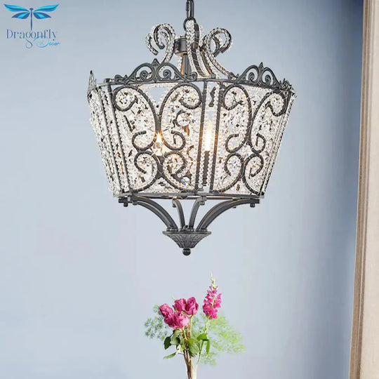 Beaded Chandelier Lamp Traditional K9 Crystal 4 Bulbs Living Room Hanging Light Fixture in Black/Gold