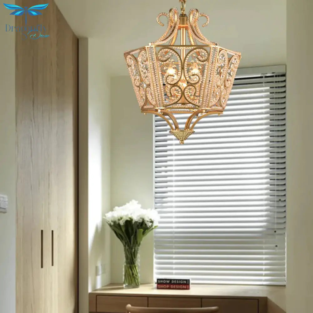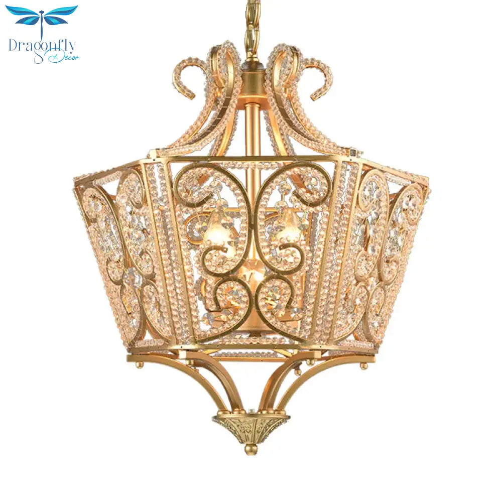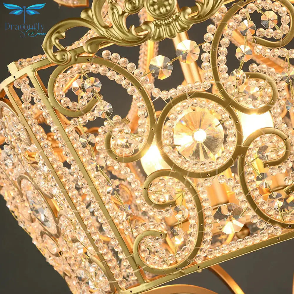 Beaded Chandelier Lamp Traditional K9 Crystal 4 Bulbs Living Room Hang