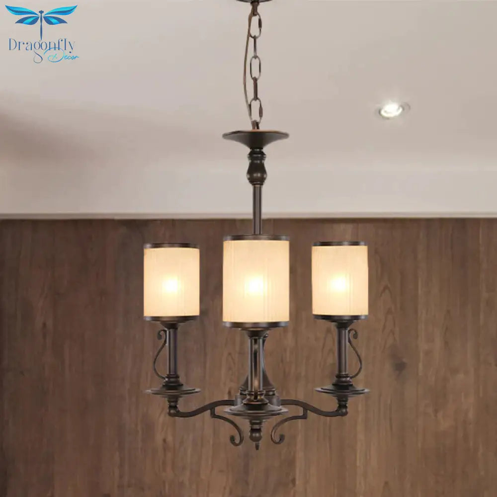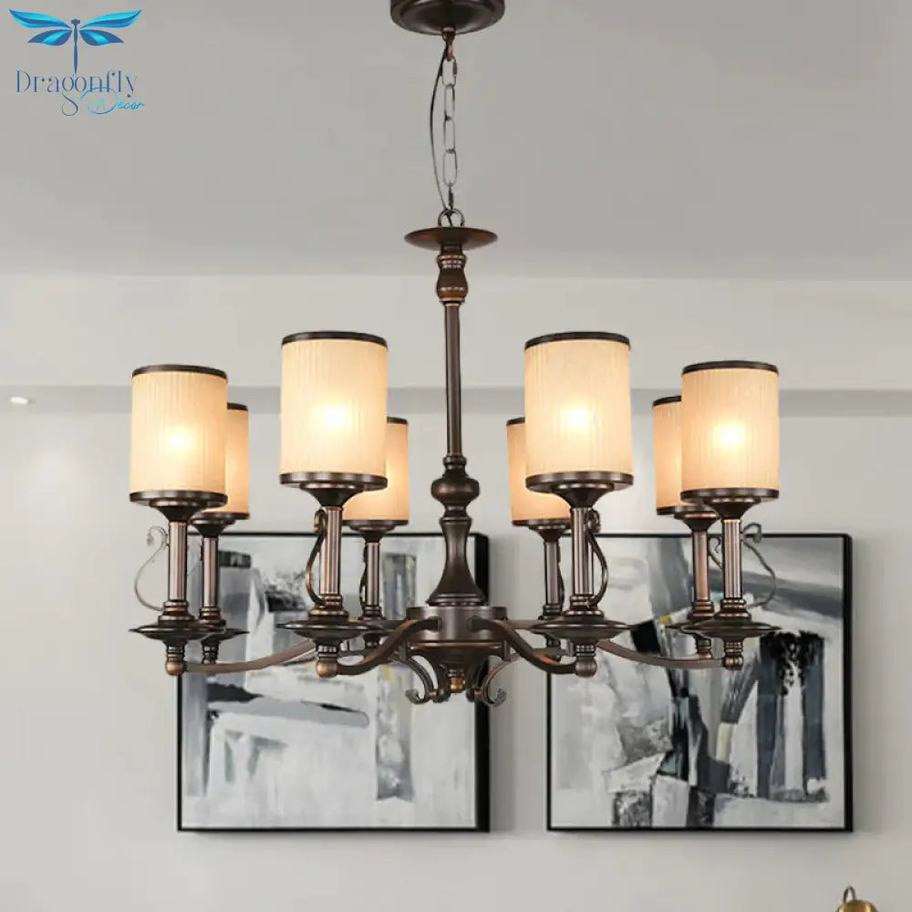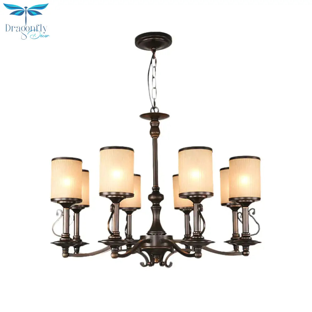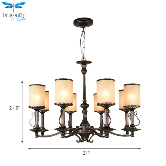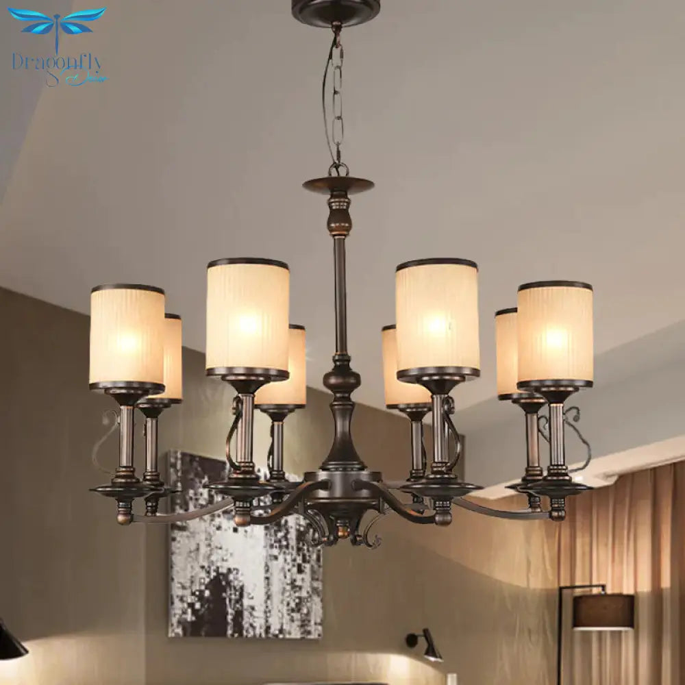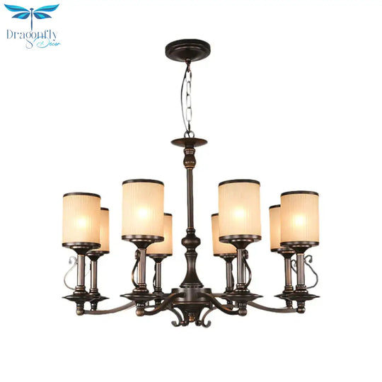Beige Glass Black Chandelier Lamp Cylindrical 3/6/8 Heads Traditionali