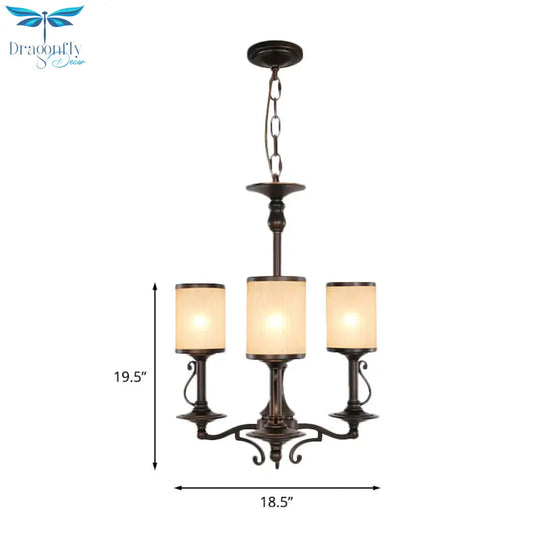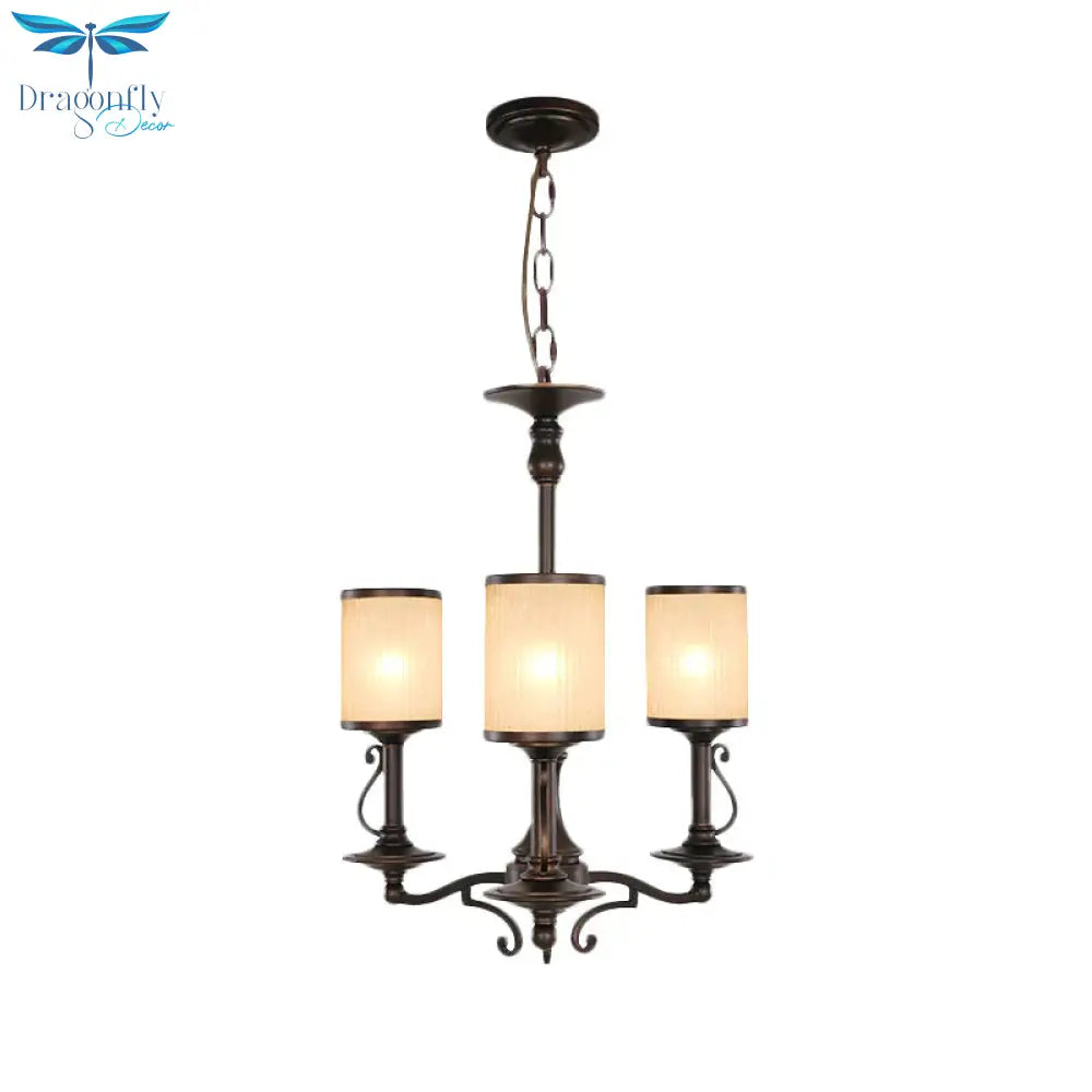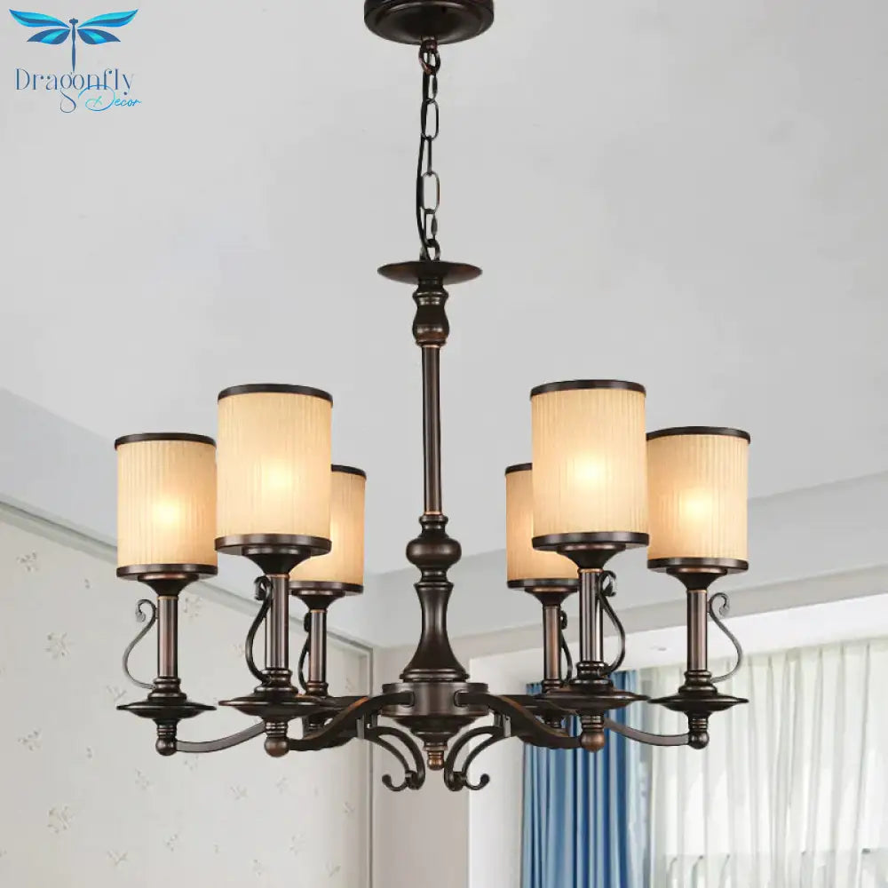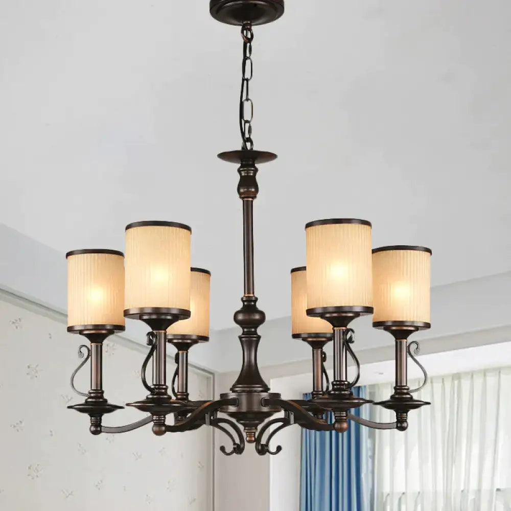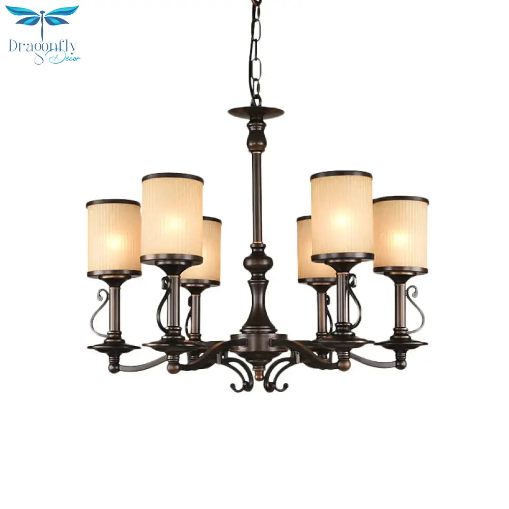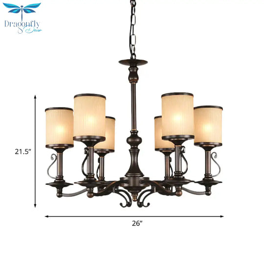 Beige Glass Black Chandelier Lamp Cylindrical 3/6/8 Heads Traditionali