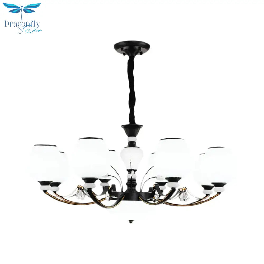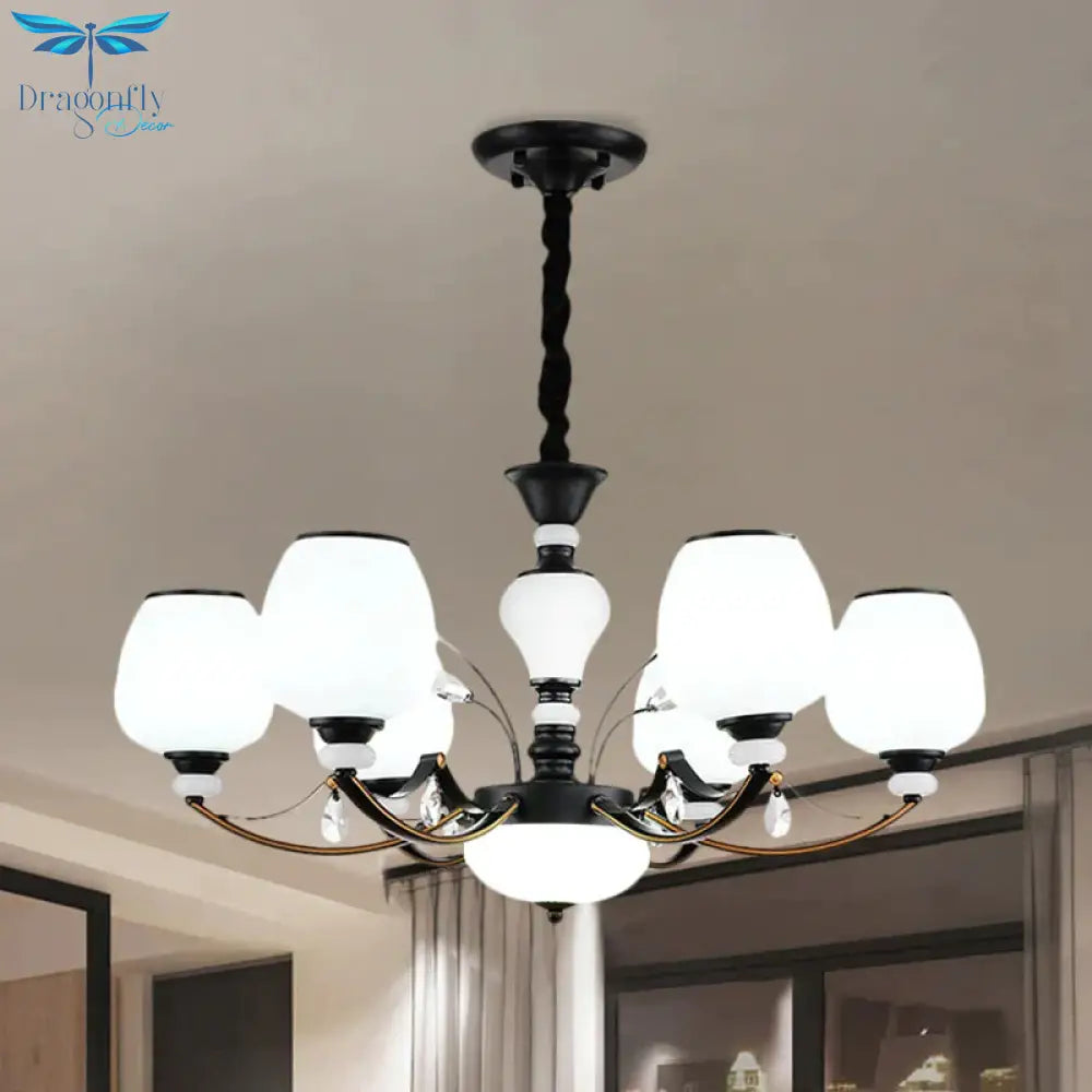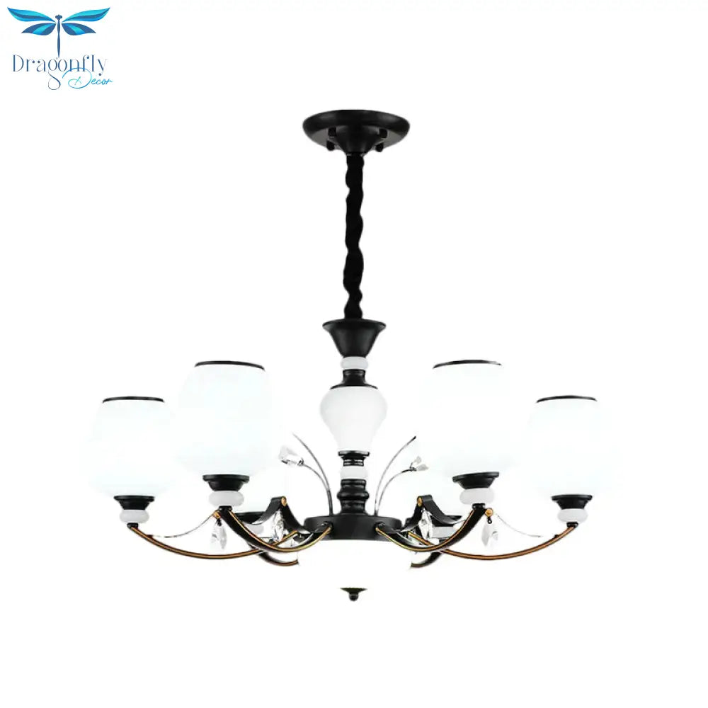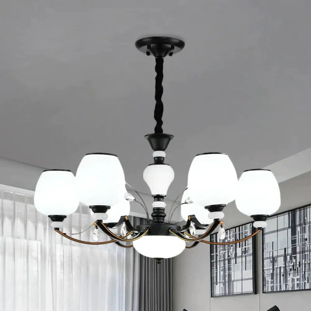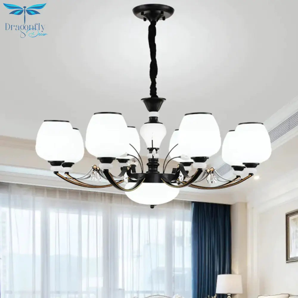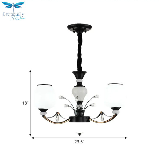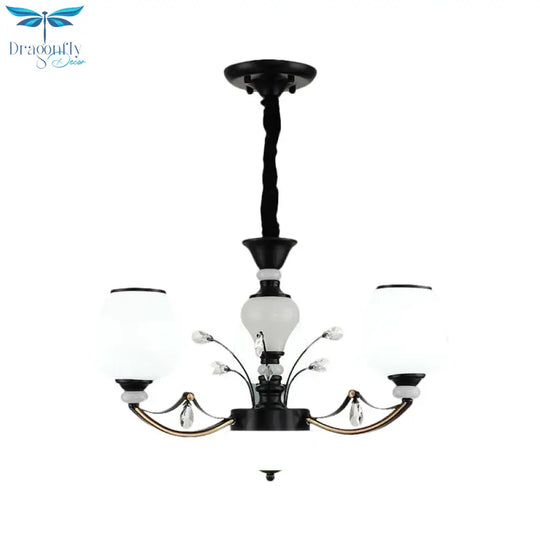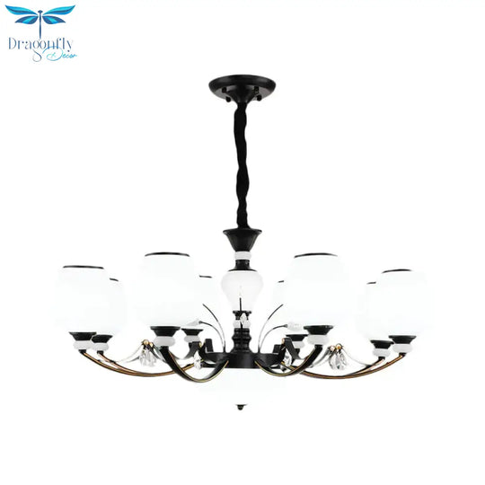 Black 3/6/8-Head Ceiling Chandelier Countryside Style Cream Glass Barr