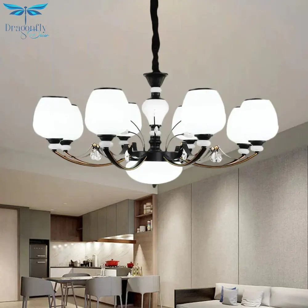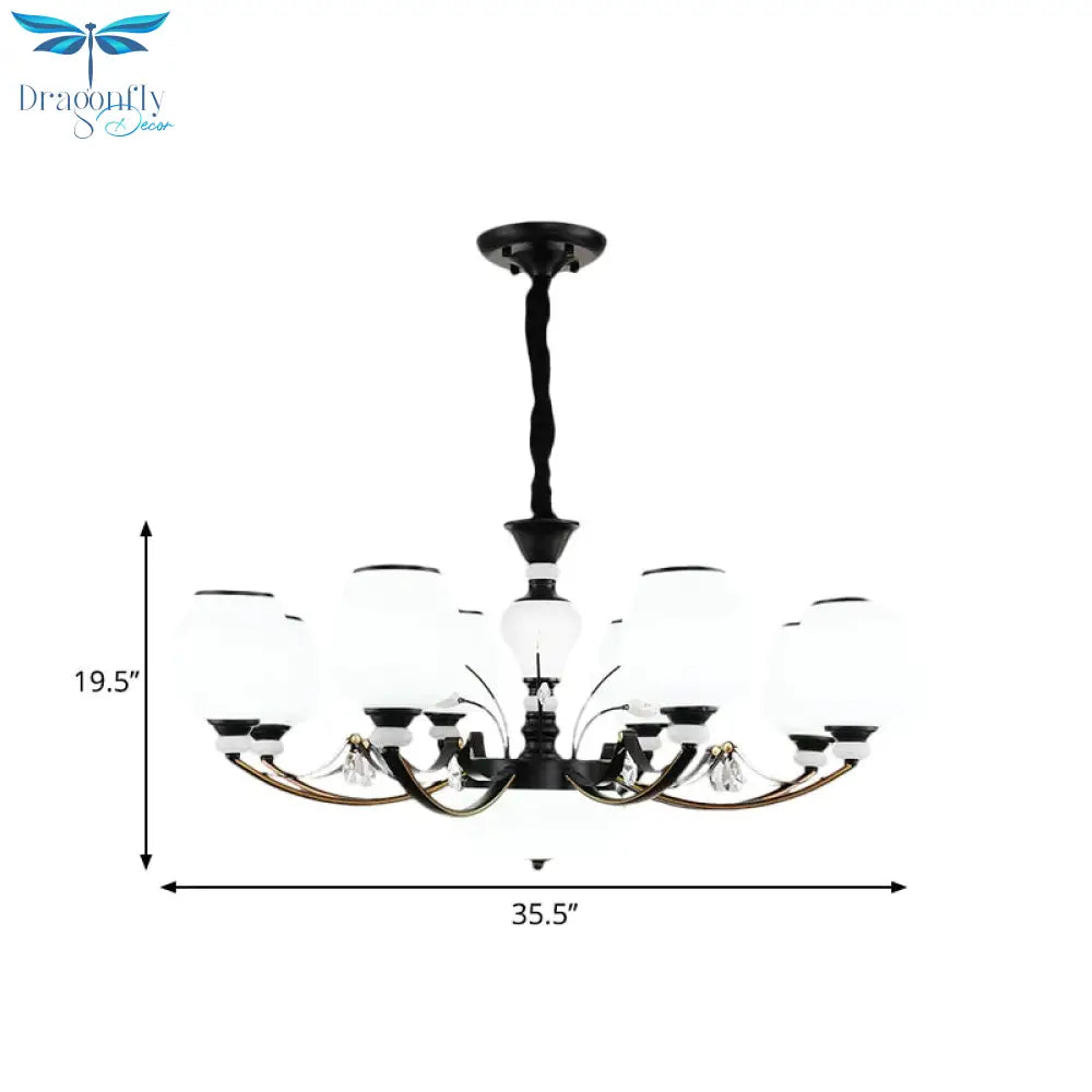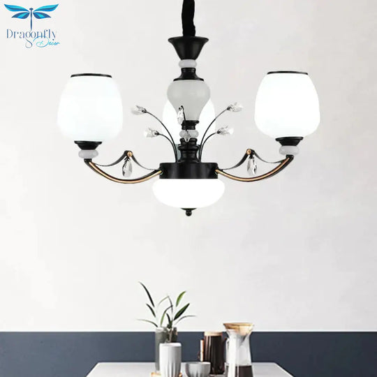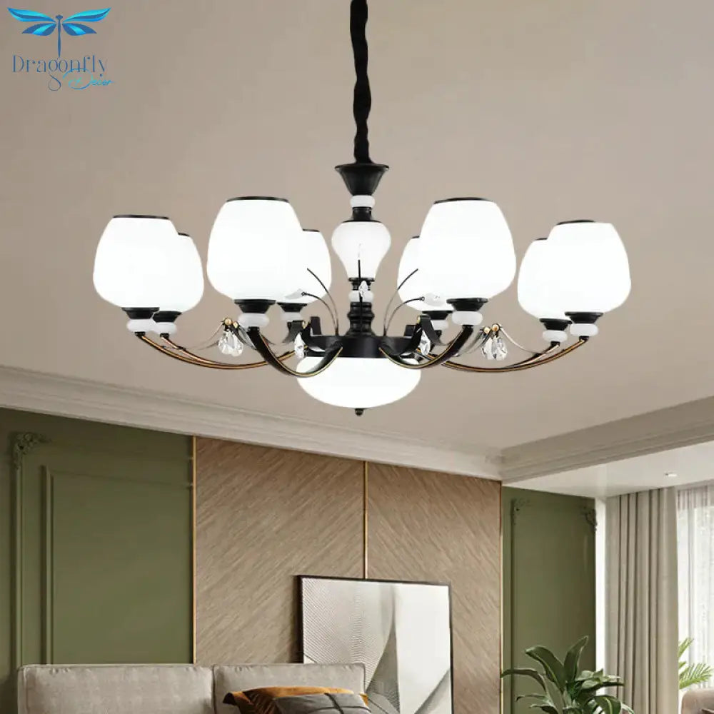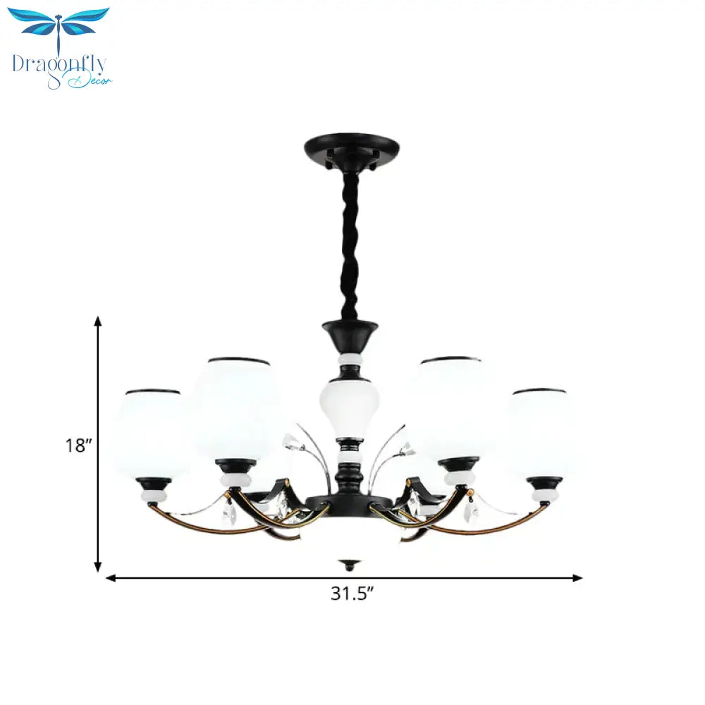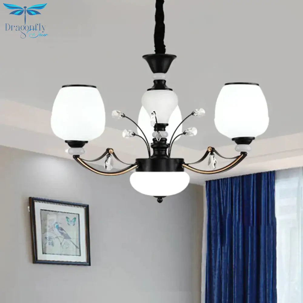 Black 3/6/8-Head Ceiling Chandelier Countryside Style Cream Glass Barr