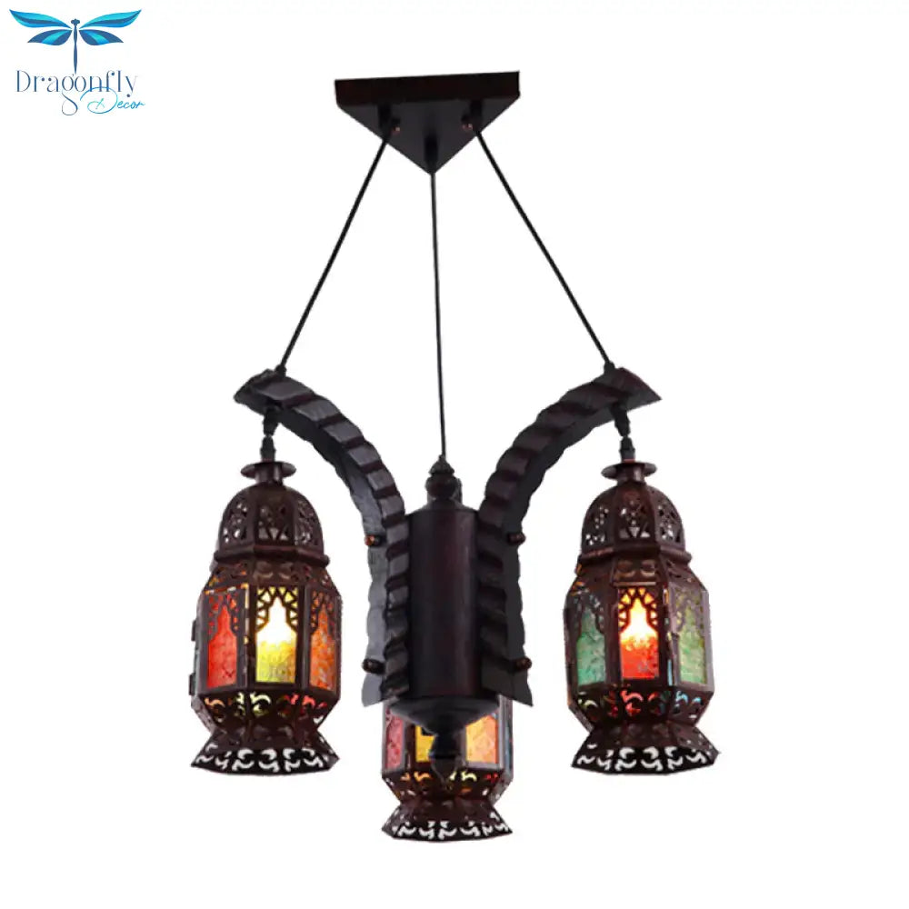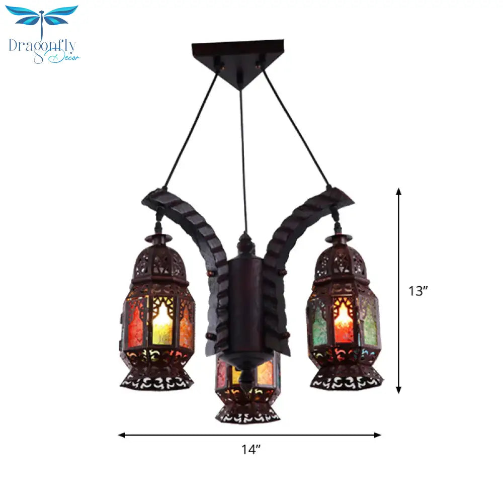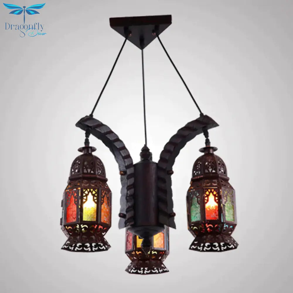 Black 3-Light Hanging Chandelier Arab Metal Lantern Suspension Lamp fo