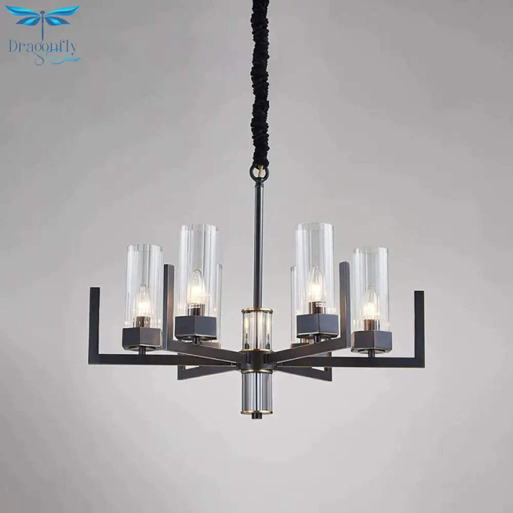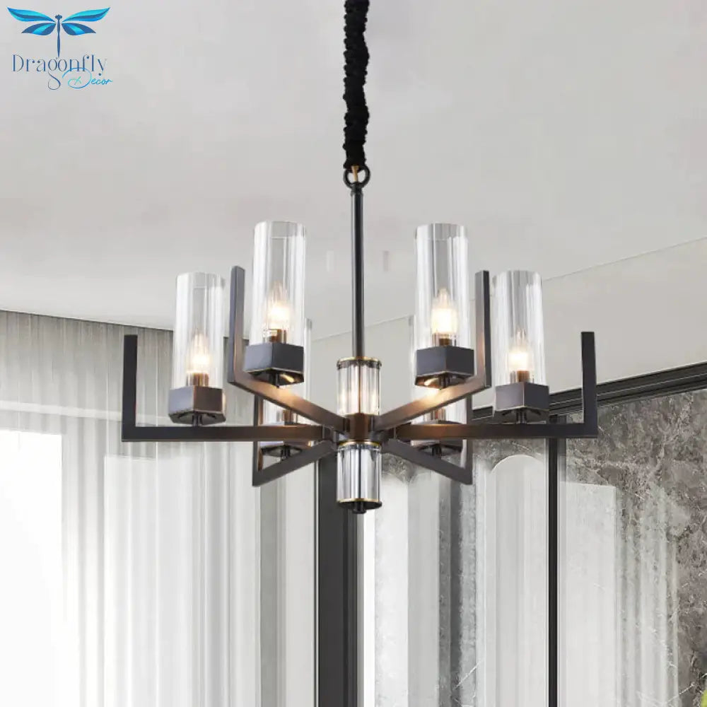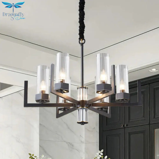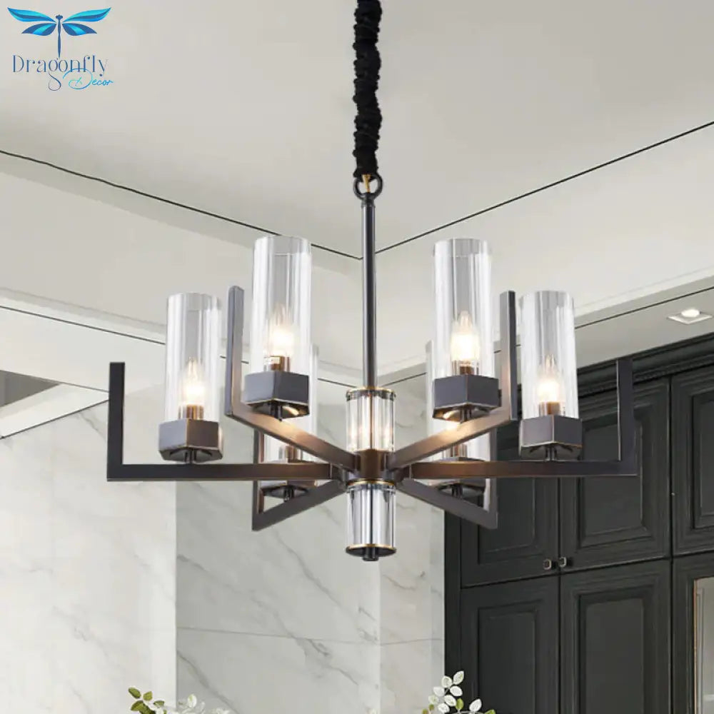 Black Radial Chandelier Vintage Metal 6-Bulb Dining Table Suspension P