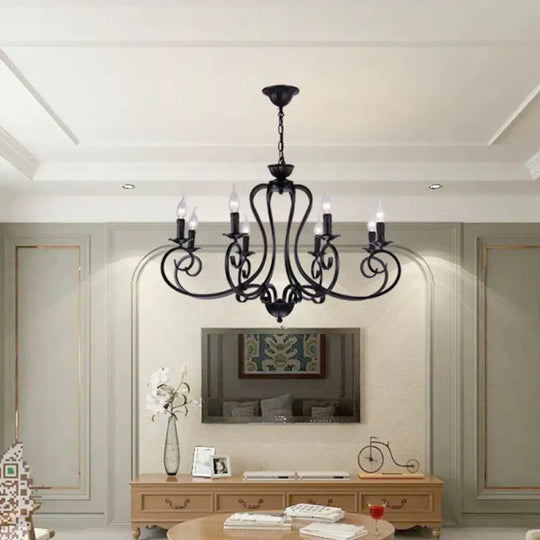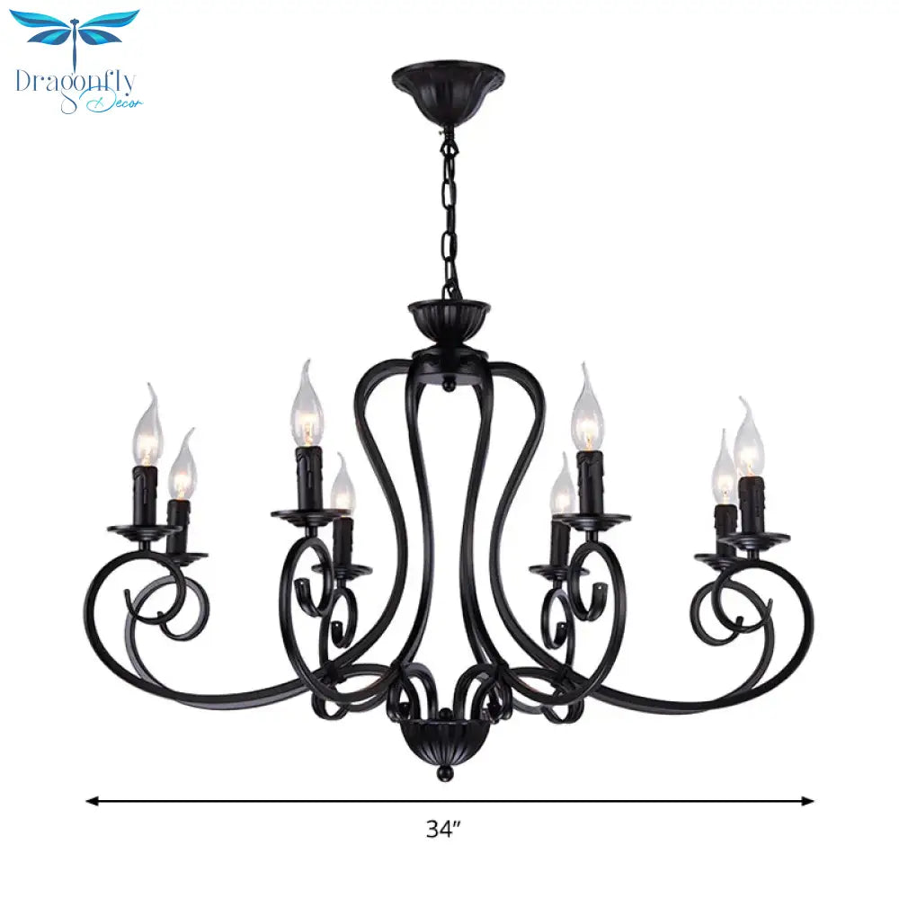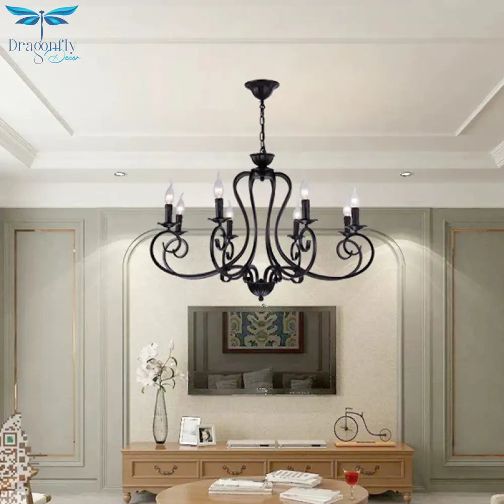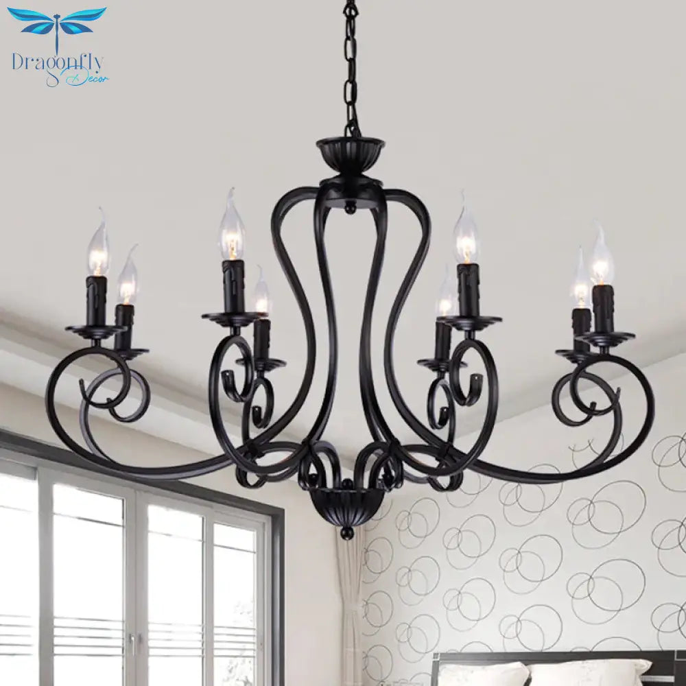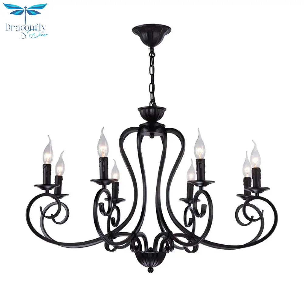Black Swirled Arm Cahndelier Lamp Vintage Metal 8 Lights Bedroom Hanging Pendant Light