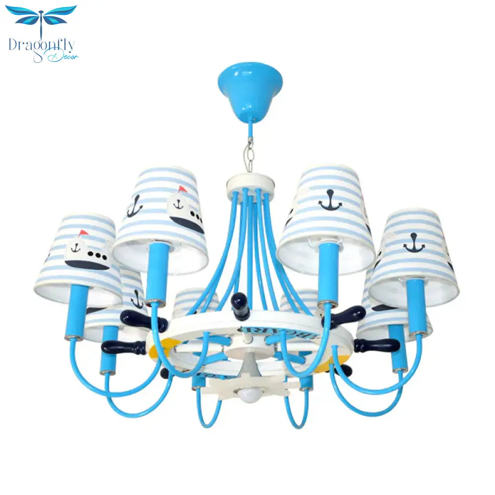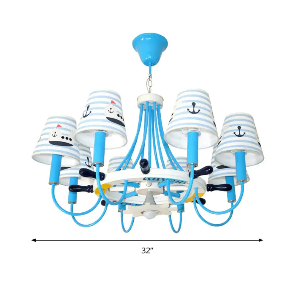 Blue Tapered Shade Hanging Chandelier Seaside Fabric Hanging Lights fo