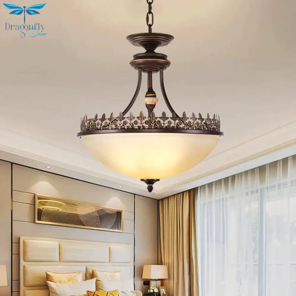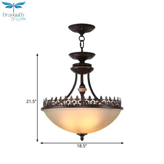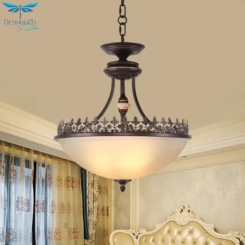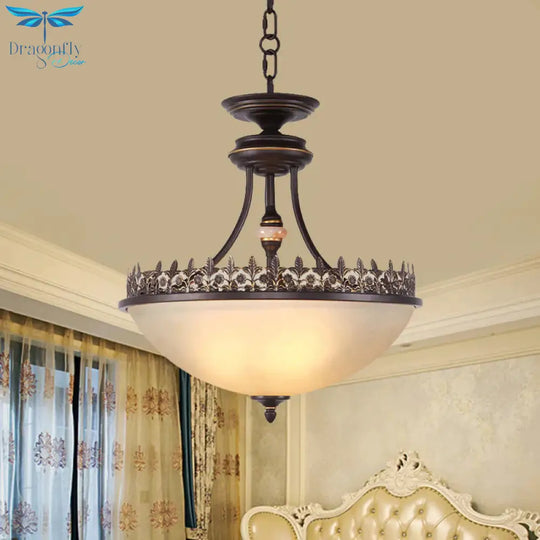 Bowl Bedroom Pendant Chandelier Rural Frosted Glass 3 Bulbs Black Hang