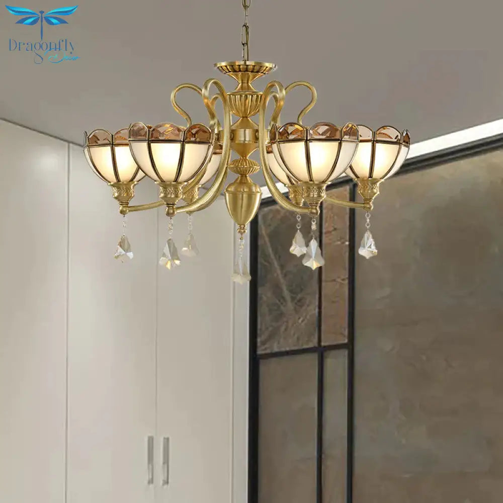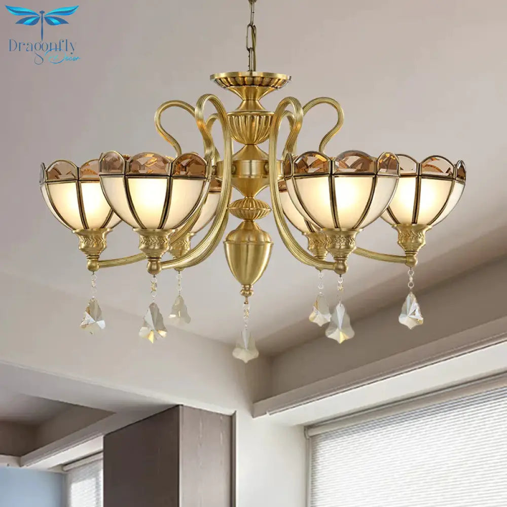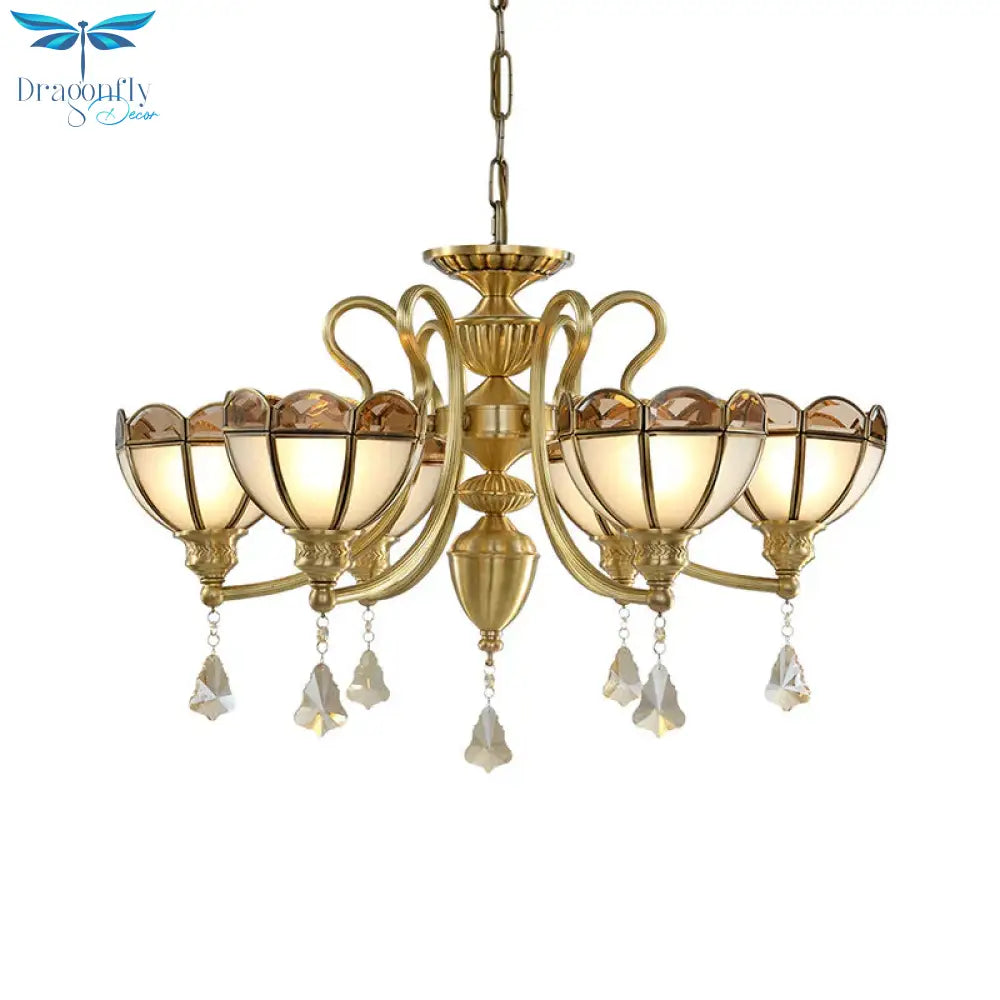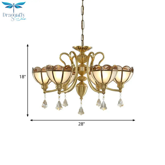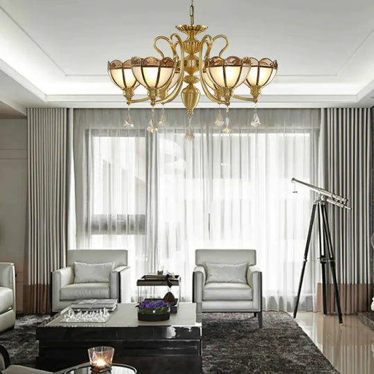 Bowl Frosted Glass Suspension Pendant Colonial 6 Bulbs Living Room Chandelier Lighting in Gold