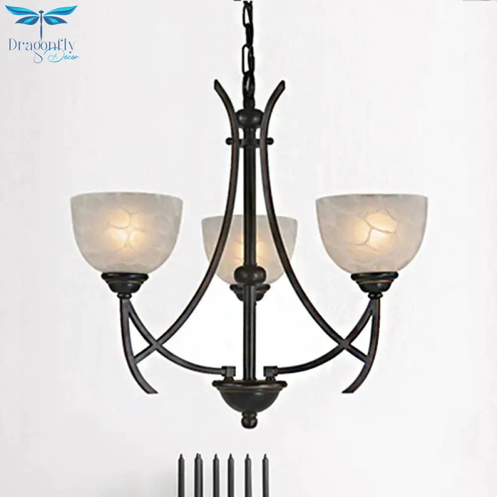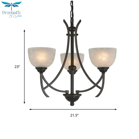 Bowl Living Room Pendant Chandelier Traditional White Cloud-Like Frosted Glass 3 Lights Bronze Hanging Fixture