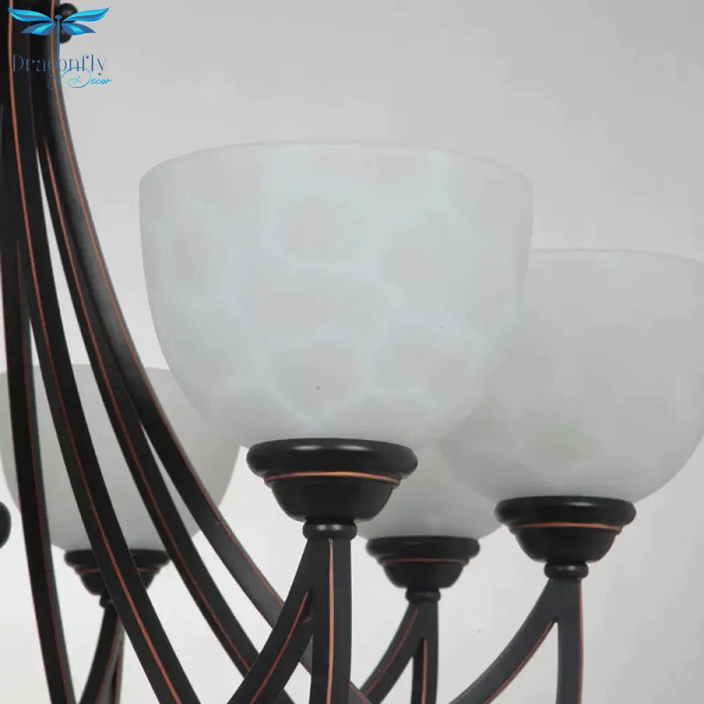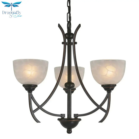 Bowl Living Room Pendant Chandelier Traditional White Cloud - Like Frosted Glass 3 Lights Bronze