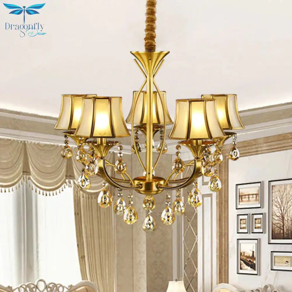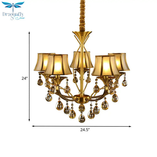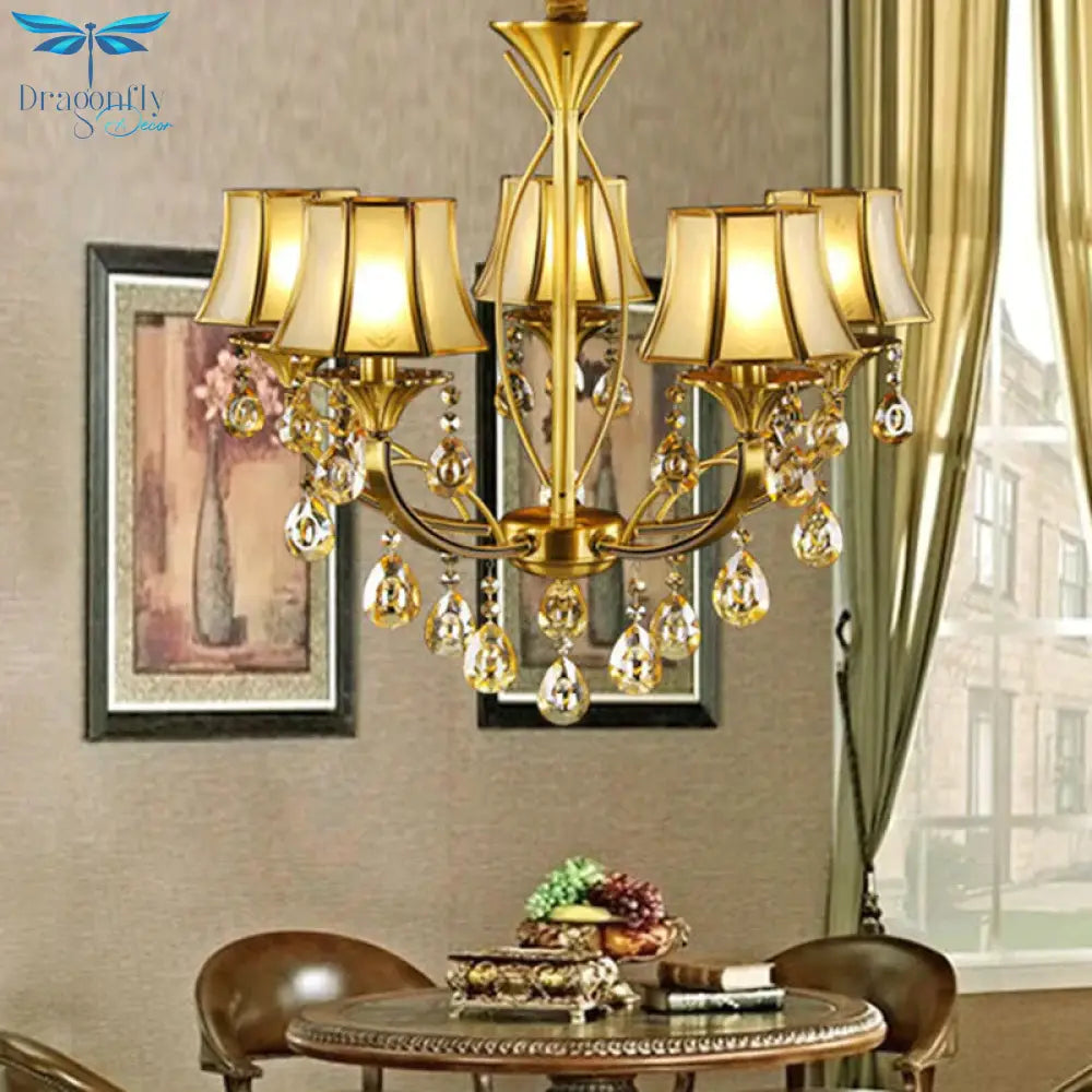 Brass 5 Lights Hanging Pendant Light European Crystal Orbs Empire Shade Ceiling Chandelier