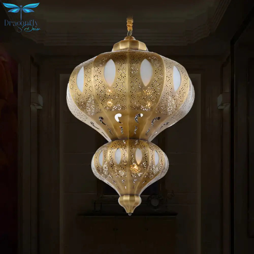 Brass 8 Heads Hanging Pendant Light Arab Meta Gourd Shape Chandelier Lighting Fixture
