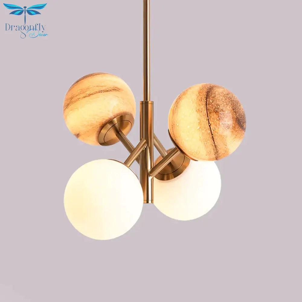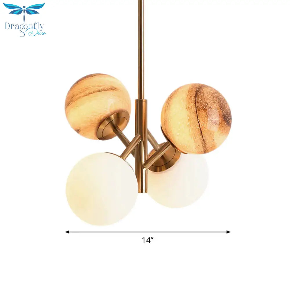 Brass Ball Hanging Lamp Kit Cartoon 4 Heads Multi colored Glass Ceiling Pendant with Straight Arm
