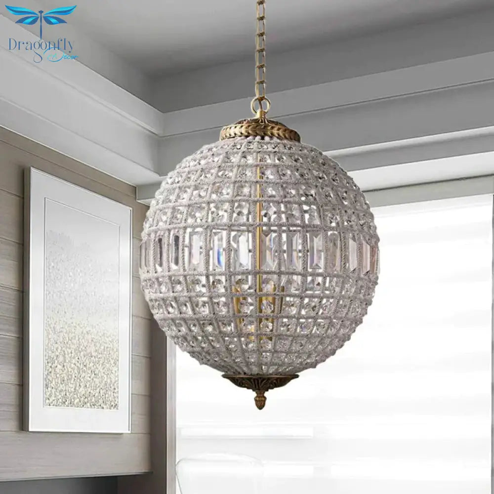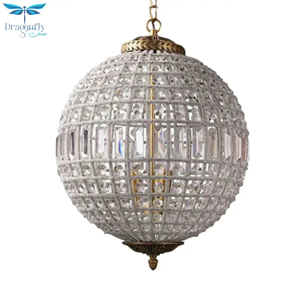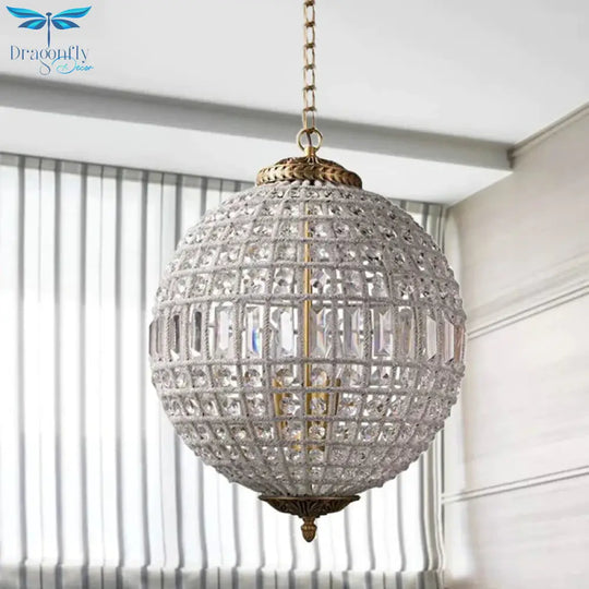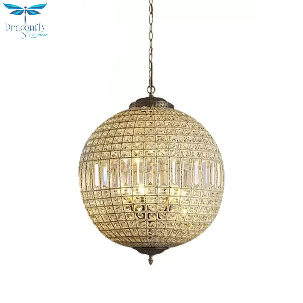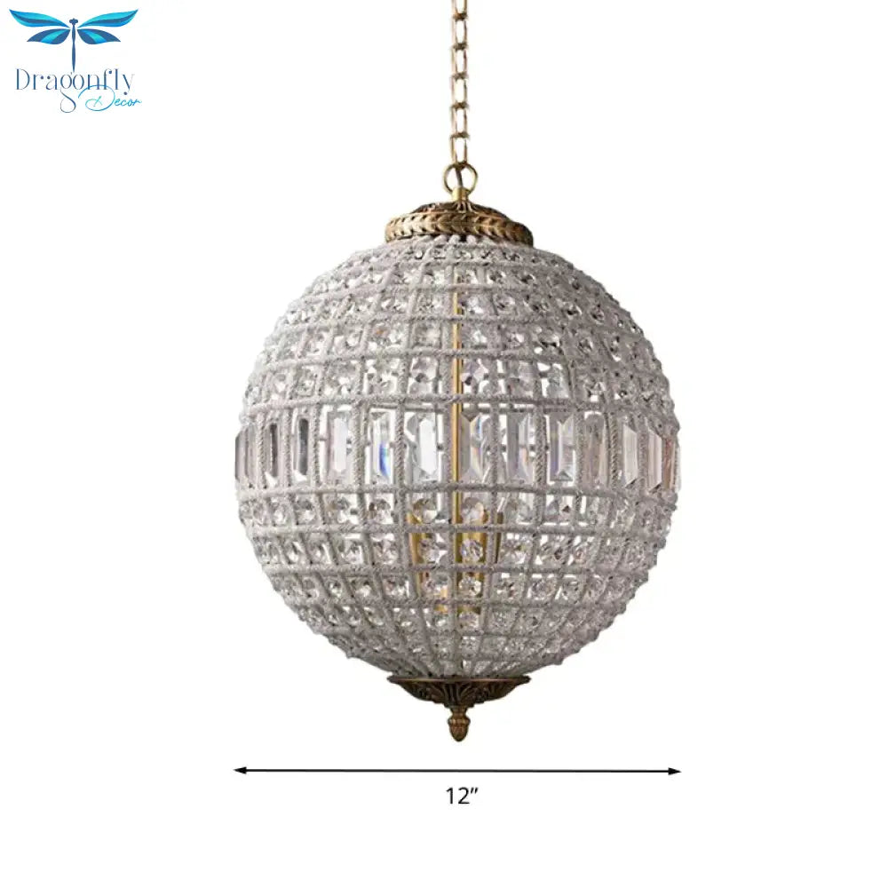 Brass Globe Shaped Chandelier Lighting Fixture Contemporary 1/3 Lights Crystal Pendant Lamp