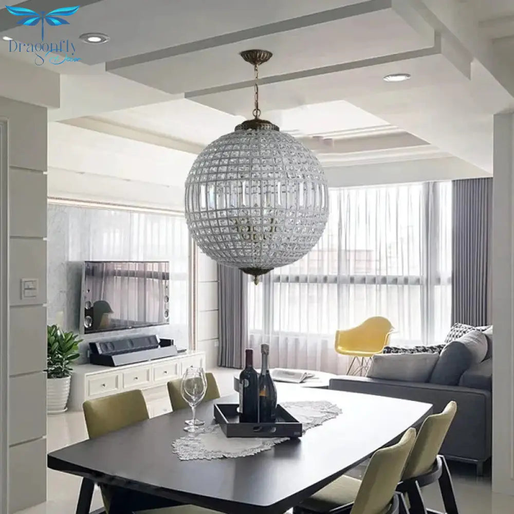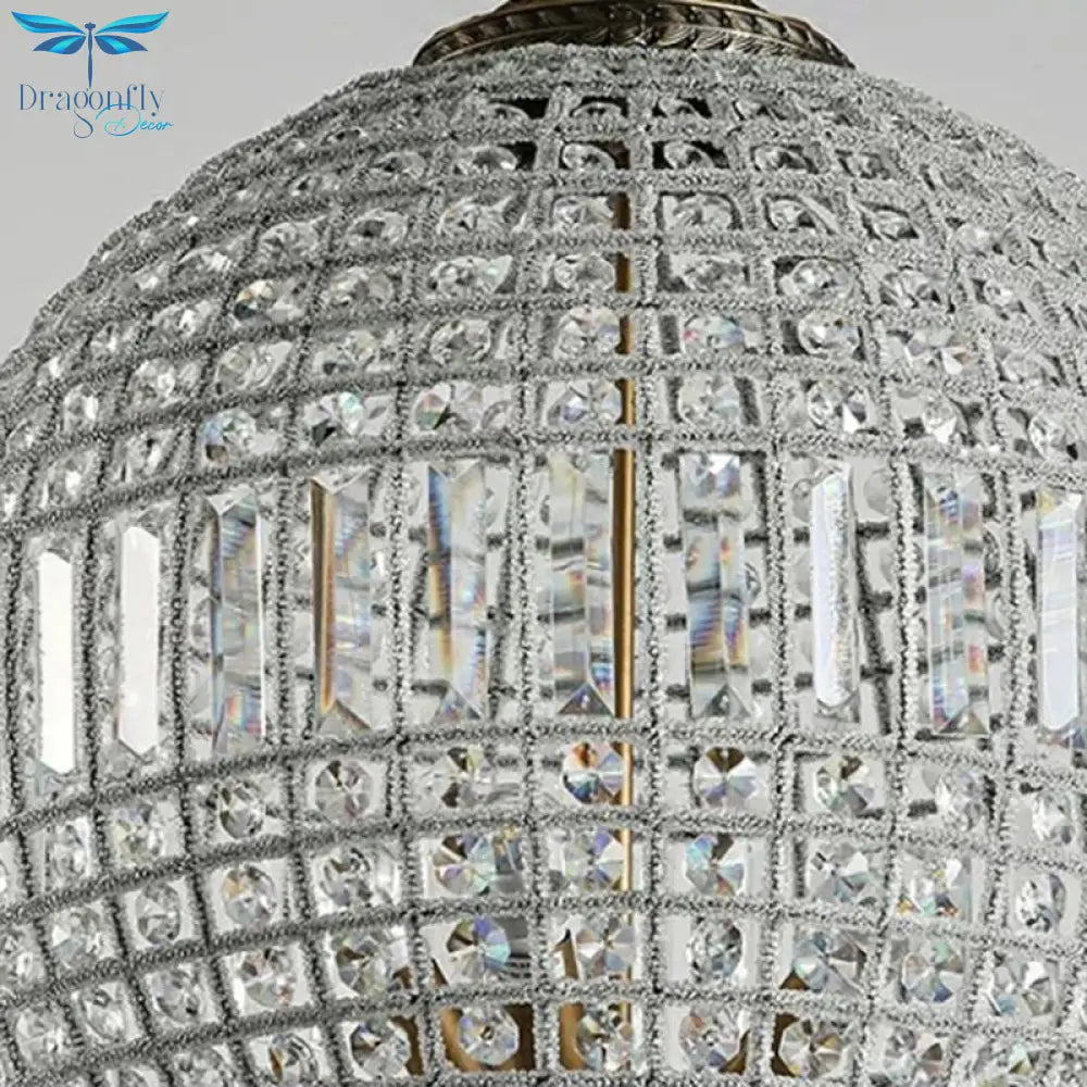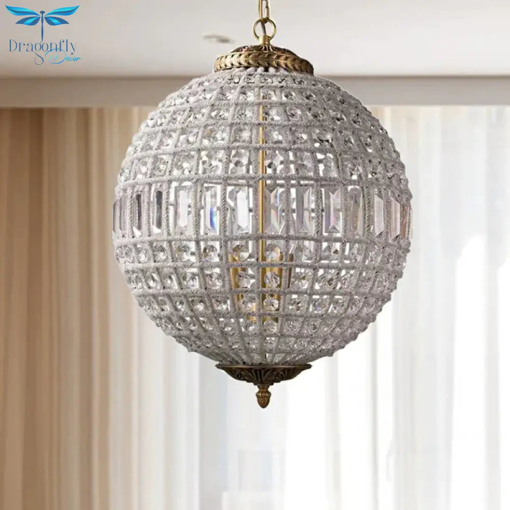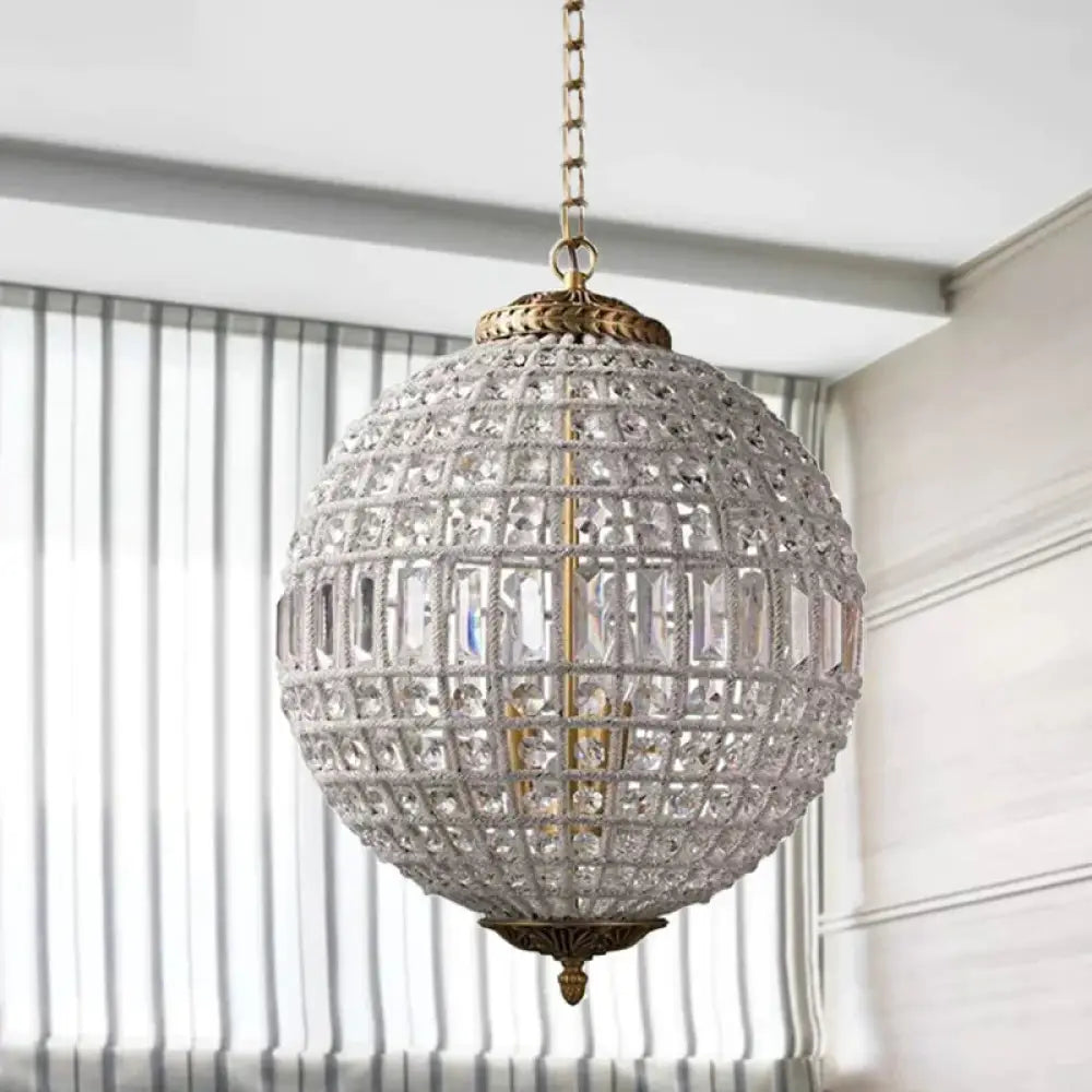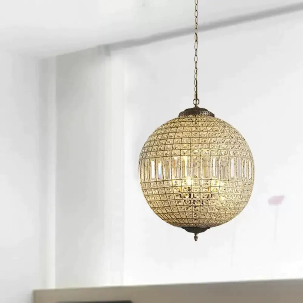 Brass Globe Shaped Chandelier Lighting Fixture Contemporary 1/3 Lights Crystal Pendant Lamp