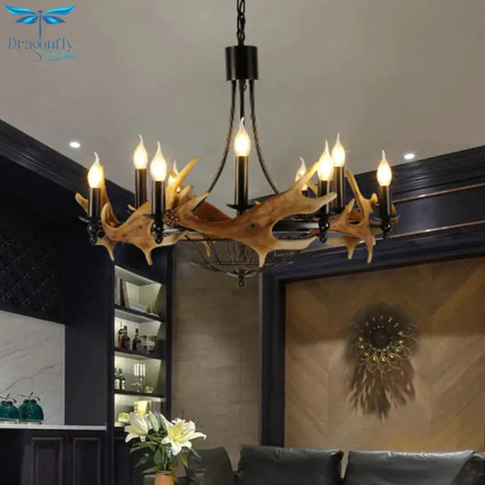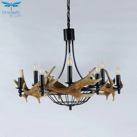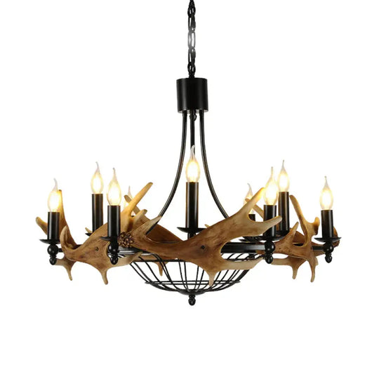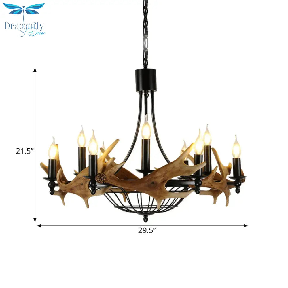 Brown 9 Lights Chandelier Lighting Rustic Metal Wine Barrel Pendant Lamp for Living Room