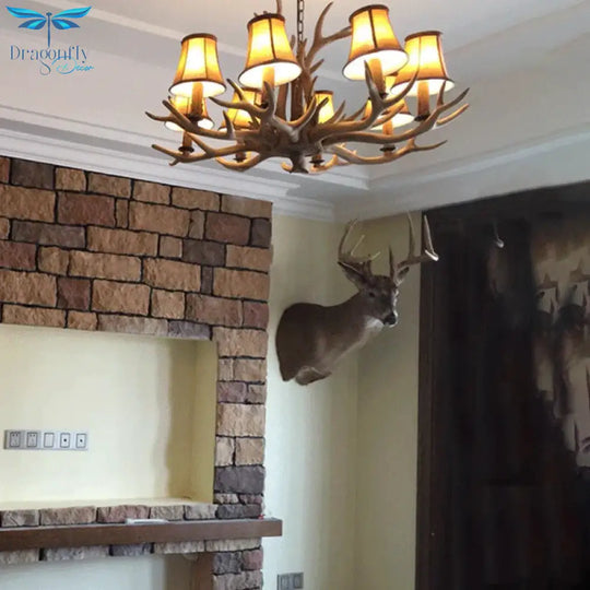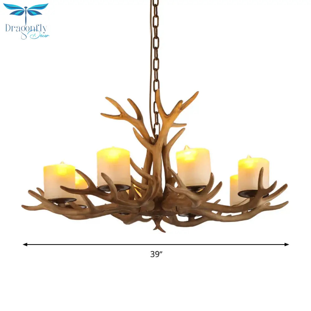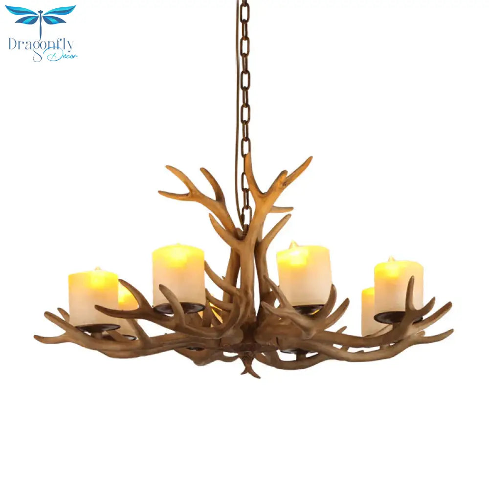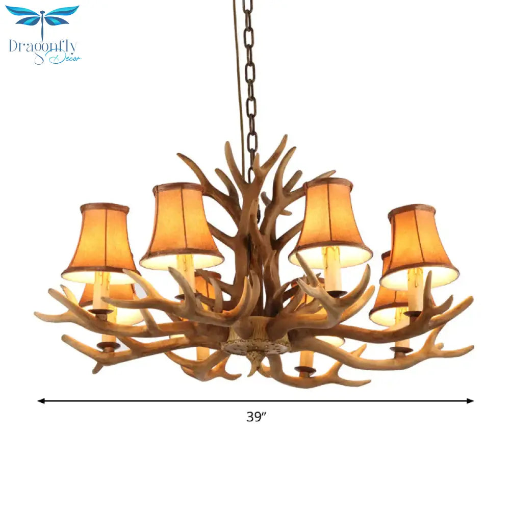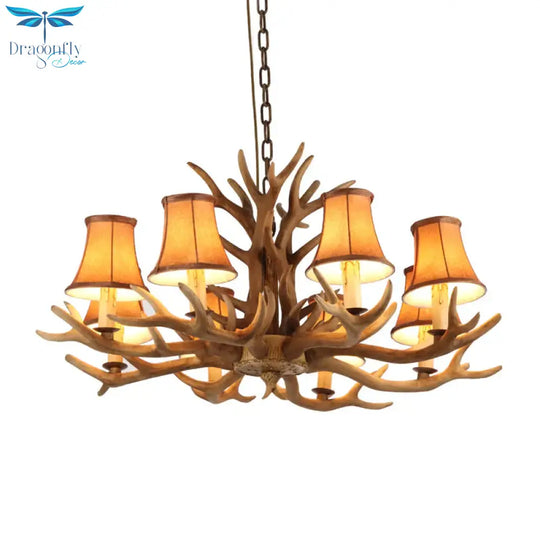 Brown Bell/Cylinder Chandelier Lighting Traditionalism Resin 6/8 Heads