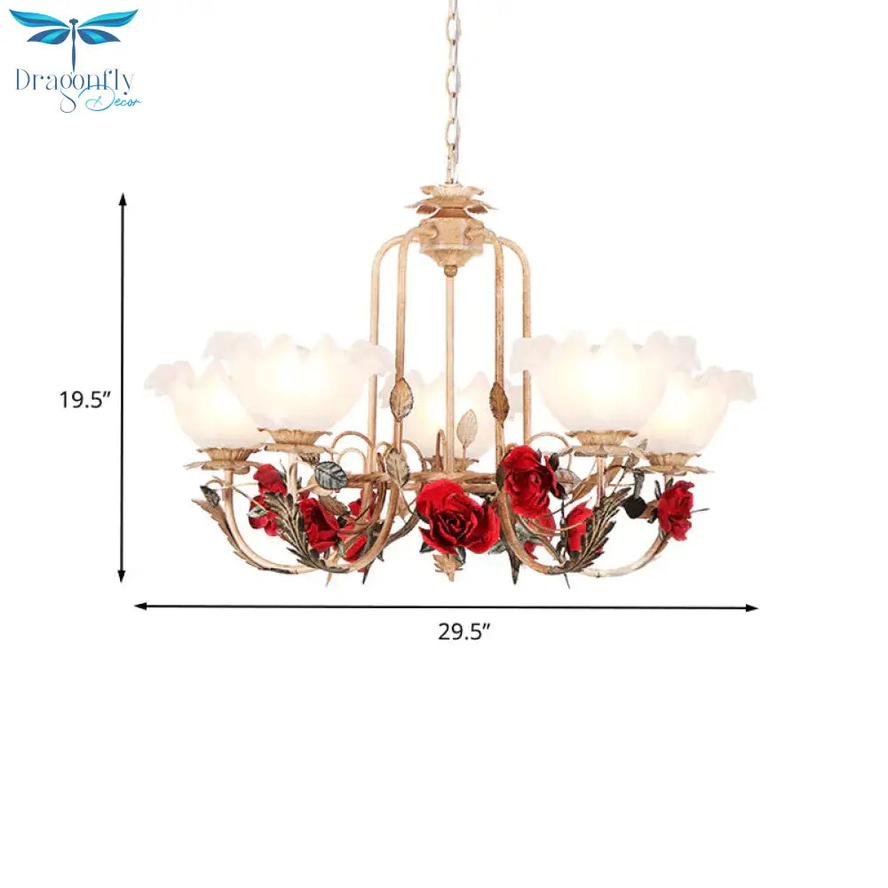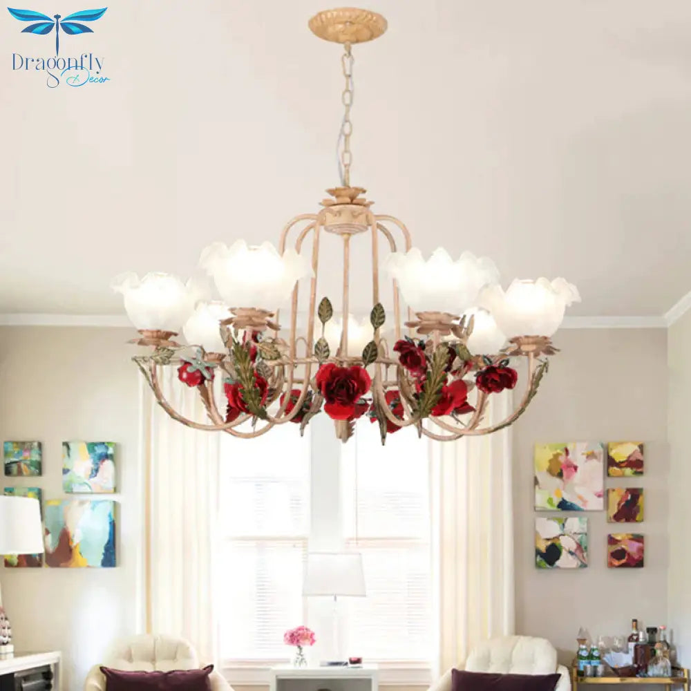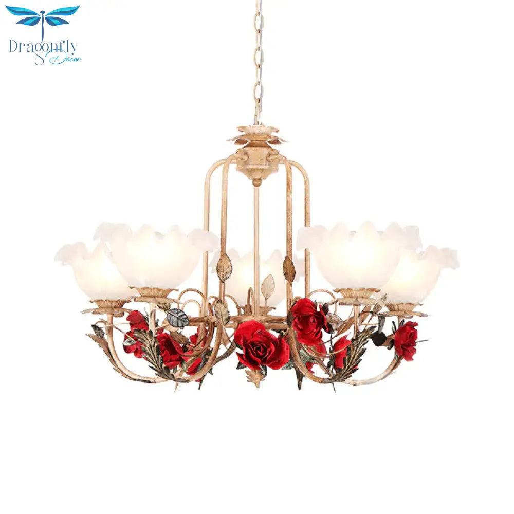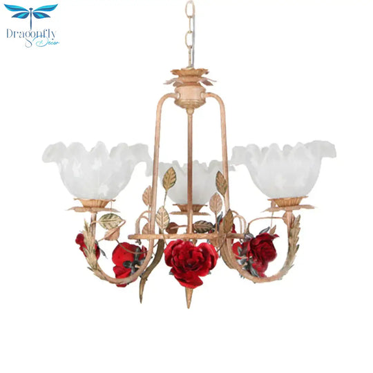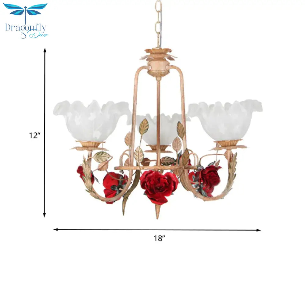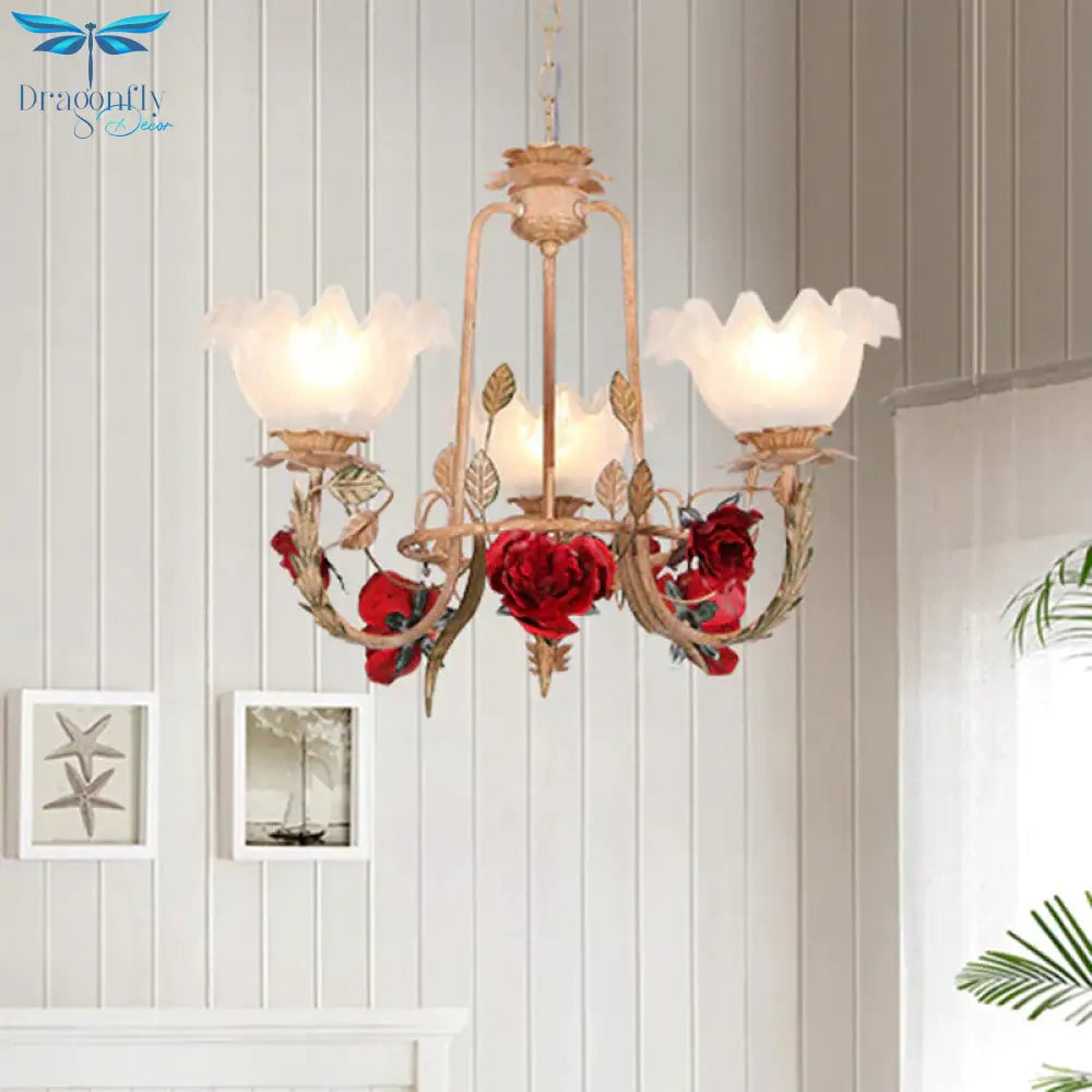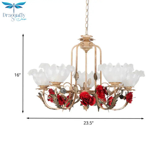 Brown Bloom Chandelier Light Fixture Countryside Metal 3/5/7 Lights Di