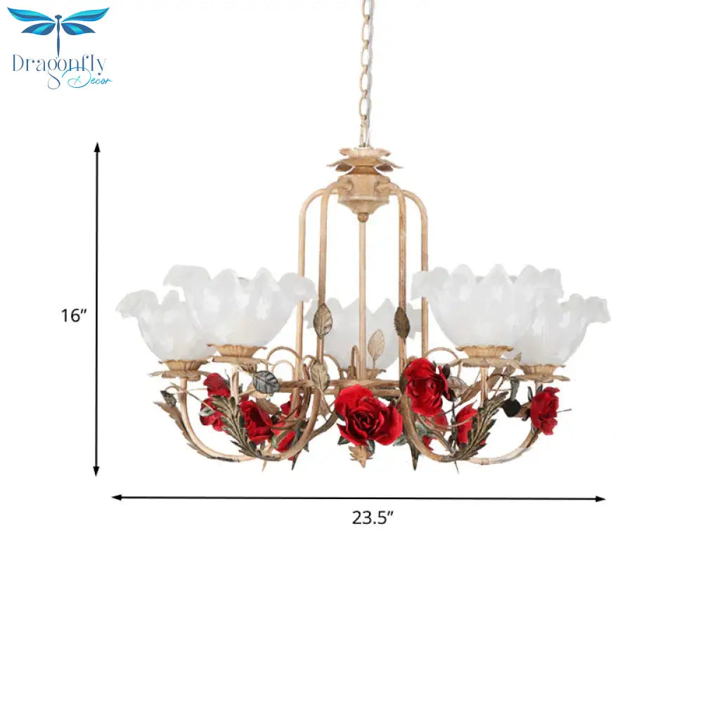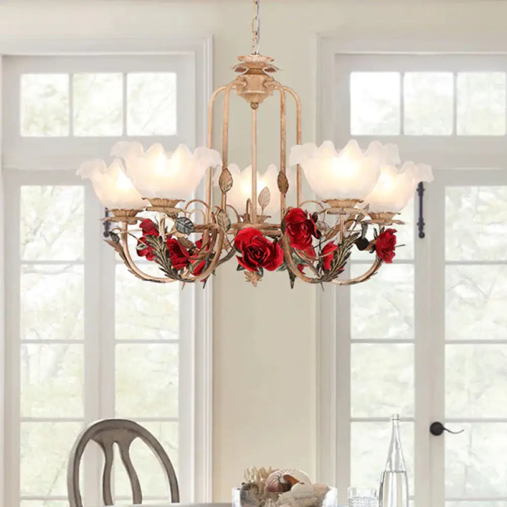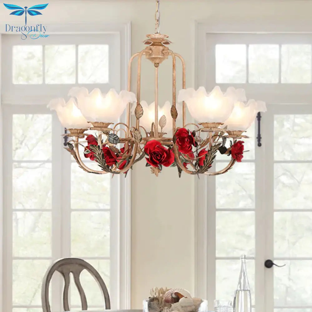 Brown Bloom Chandelier Light Fixture Countryside Metal 3/5/7 Lights Dining Room Hanging Pendant
