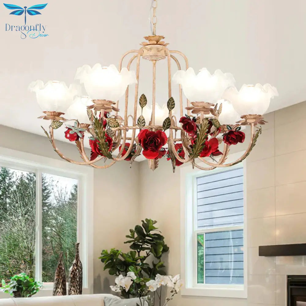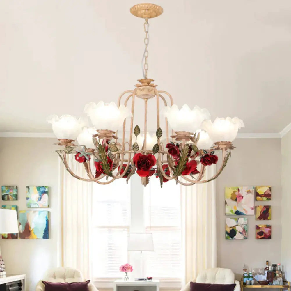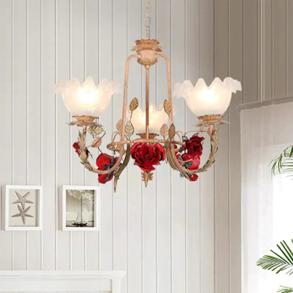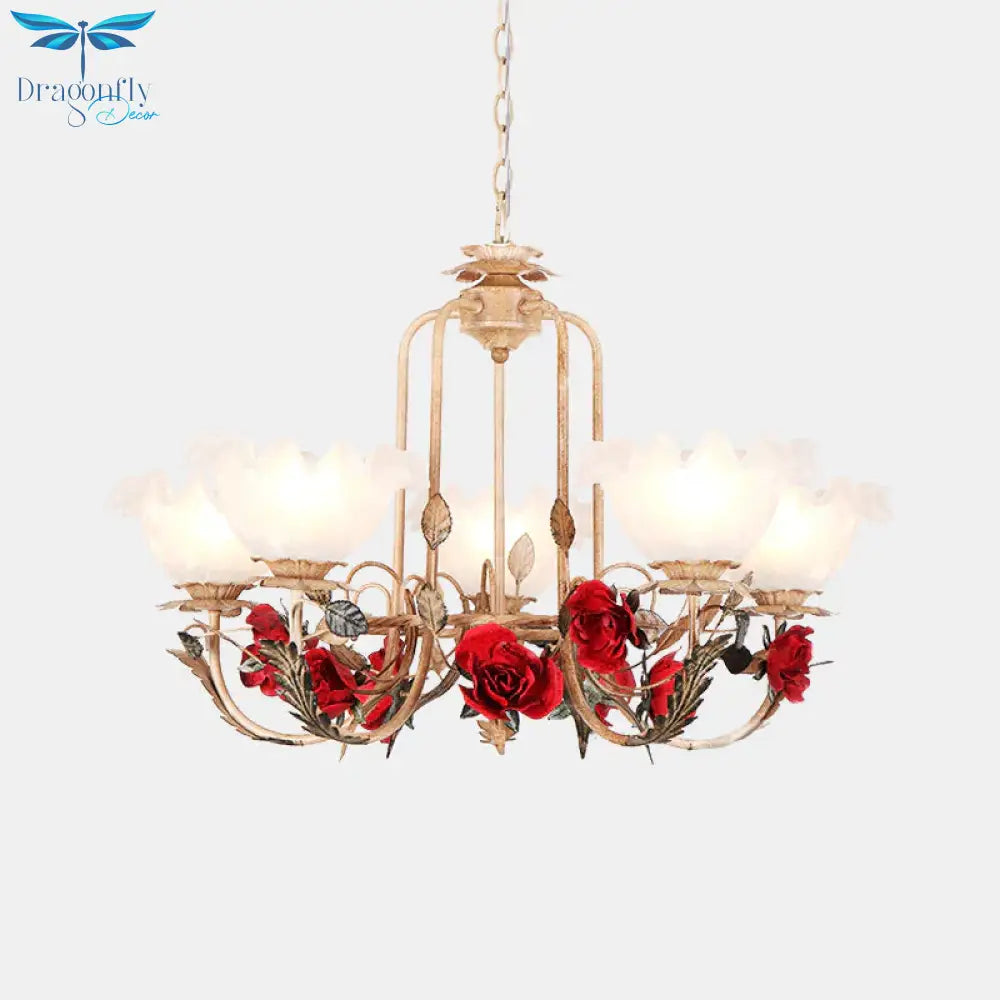 Brown Bloom Chandelier Light Fixture Countryside Metal 3/5/7 Lights Dining Room Hanging Pendant