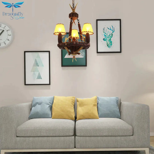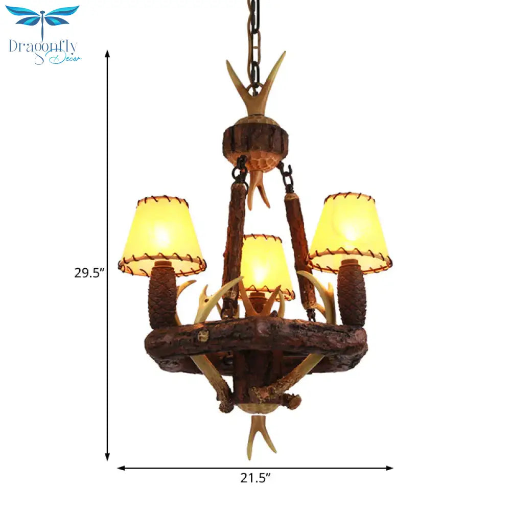Brown Cone Pendant Chandelier Farmhouse Fabric 3-Head Living Room Hang