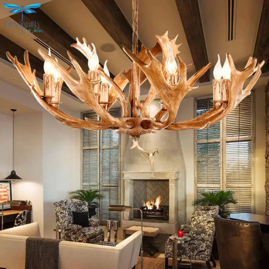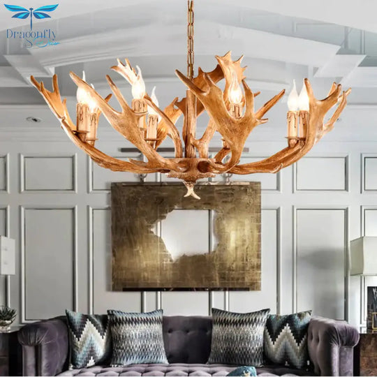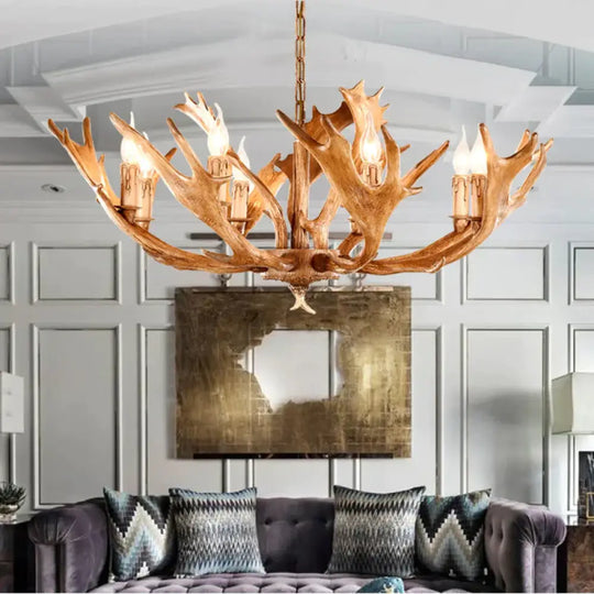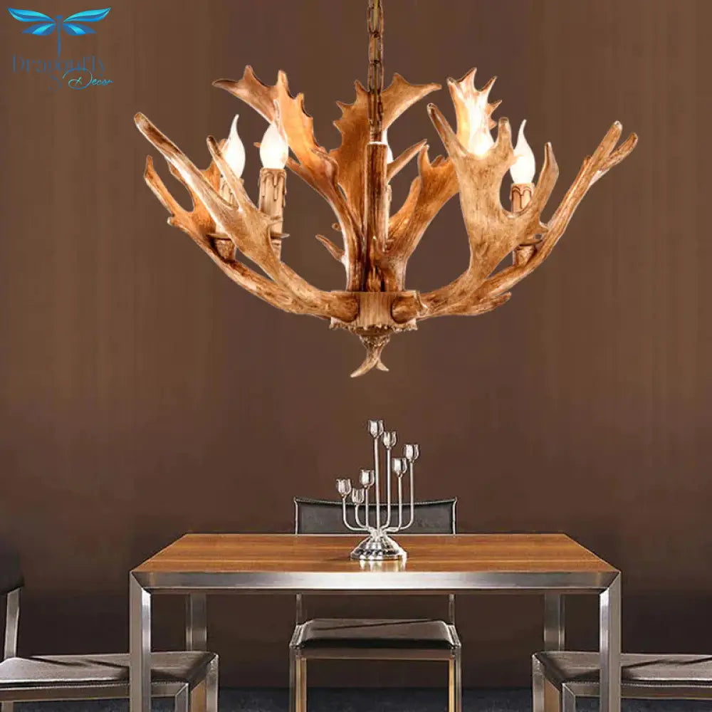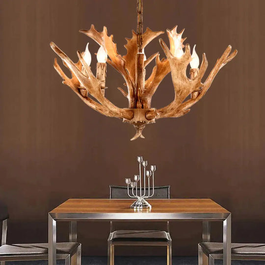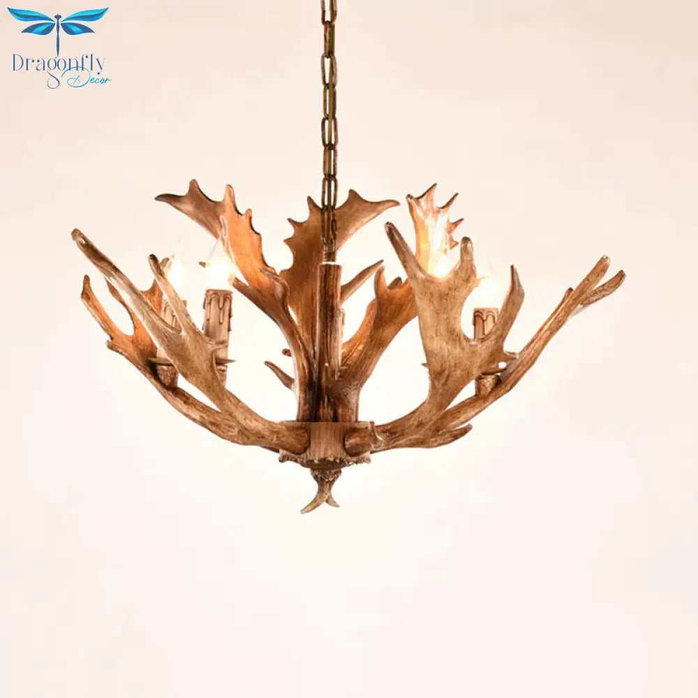 Brown Sputnik Chandelier Lighting Farmhouse Resin 5/8 Heads Living Roo