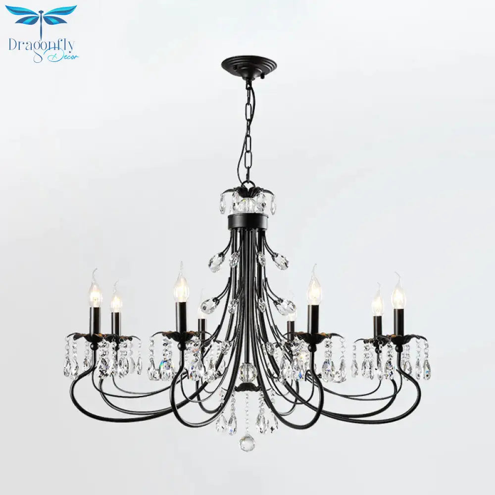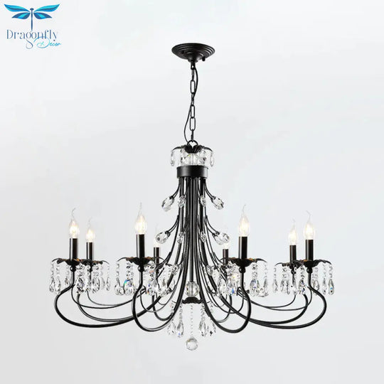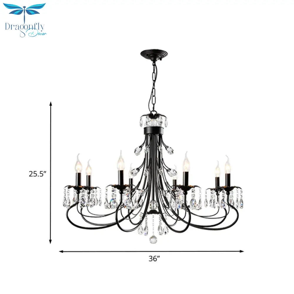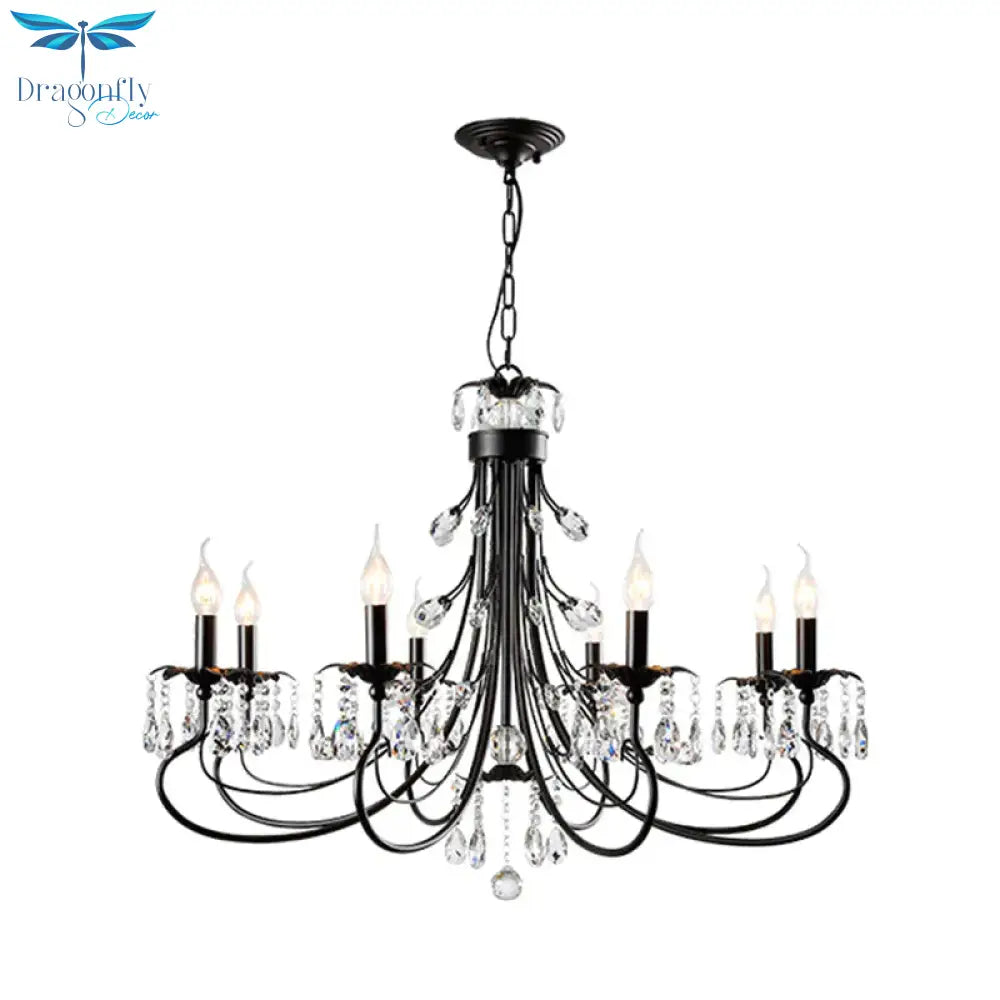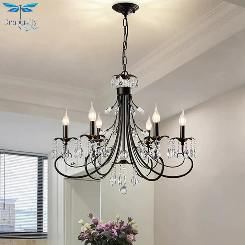 Candle Living Room Pendant Traditionalism Beveled Crystal Prism 6/8 Bulbs Black Chandelier