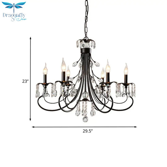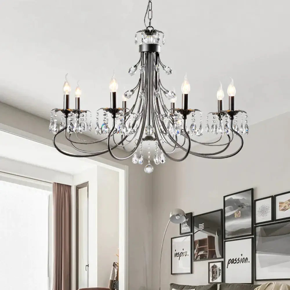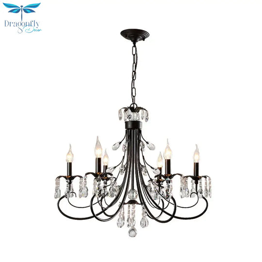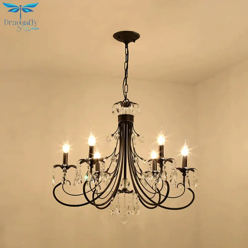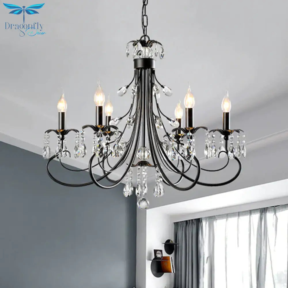Candle Living Room Pendant Traditionalism Beveled Crystal Prism 6/8 Bulbs Black Chandelier
