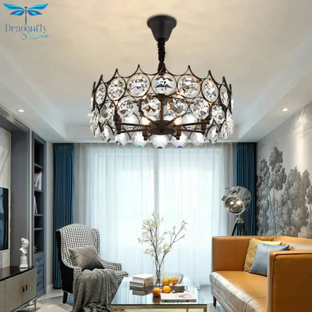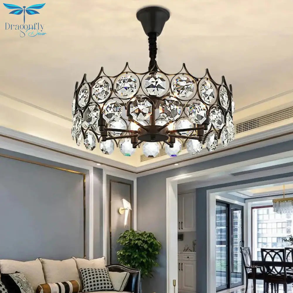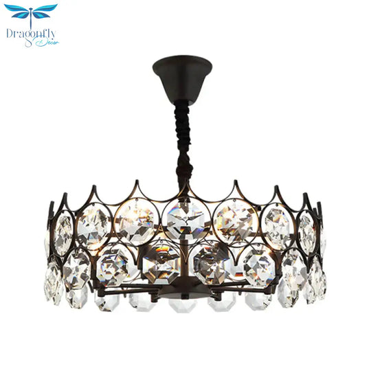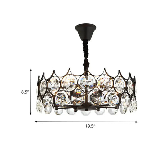Circle Beveled Crystal Chandelier Traditional 6 Lights Living Room Hanging Ceiling Light in Black