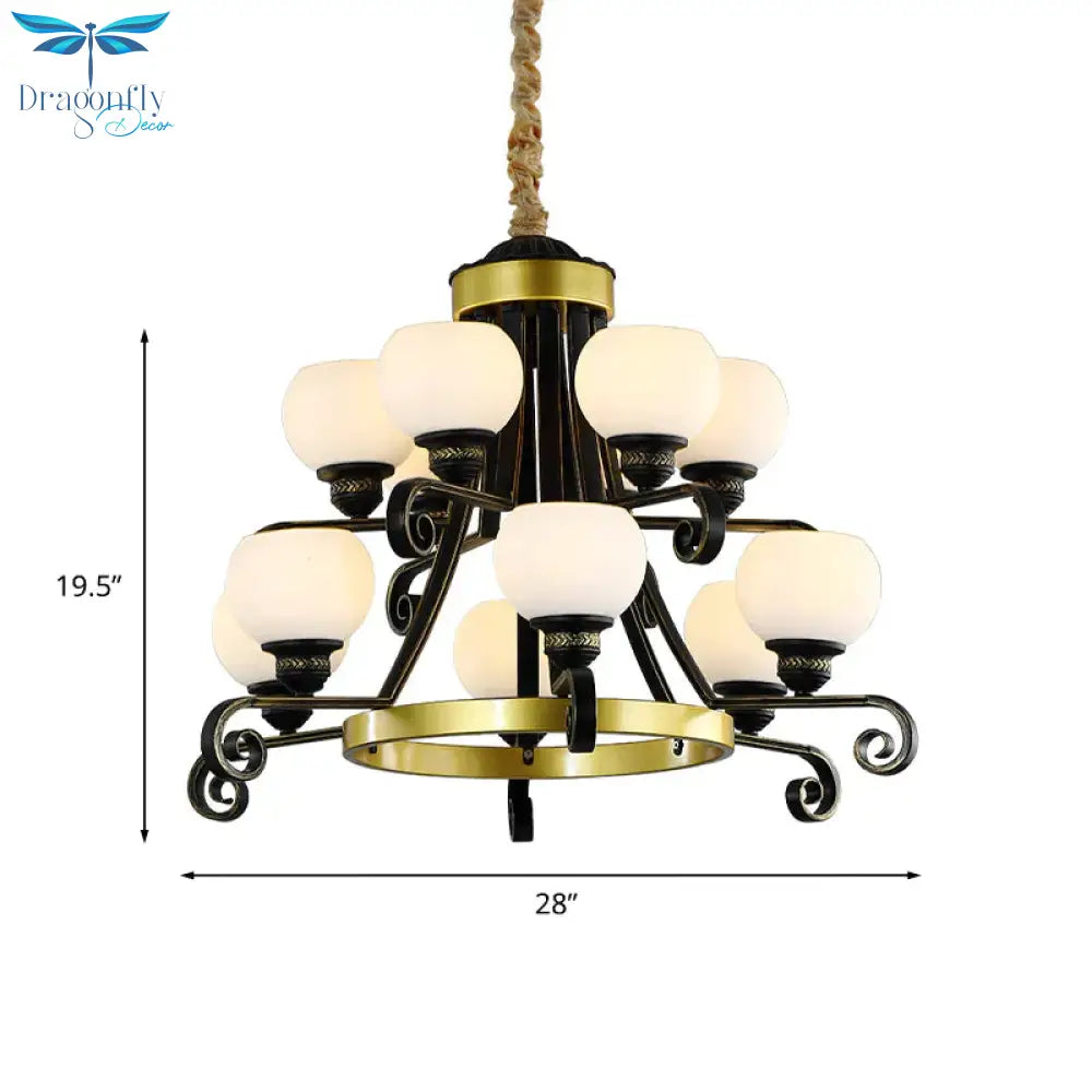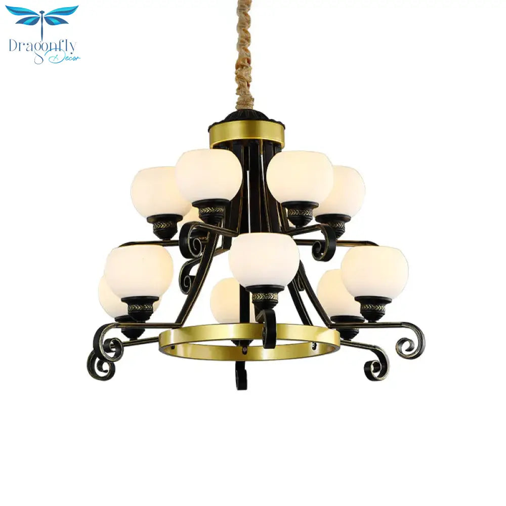 Classic Black Frosted 12 Bulbs 2-Tier Glass Ceiling Chandelier for Liv