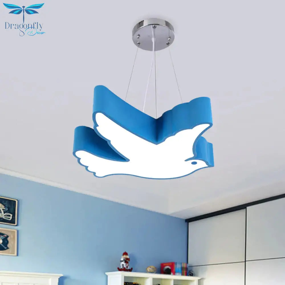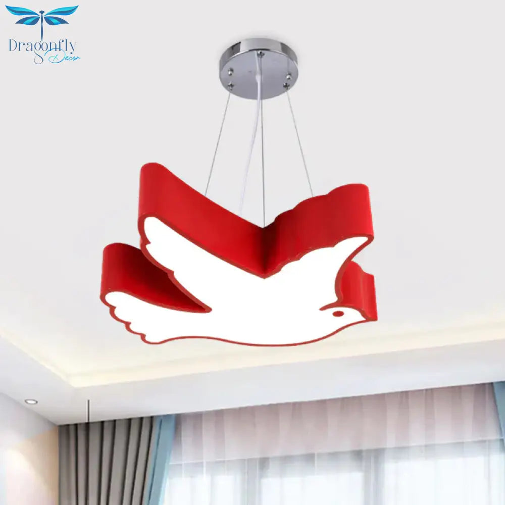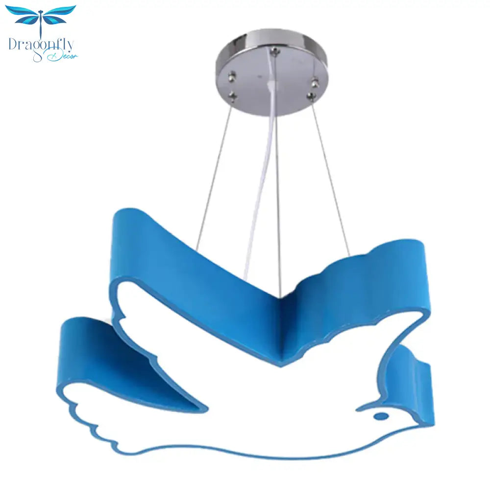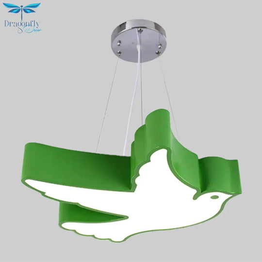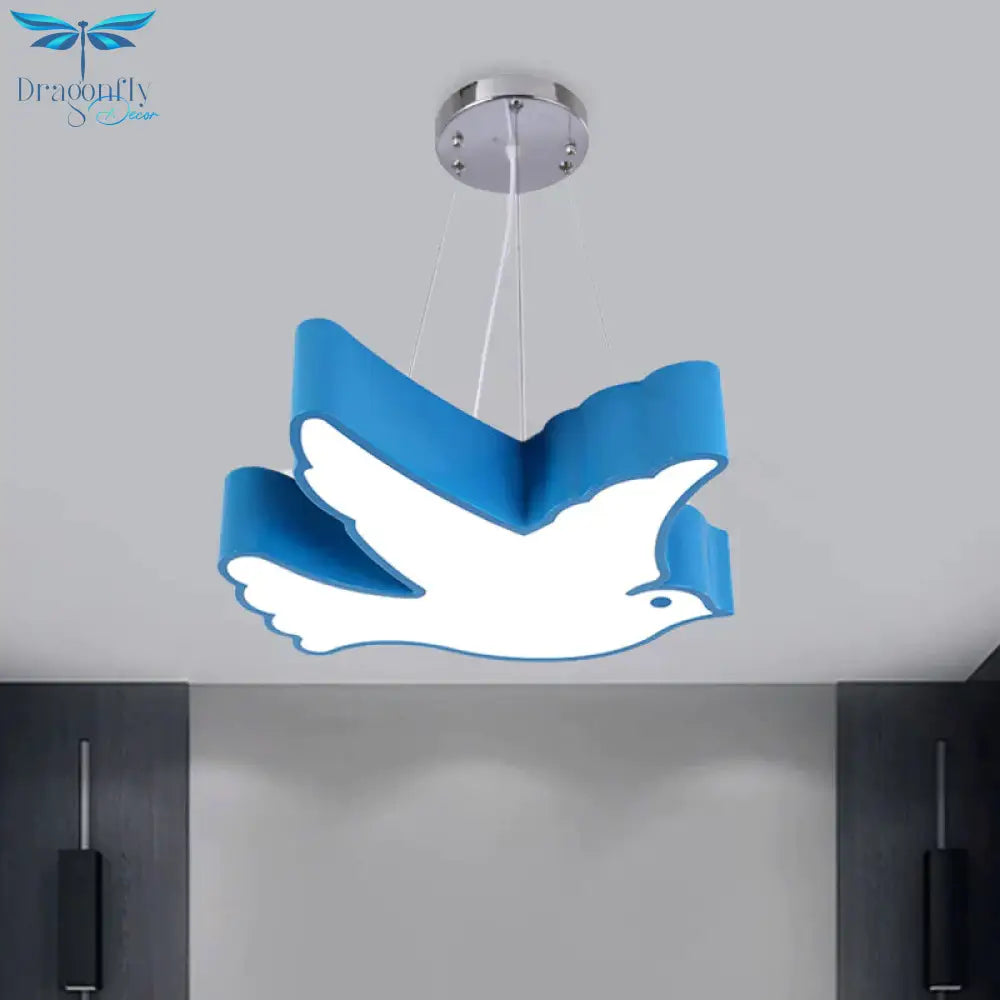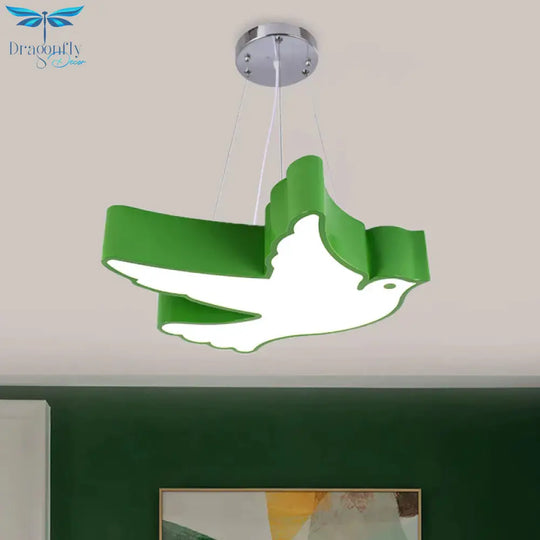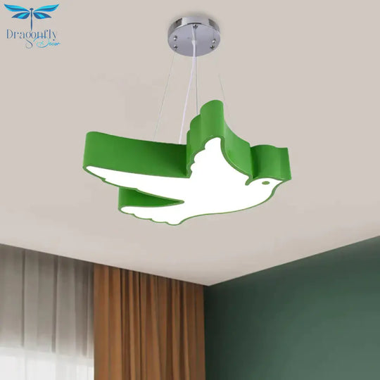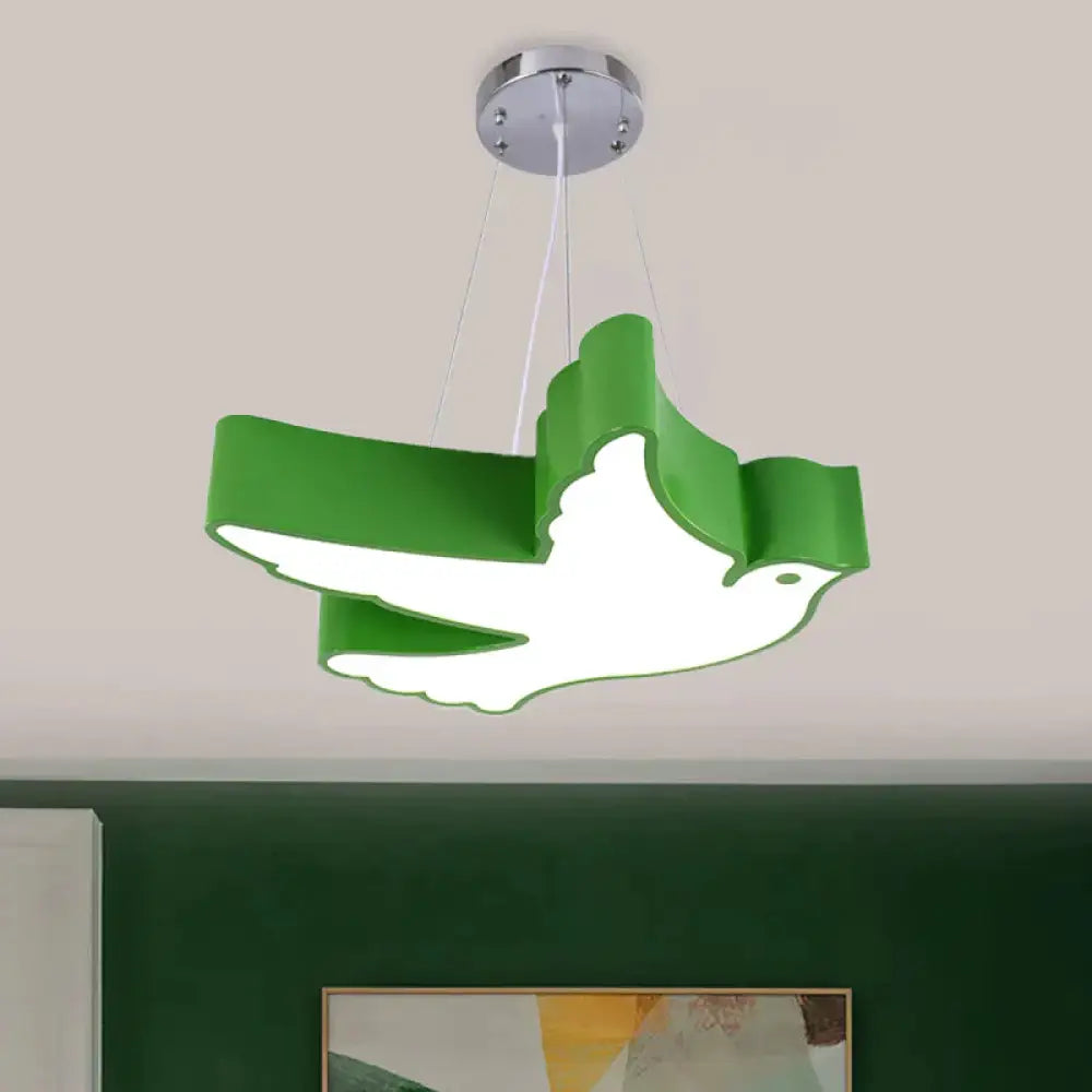 Contemporary LED Pendant Chandelier Blue/Green/Red Flying Bird Suspended Lighting Fixture with Acrylic Shade