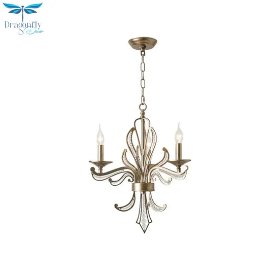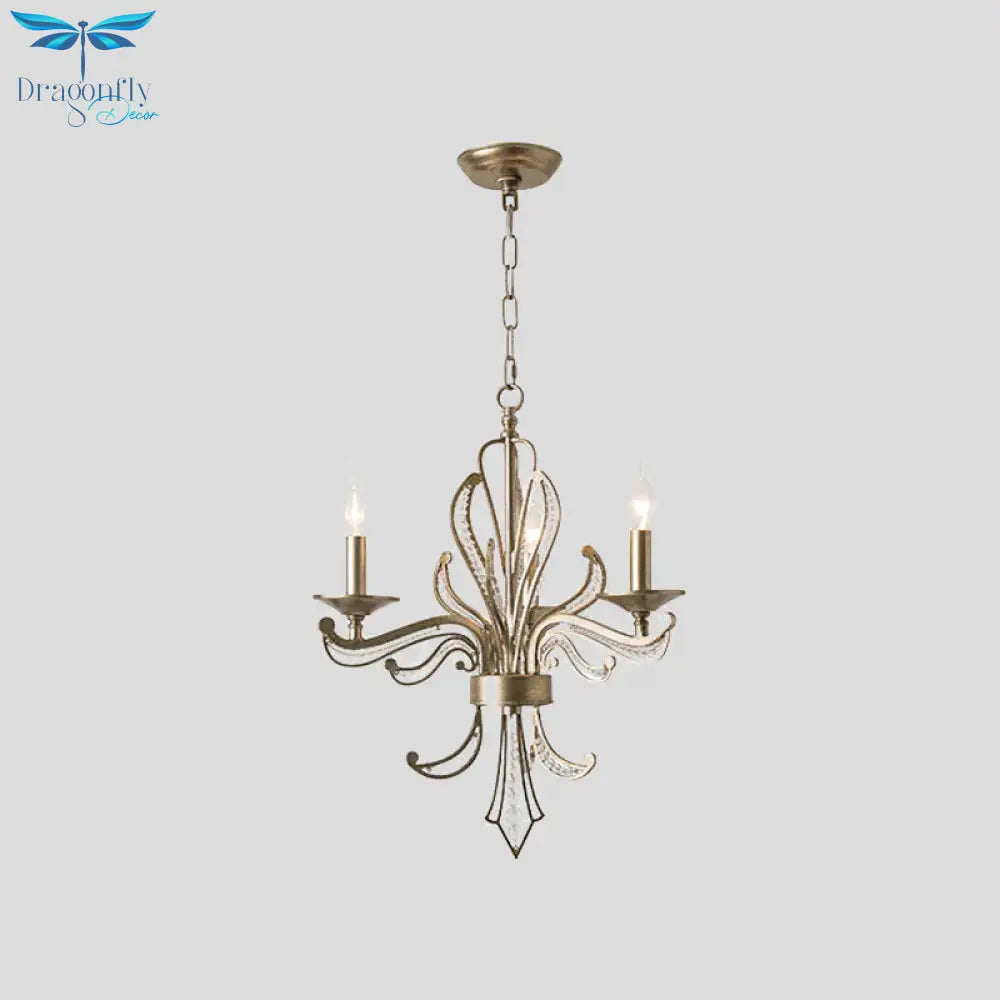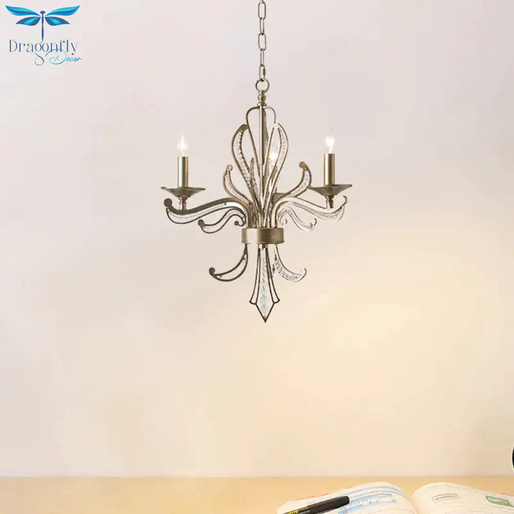 Crystal Beaded Antiqued Silver Drop Lamp Foliage Candelabrum 3 Heads Rural Chandelier