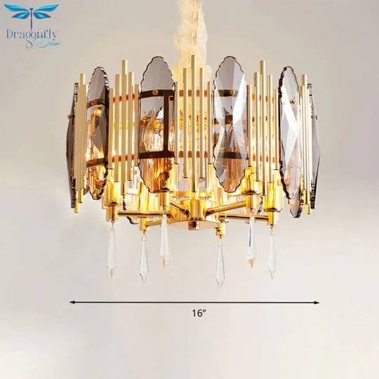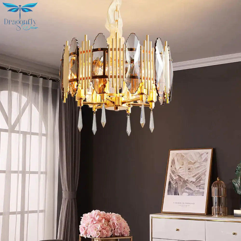 Crystal Block Gold Chandelier Light Fixture Round 6 Heads Traditional