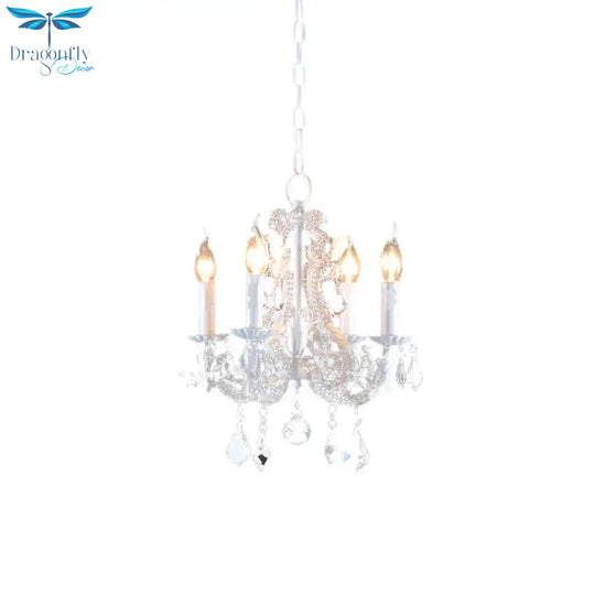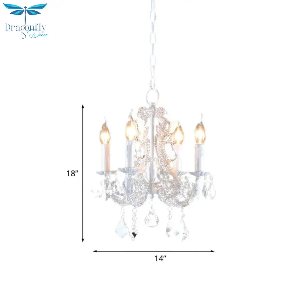 Crystal Coated Candlestick Chandelier Rustic 4-Head Restaurant Pendant Ceiling Light in White