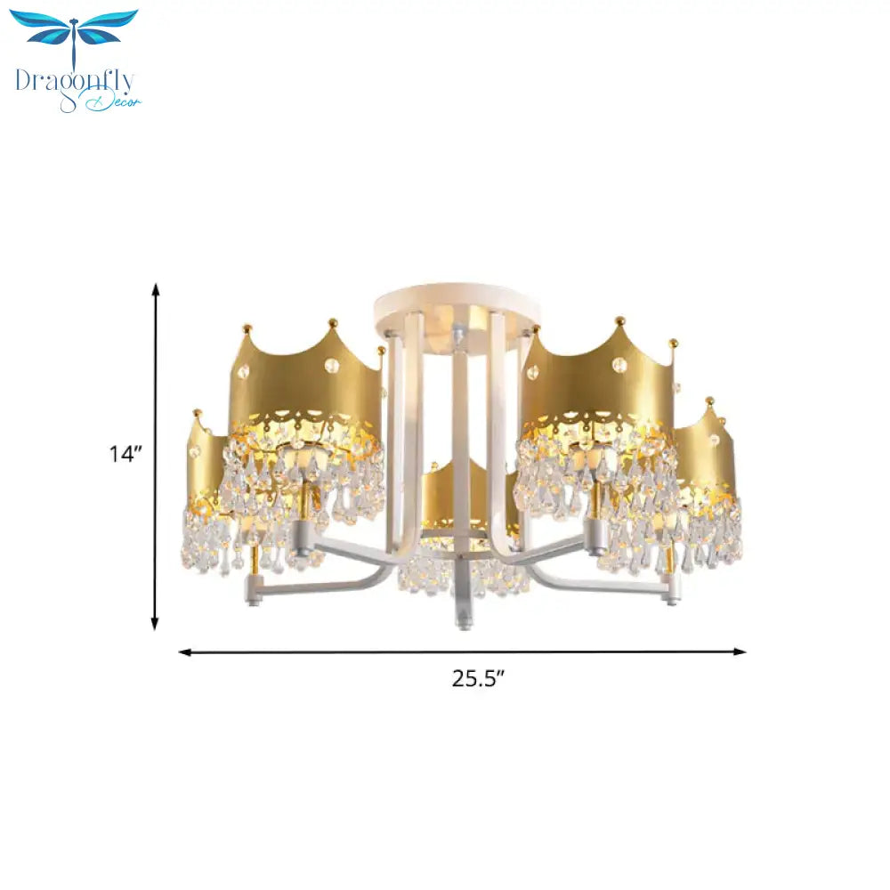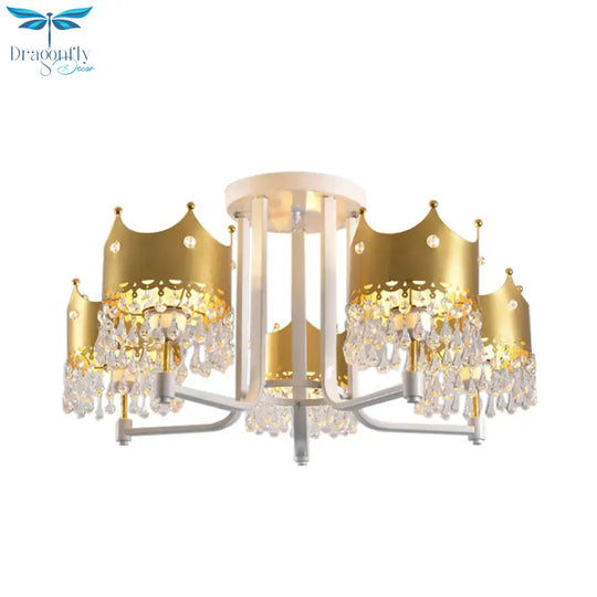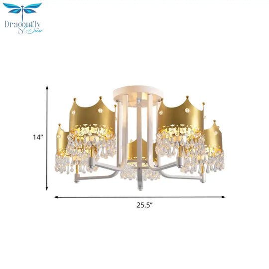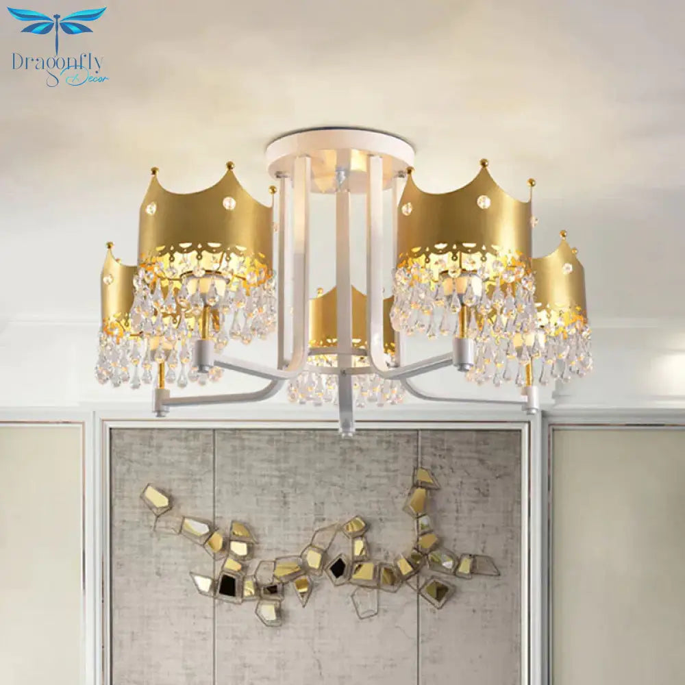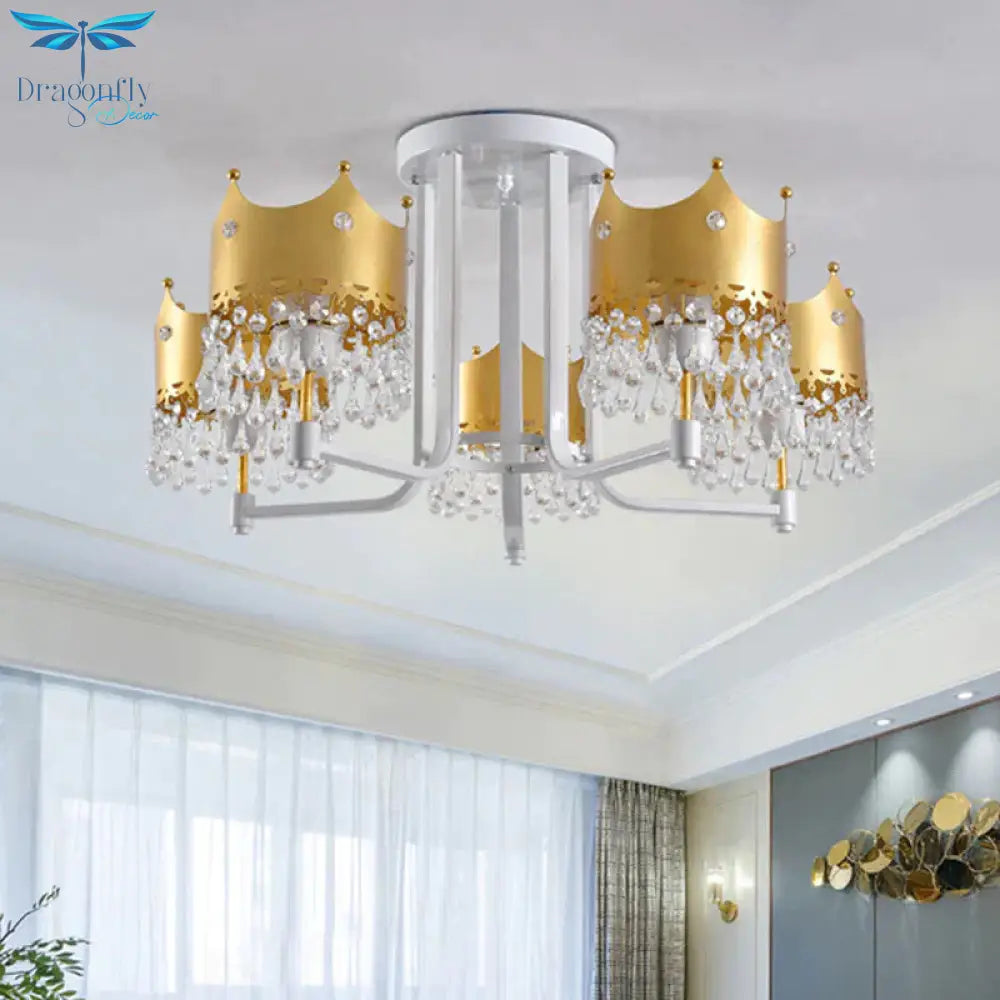 Crystal Crown Ceiling Lamp Modern 5 Bulbs Gold Chandelier Pendant Light for Living Room
