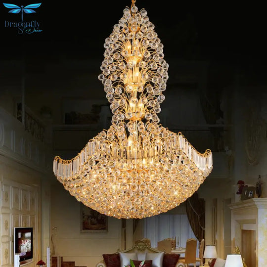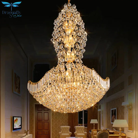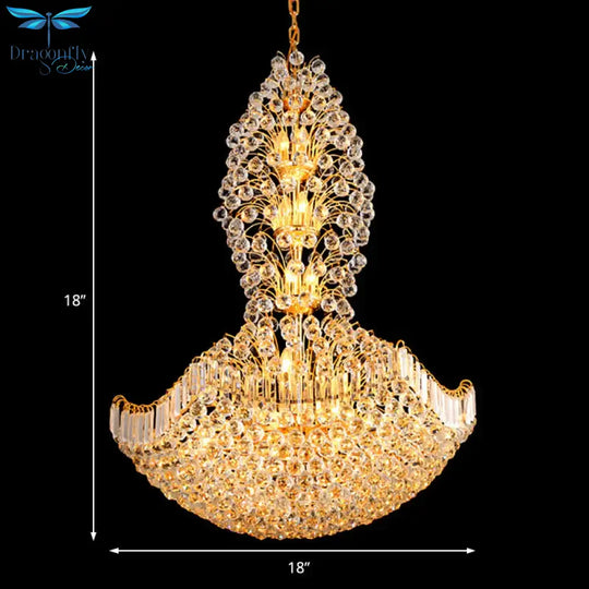 Crystal Dome Hanging Ceiling Light Contemporary 9 Lights Gold Chandeli