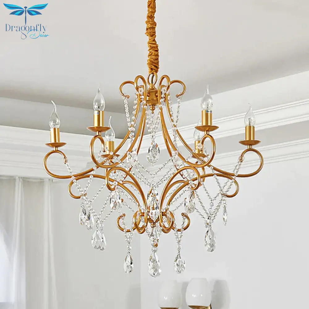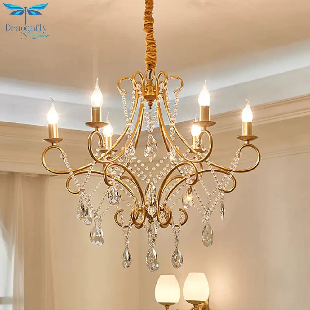 Crystal Stands Gold Suspension Lighting Raindrop 6 Heads Traditional Chandelier Light Fixture