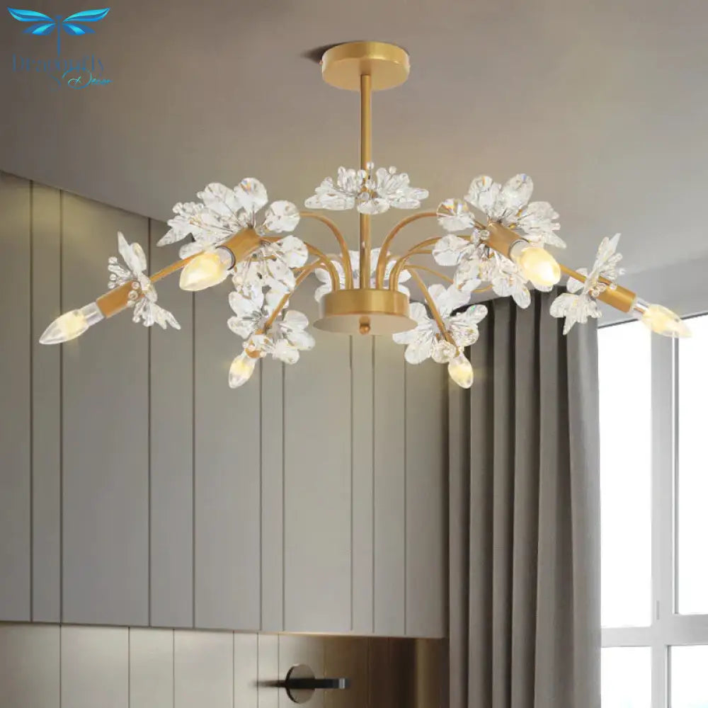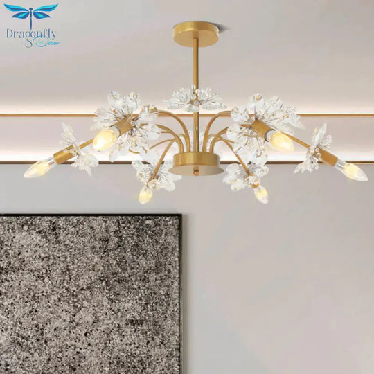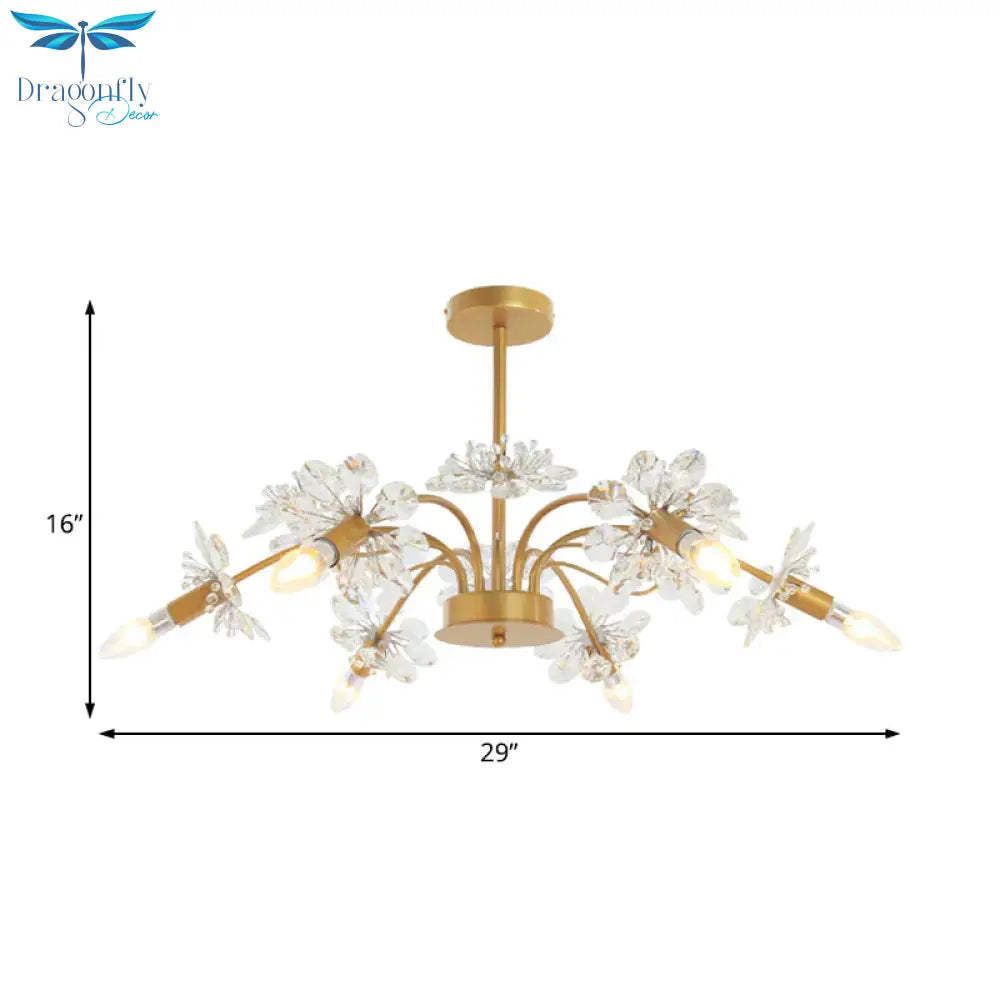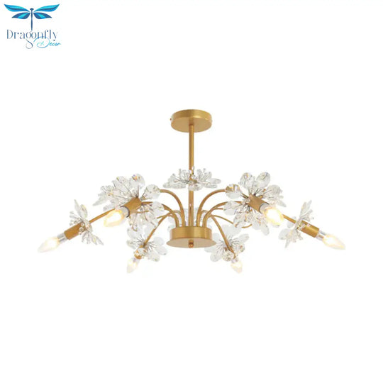 Curved Arm Metal Chandelier Light Traditional 6 Lights Living Room Hanging Lamp with Clear/Cream Crystal Accent