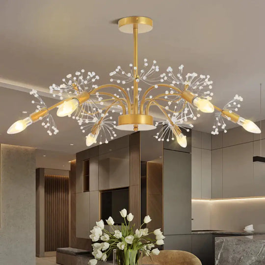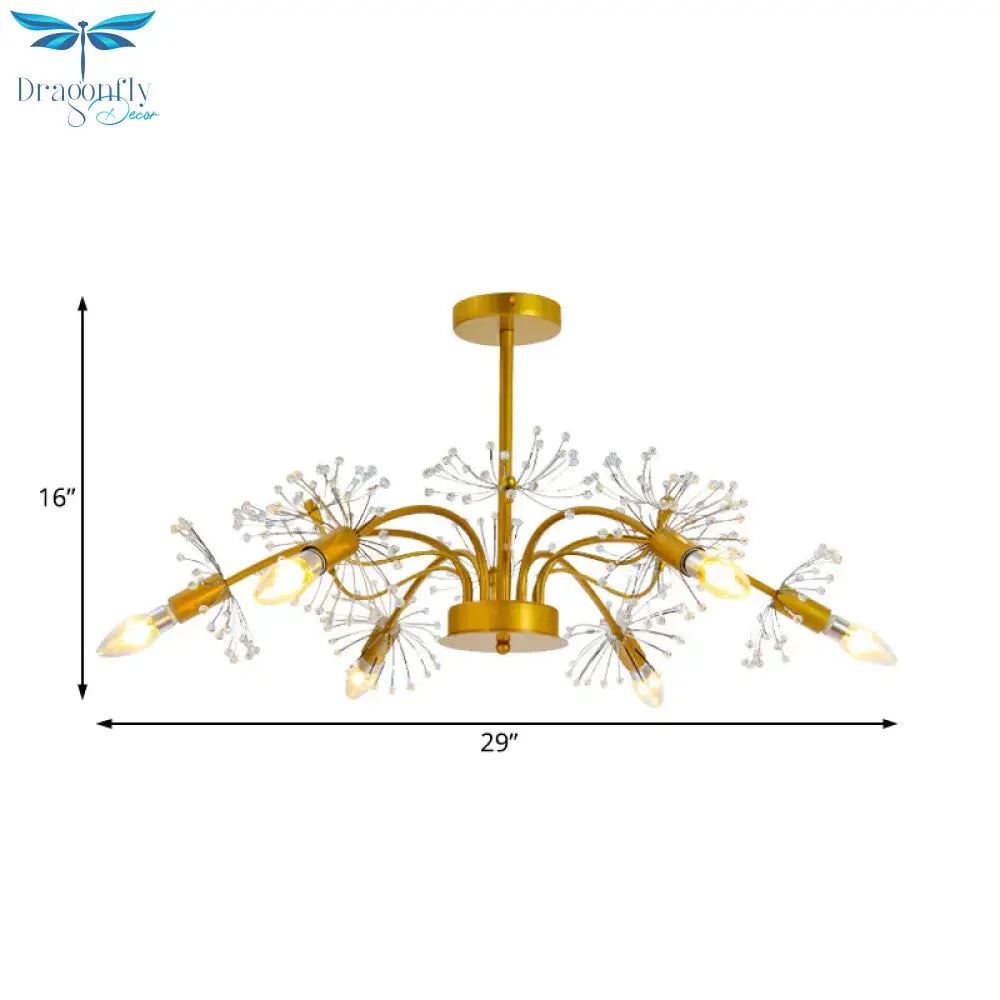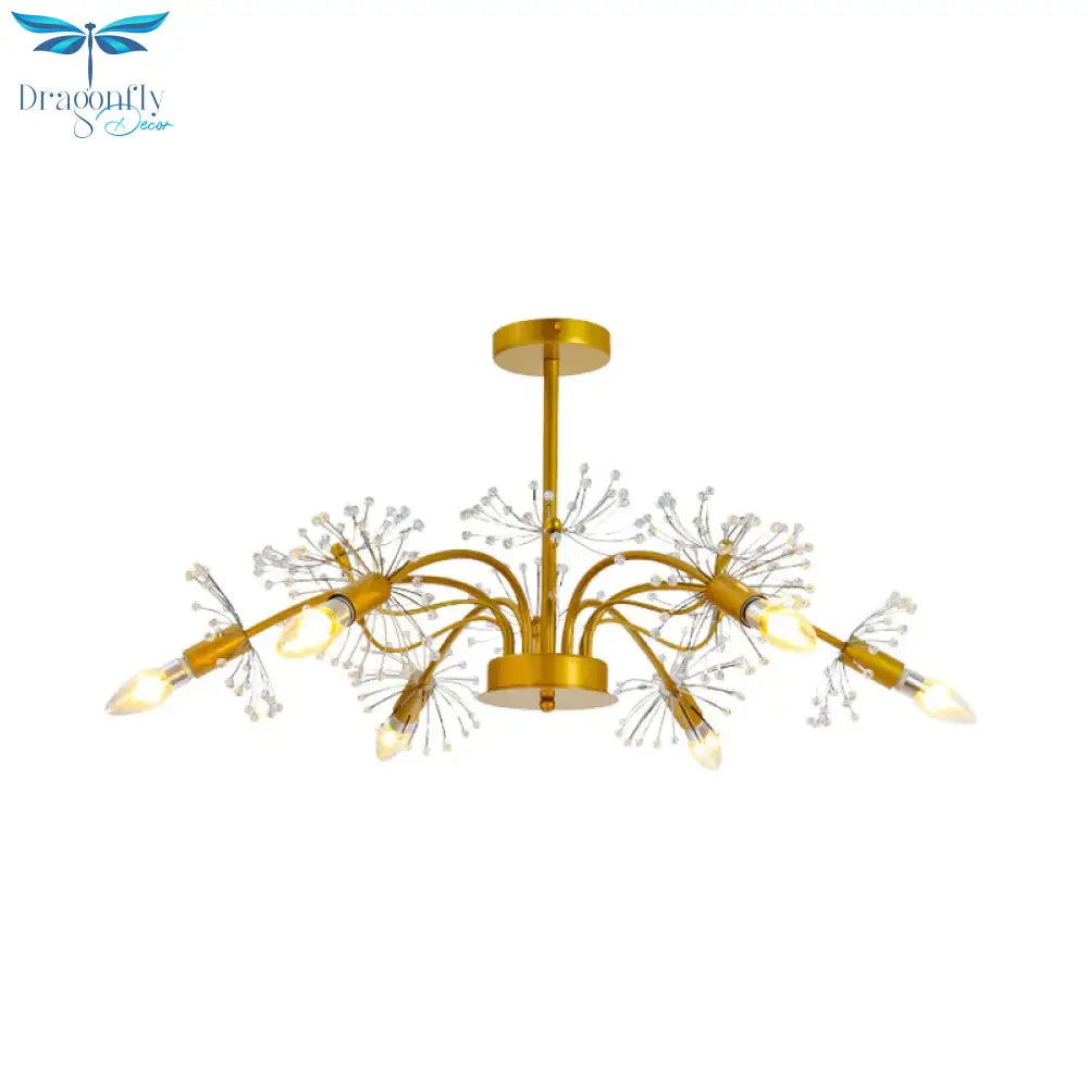 Curved Arm Metal Chandelier Light Traditional 6 Lights Living Room Han