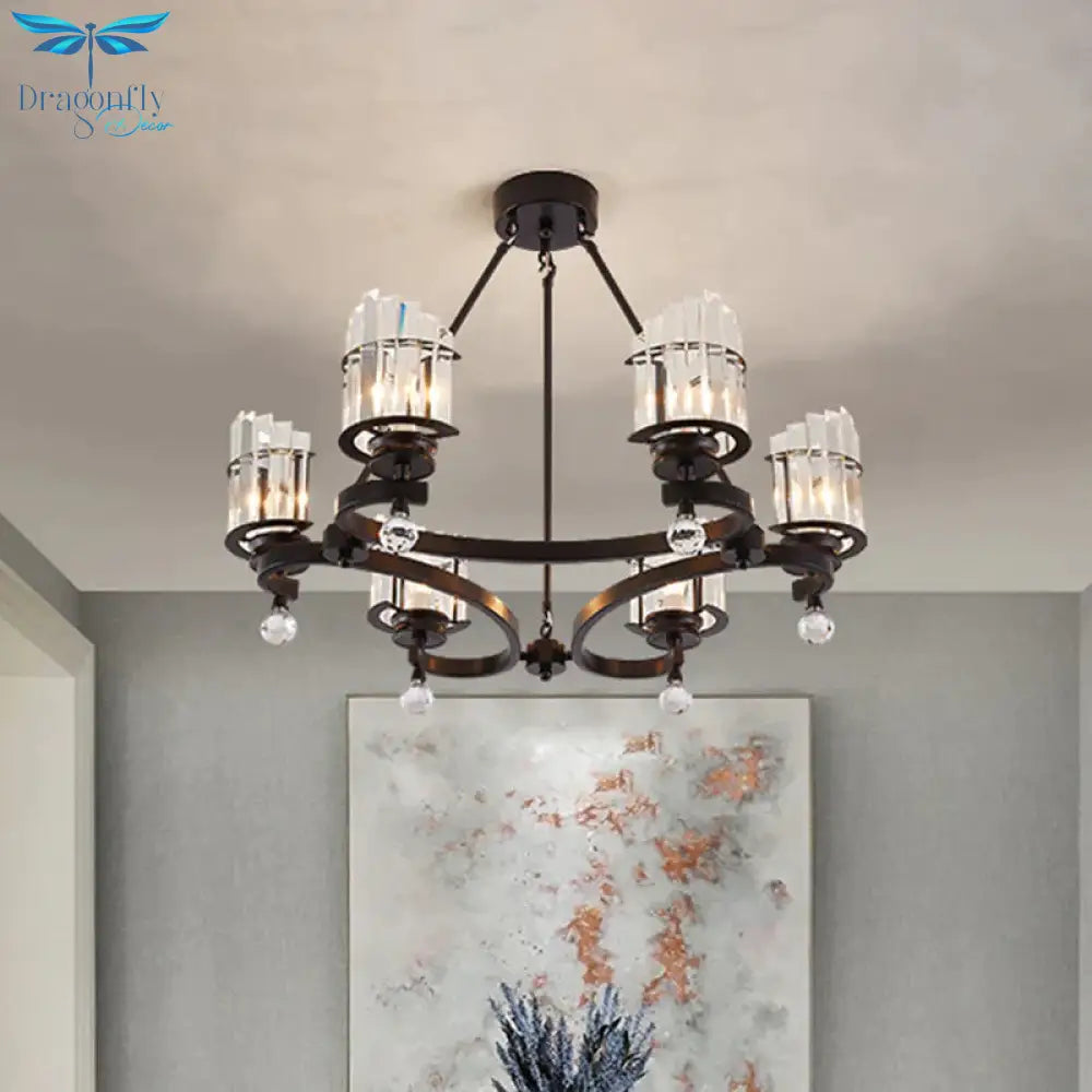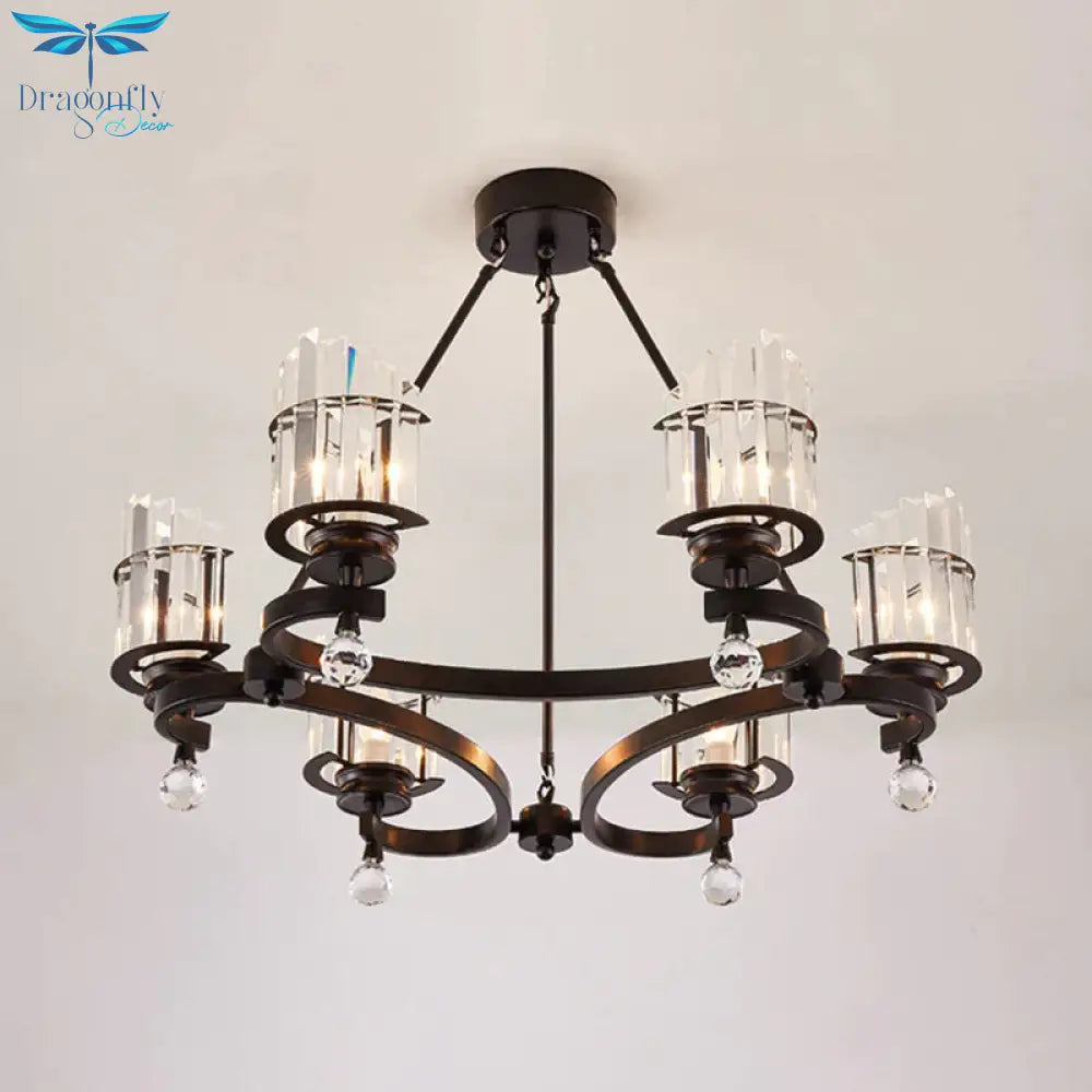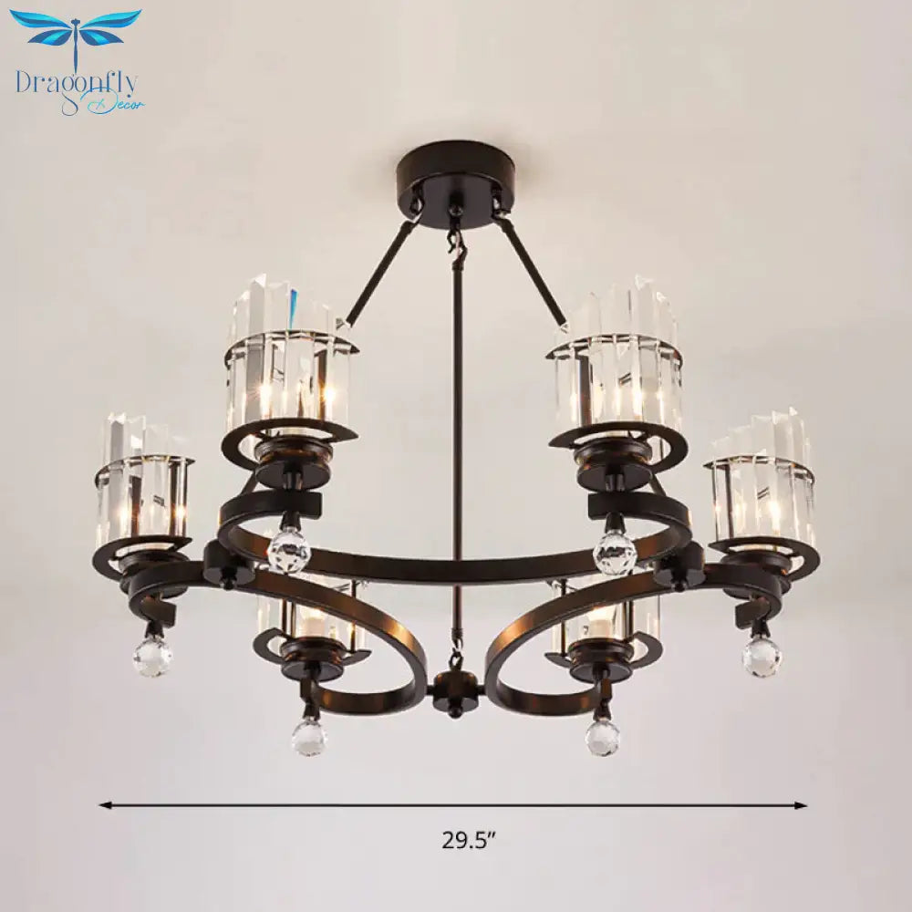 Cylinder Tri-Sided Crystal Rod Drop Lamp Contemporary 6 Heads Bedroom Chandelier Lighting Fixture