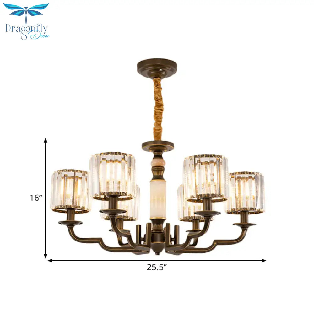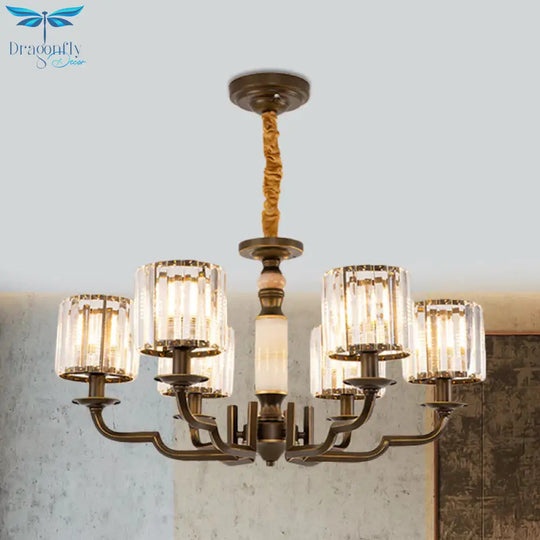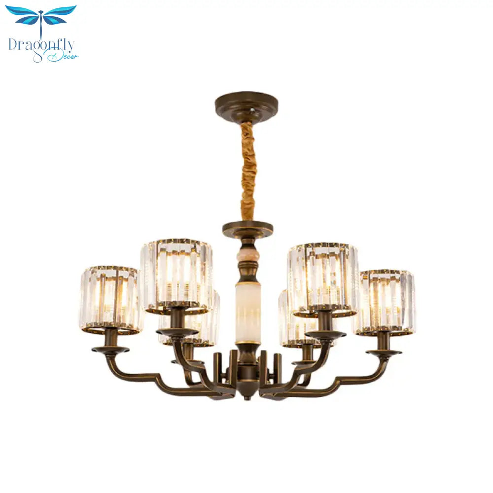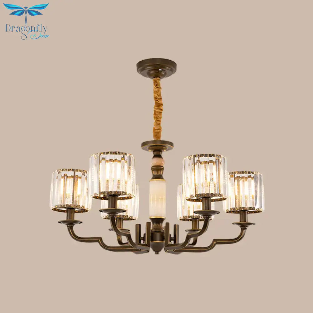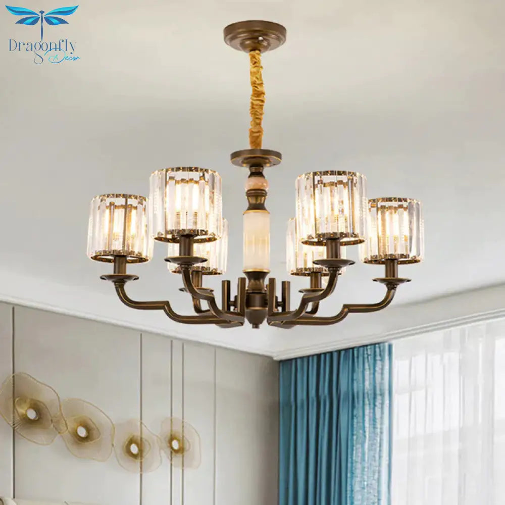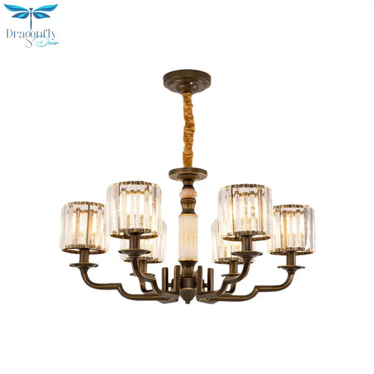 Cylindrical Bedchamber Hanging Fixture Traditional Crystal 3/6 Bulbs B