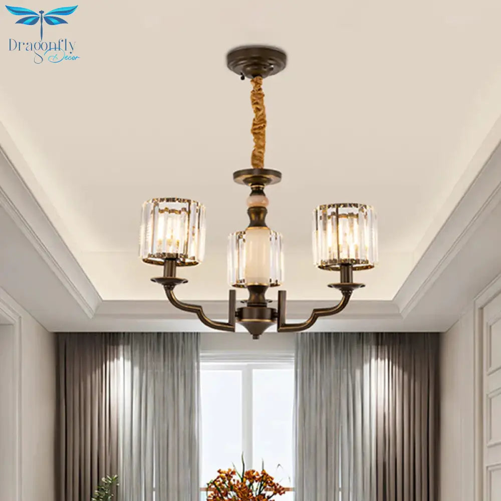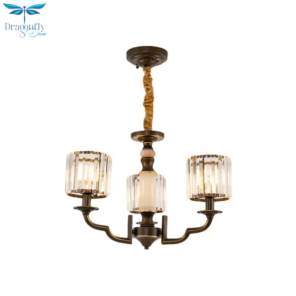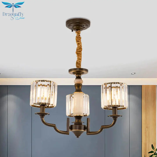 Cylindrical Bedchamber Hanging Fixture Traditional Crystal 3/6 Bulbs Black Ceiling Chandelier Pendant