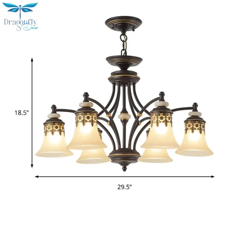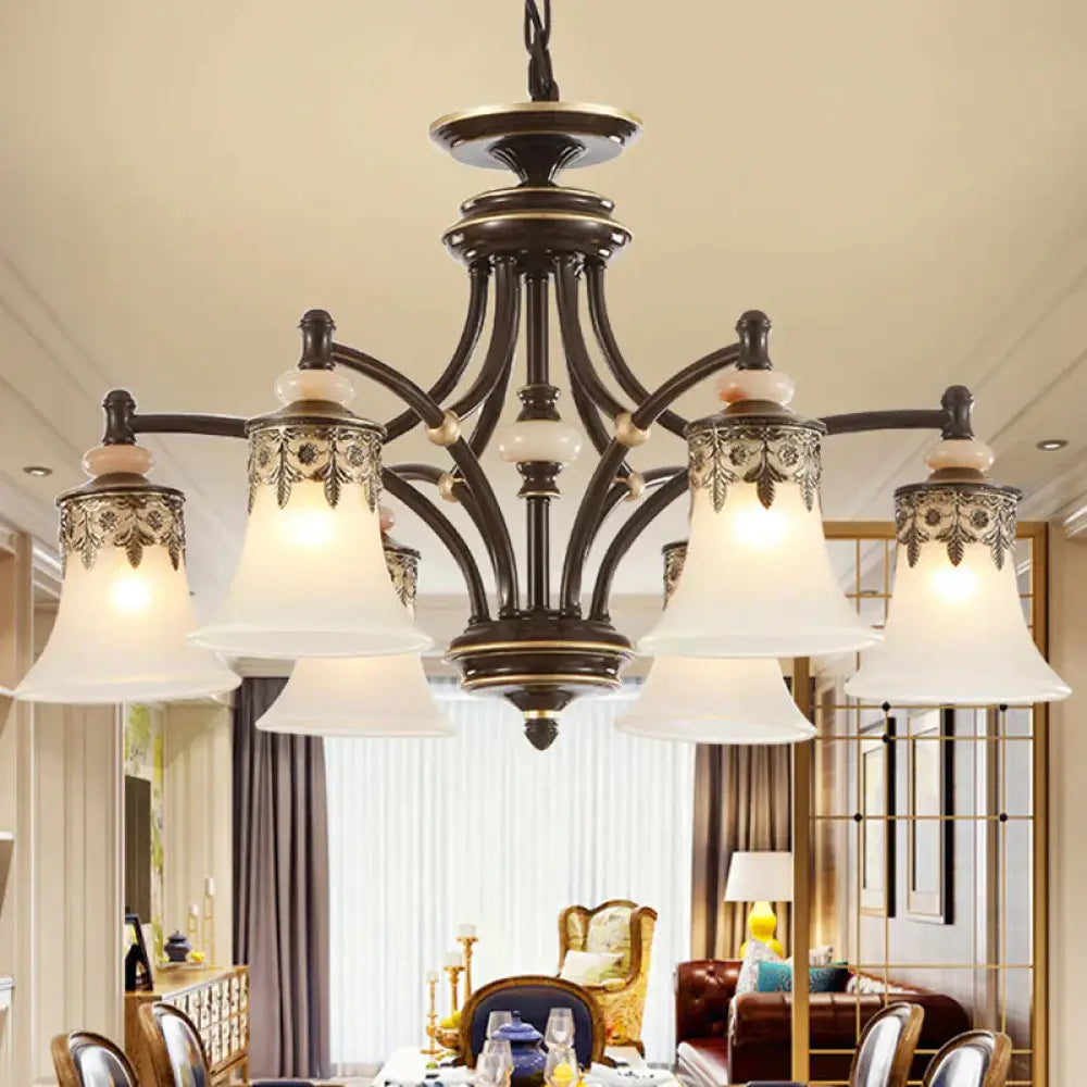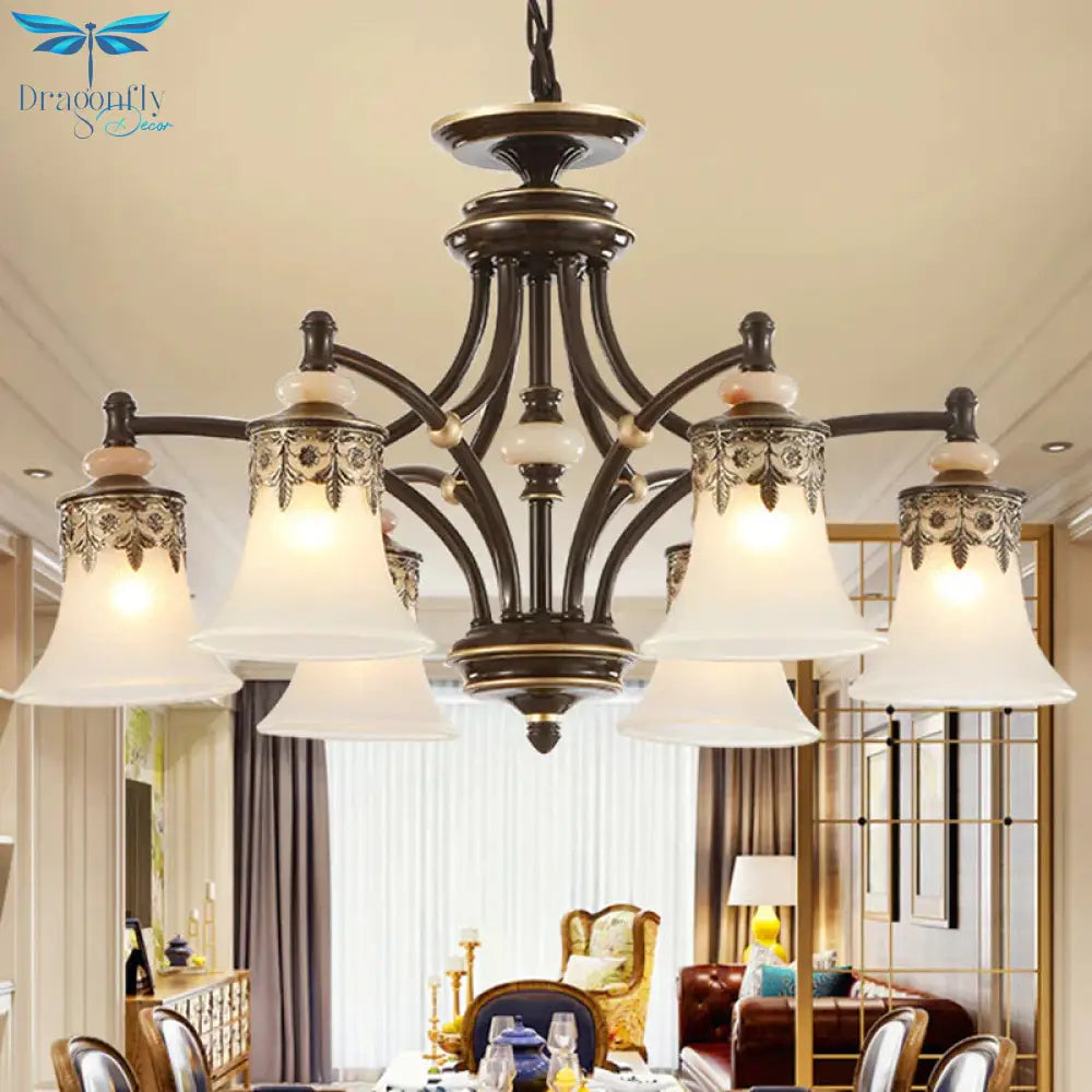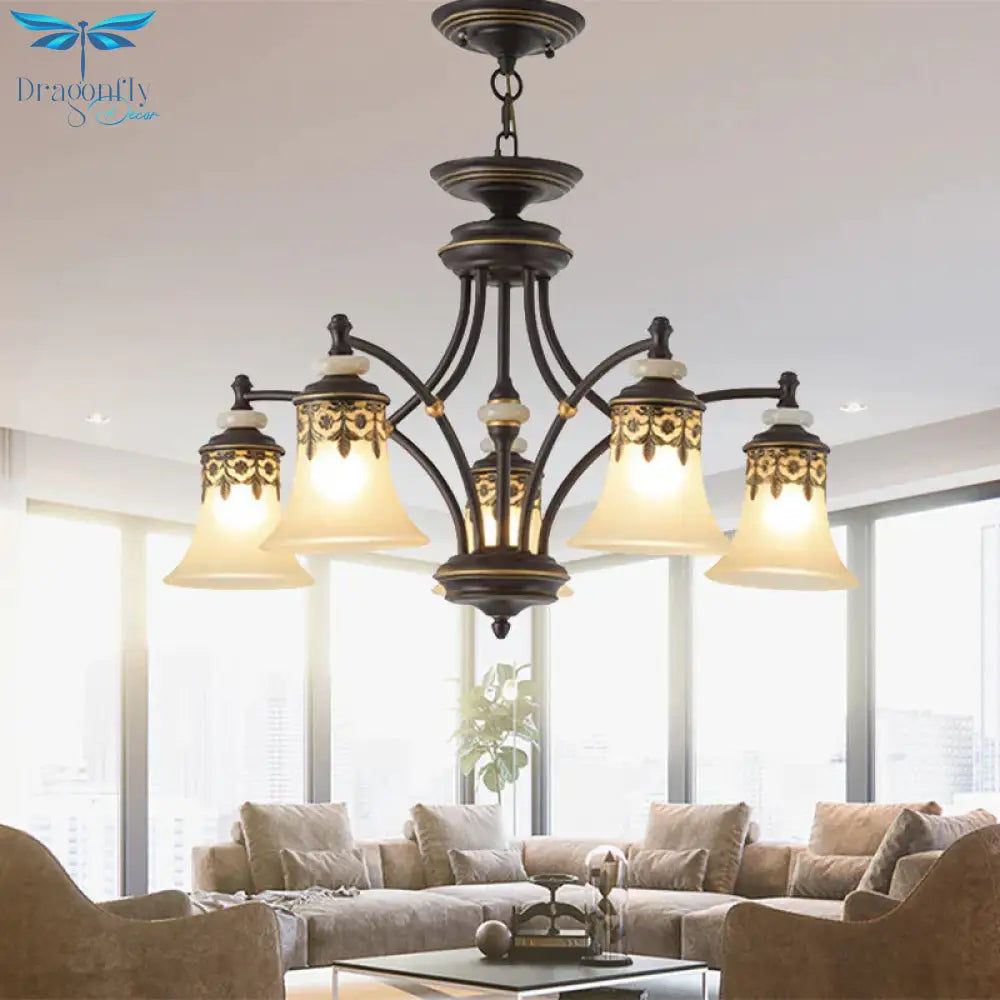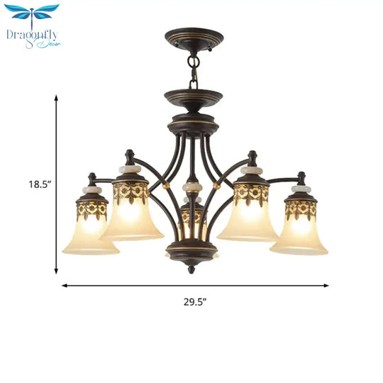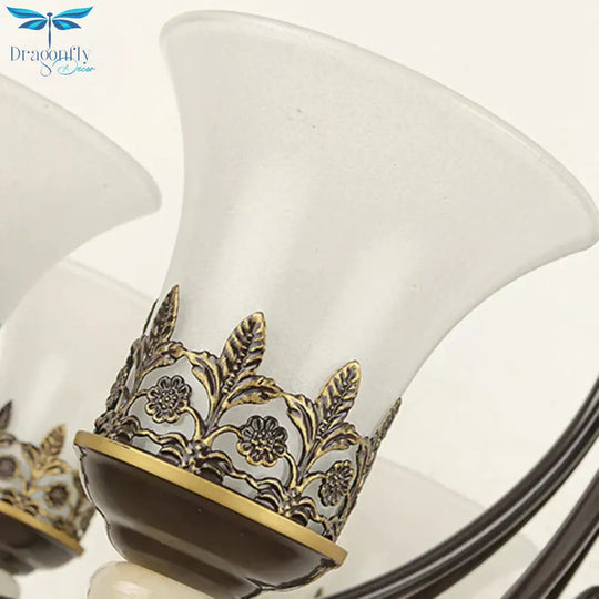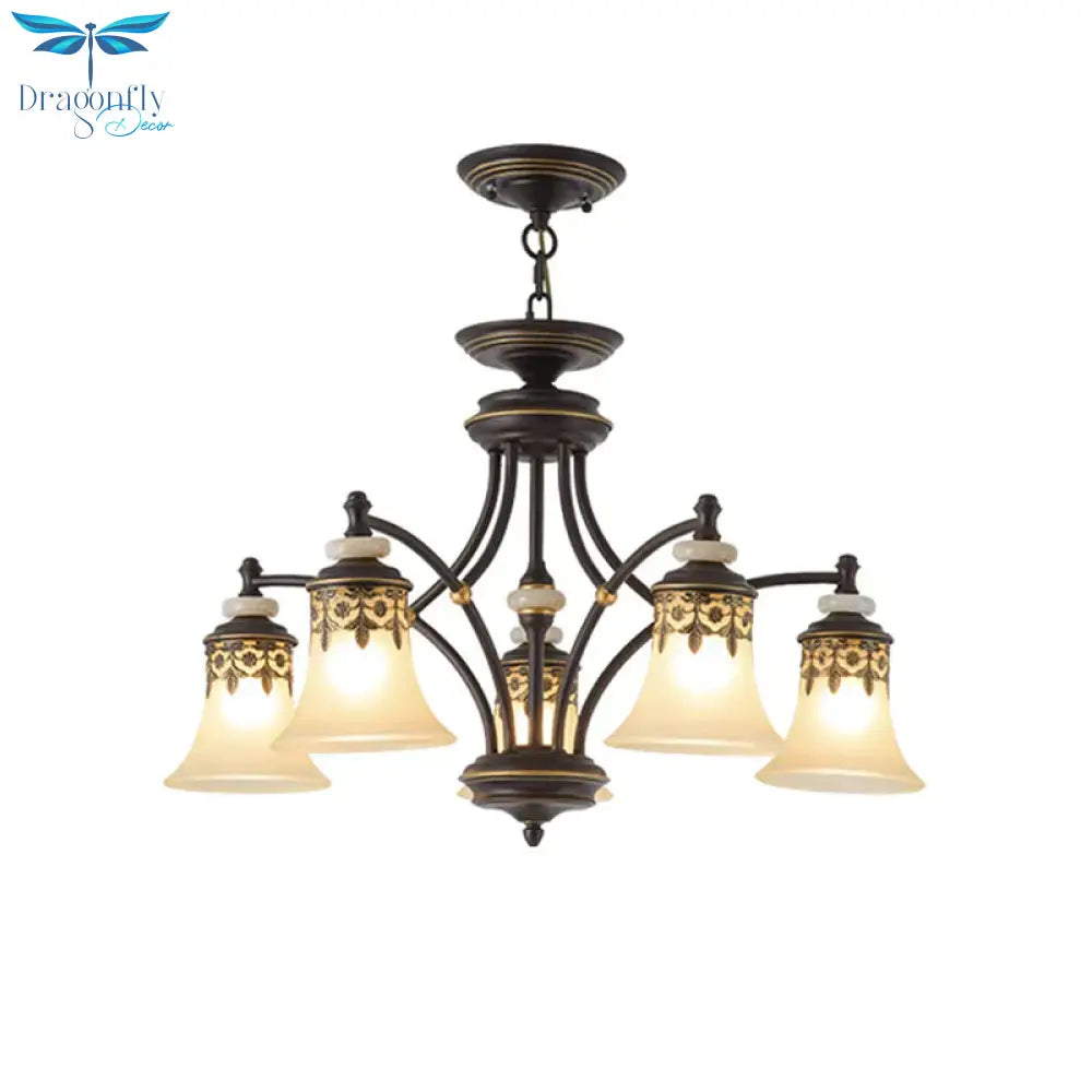 Deep Tan Bell Pendant Lighting Traditional Frosted Glass 3/5/6 Lights Living Room Chandelier
