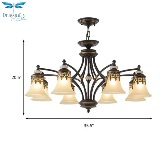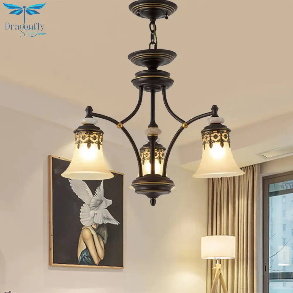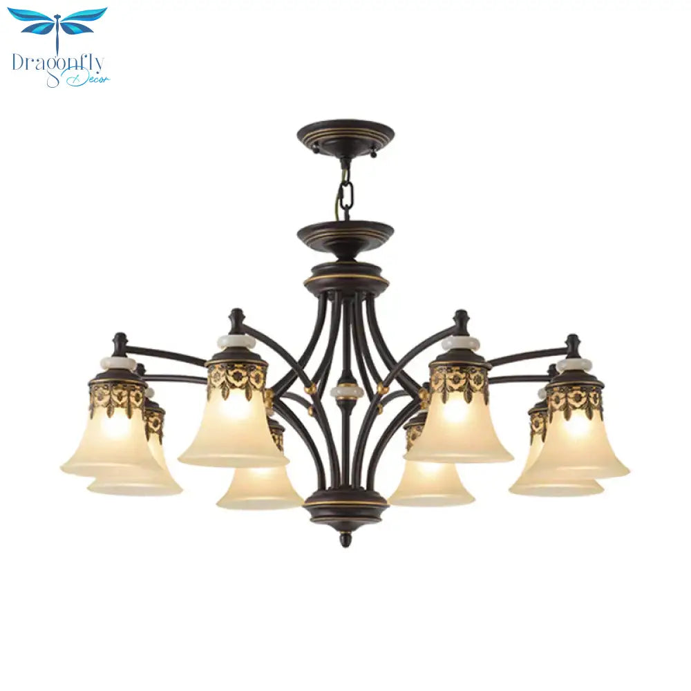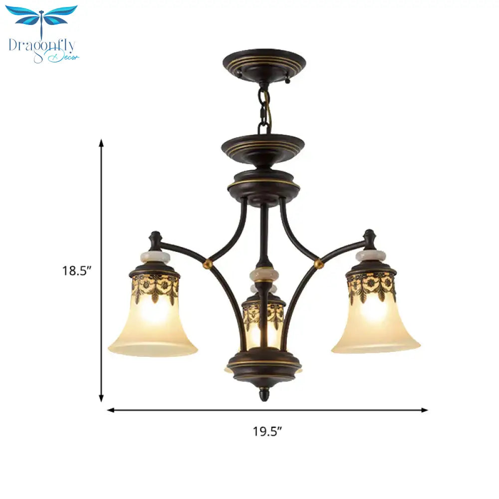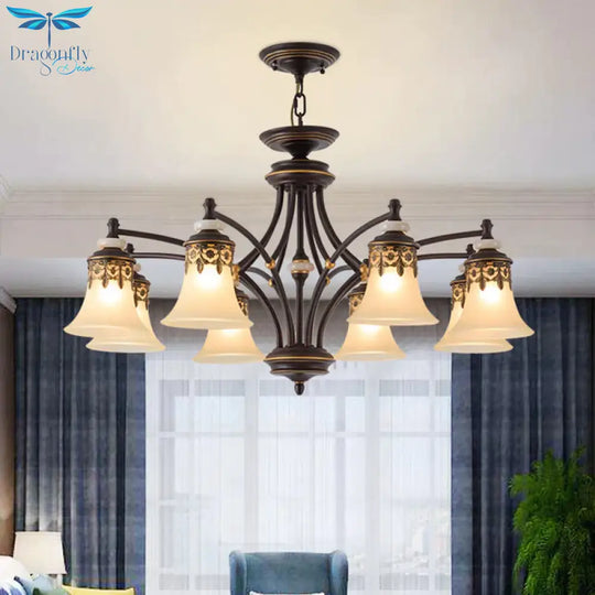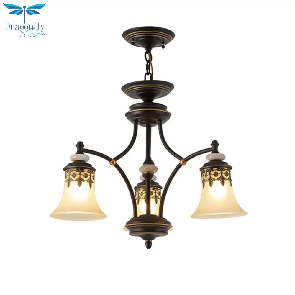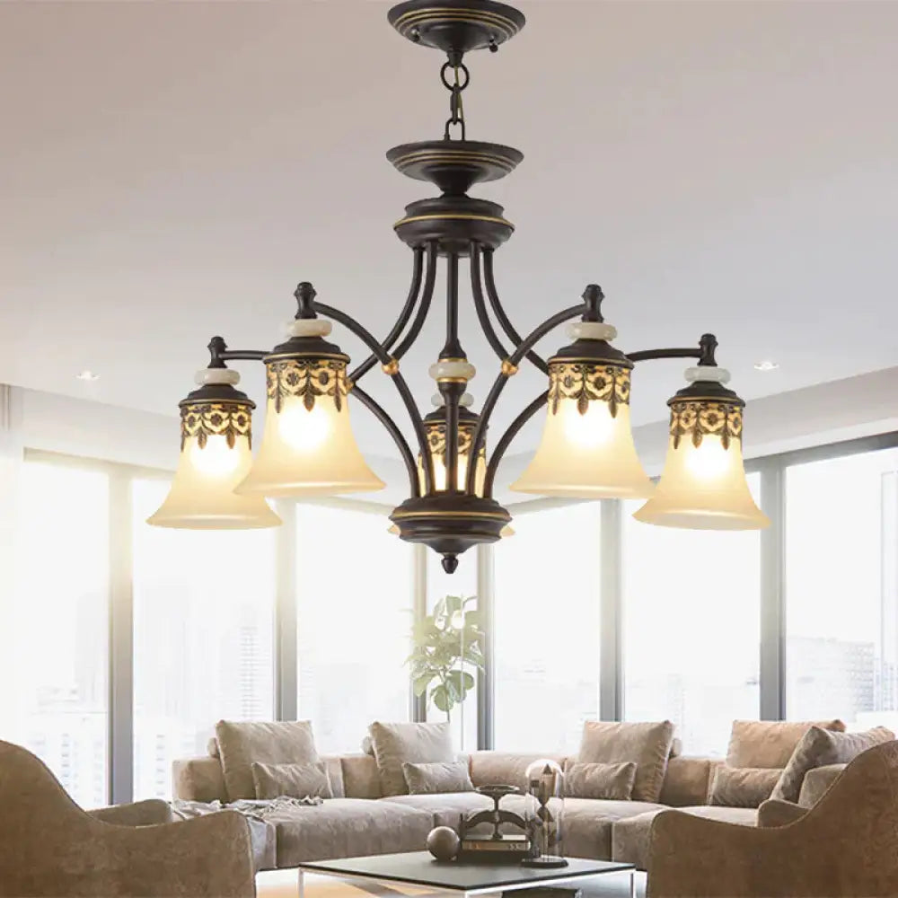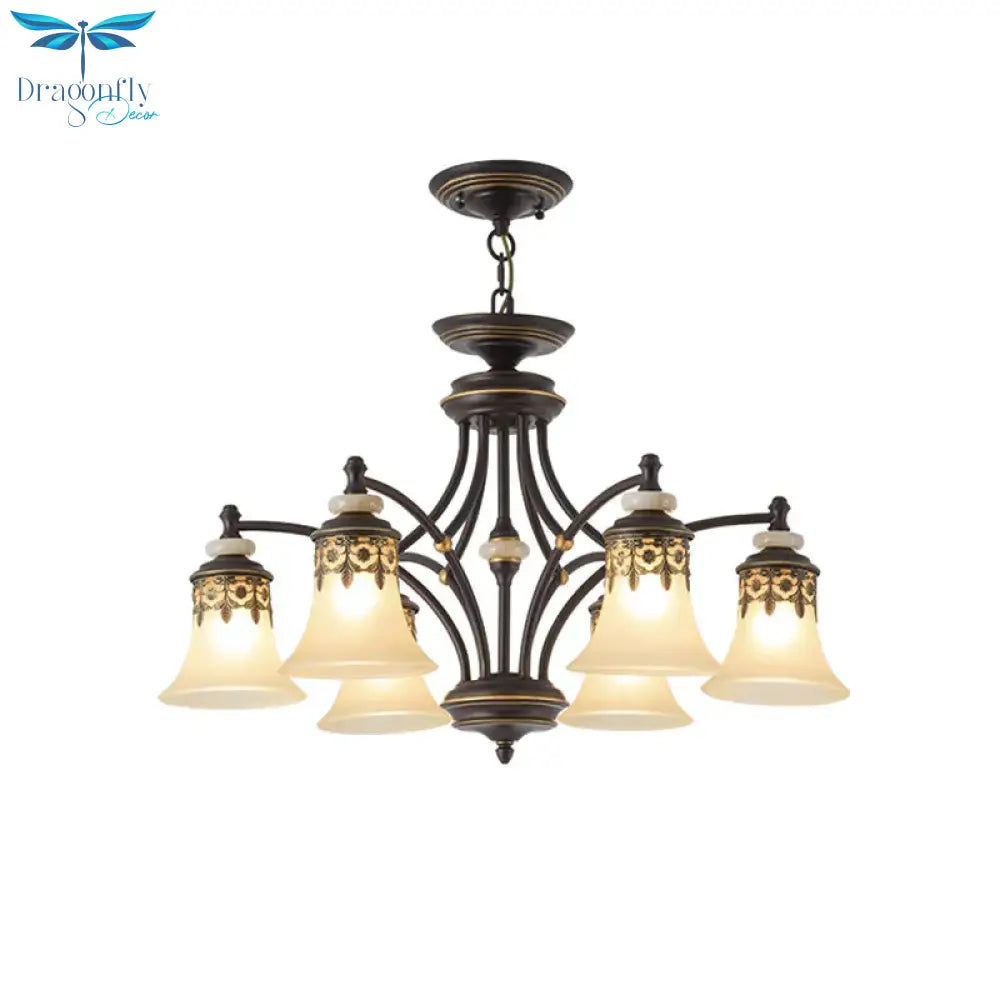 Deep Tan Bell Pendant Lighting Traditional Frosted Glass 3/5/6 Lights Living Room Chandelier